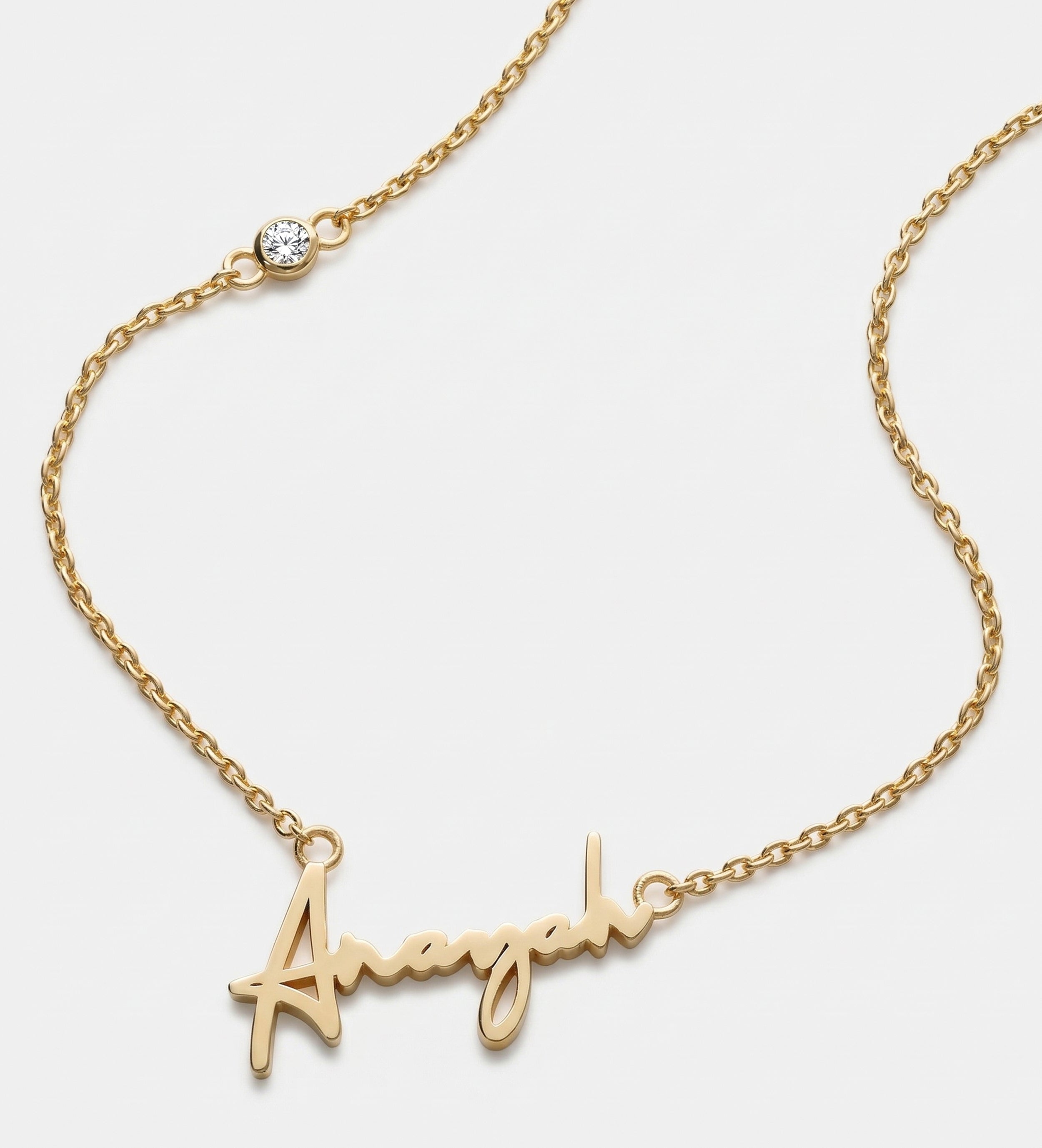 Shop stunning Arabic name necklaces in Dubai. Design your custom calligraphy piece in high-quality gold-plated or sterling silver finishes.