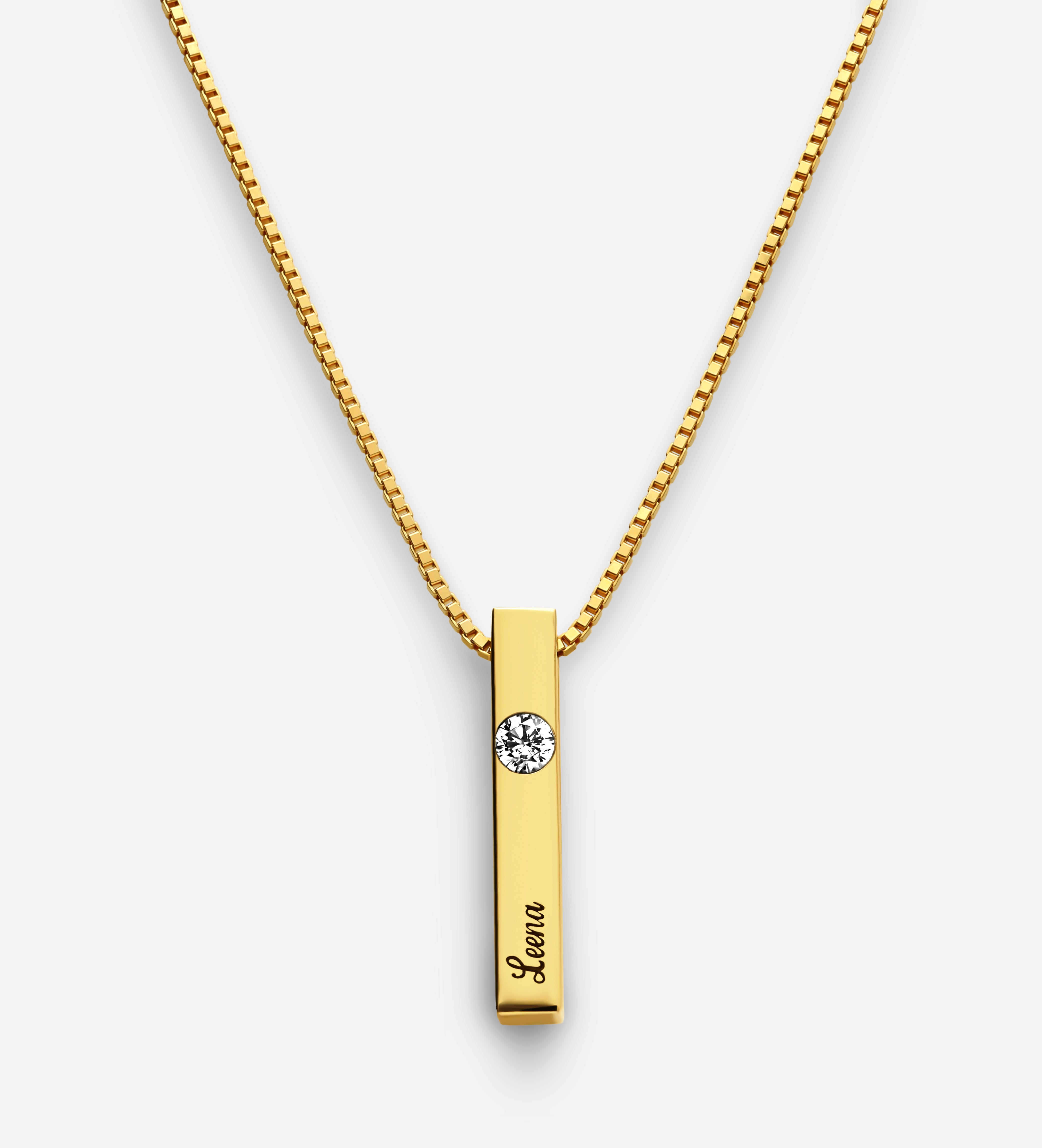 INSCRIPTION GUIDE - Vertical Bar Necklace With 0.25CT Diamond - 18K Gold Vermeil