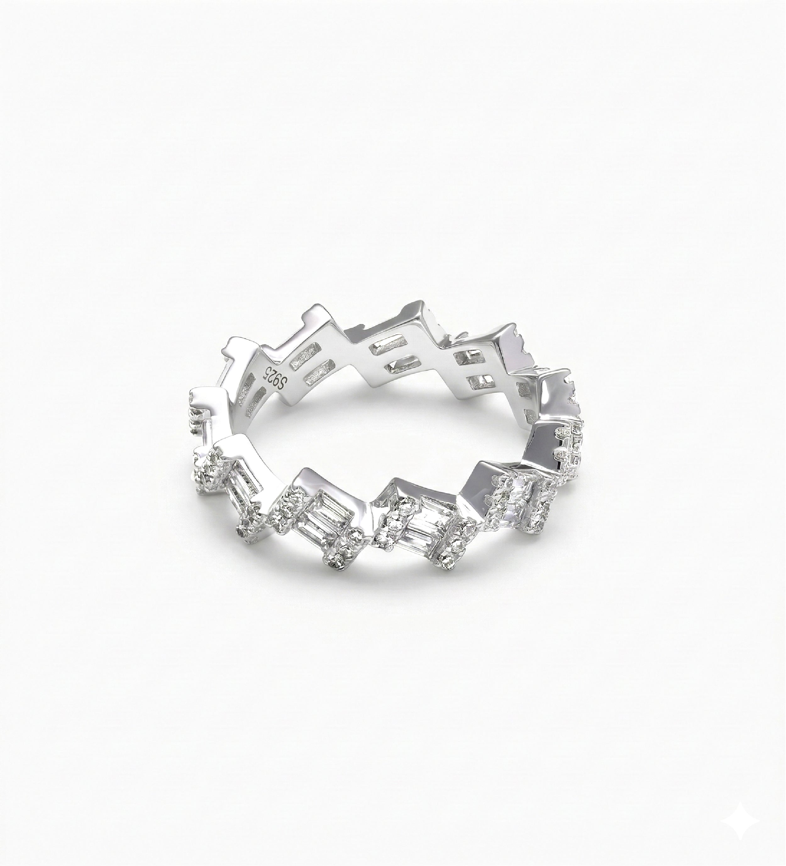 Ziggy Eternity Ring in 925 Silver with High Quality Simulated Diamonds