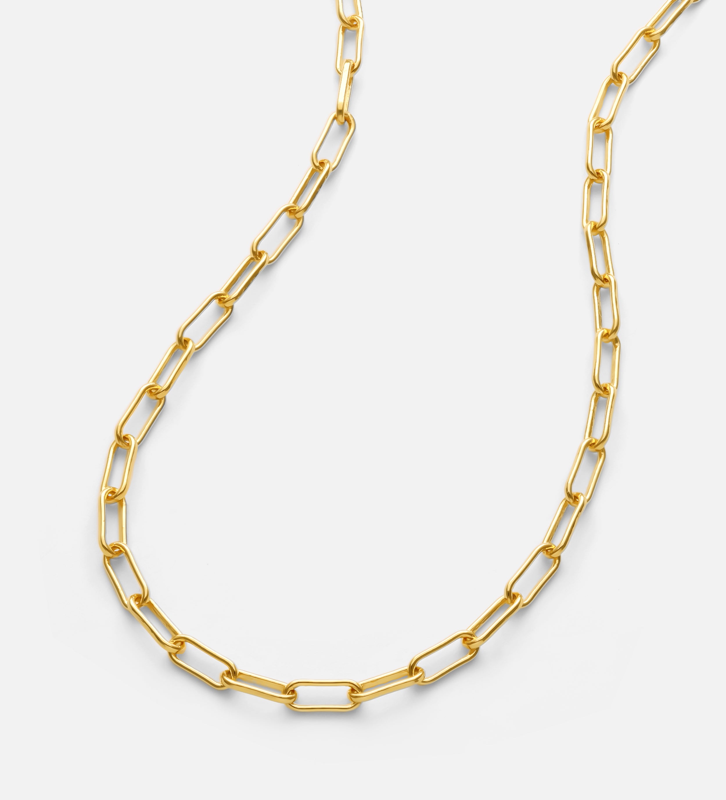 Elevate your style with the sleek and modern Paperclip Chain Bracelet in Gold. Its elongated links create a sophisticated silhouette, perfect for layering or wearing solo. The minimalist design makes it versatile, adding a chic touch to any look.