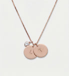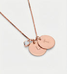 Initial Disc Necklace With .2CT Heart Shaped Diamond - 18K Rose Gold Vermeil