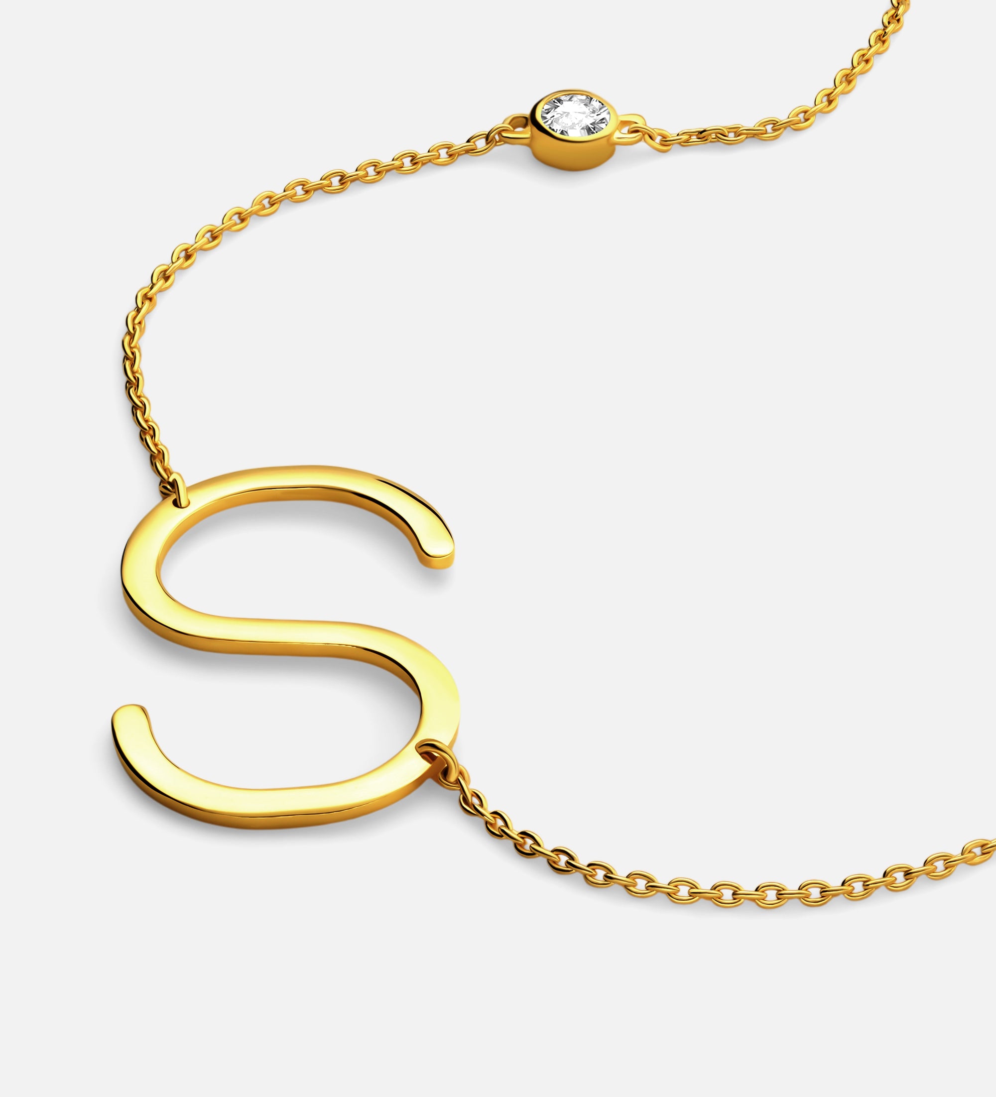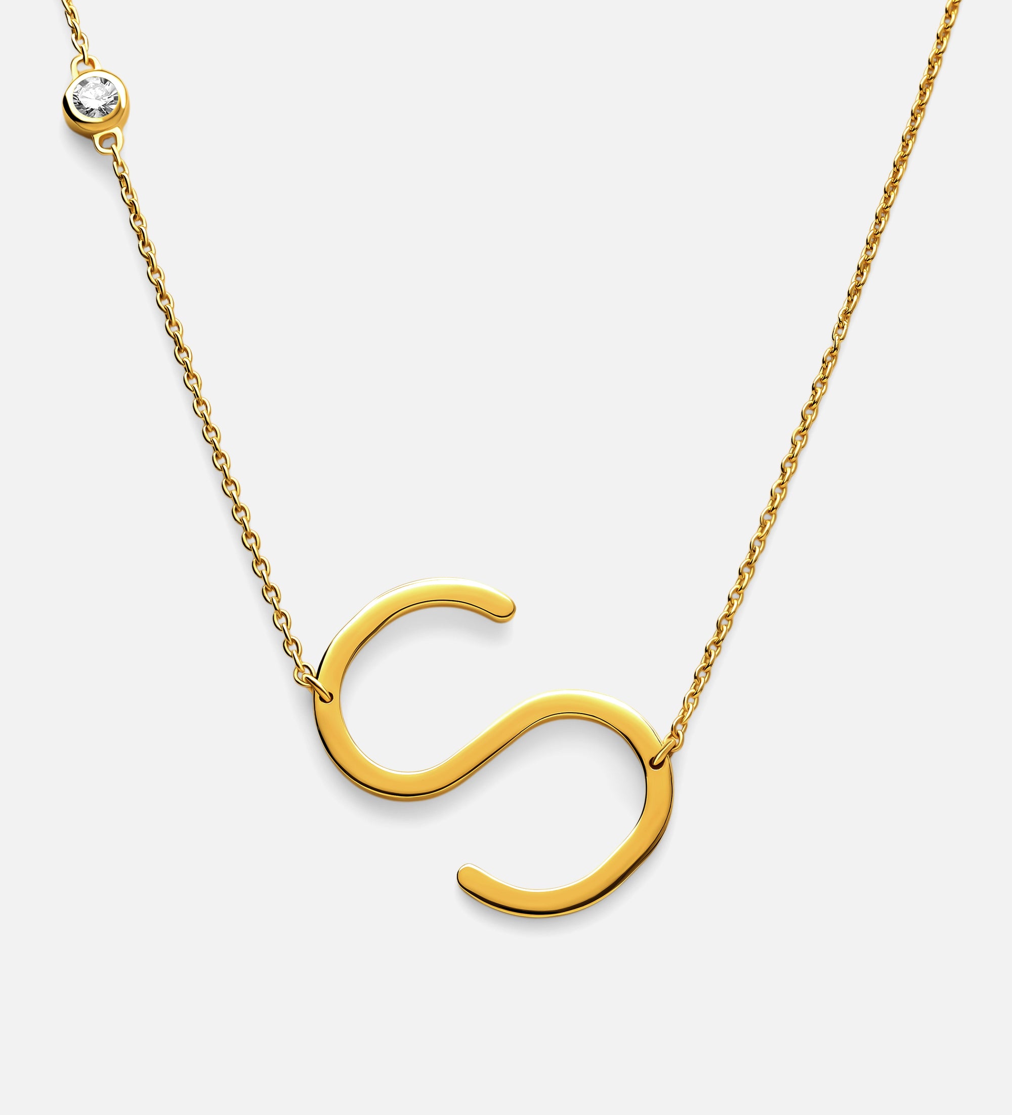Large Initial Necklace With Diamond - 18K Gold Vermeil