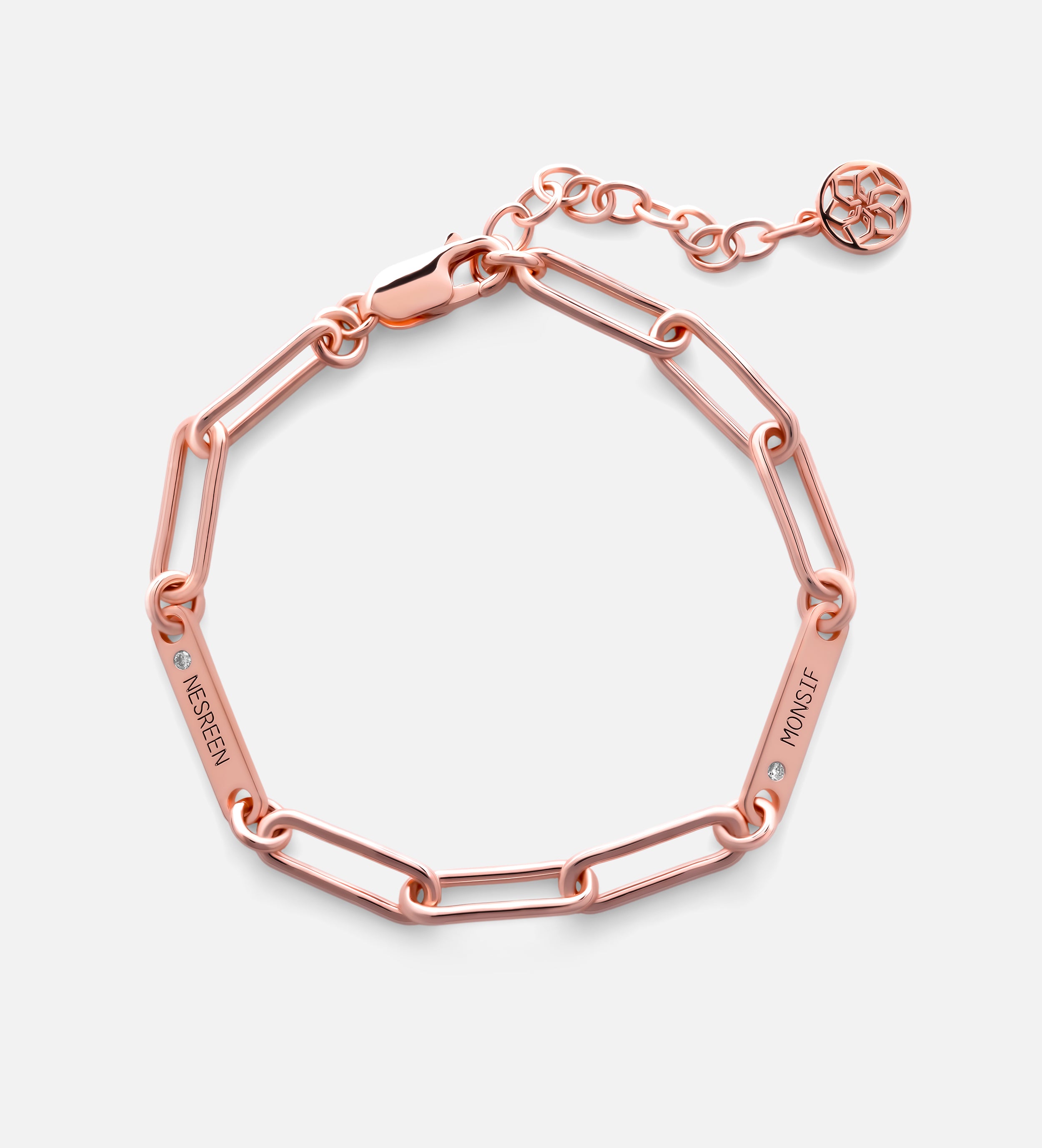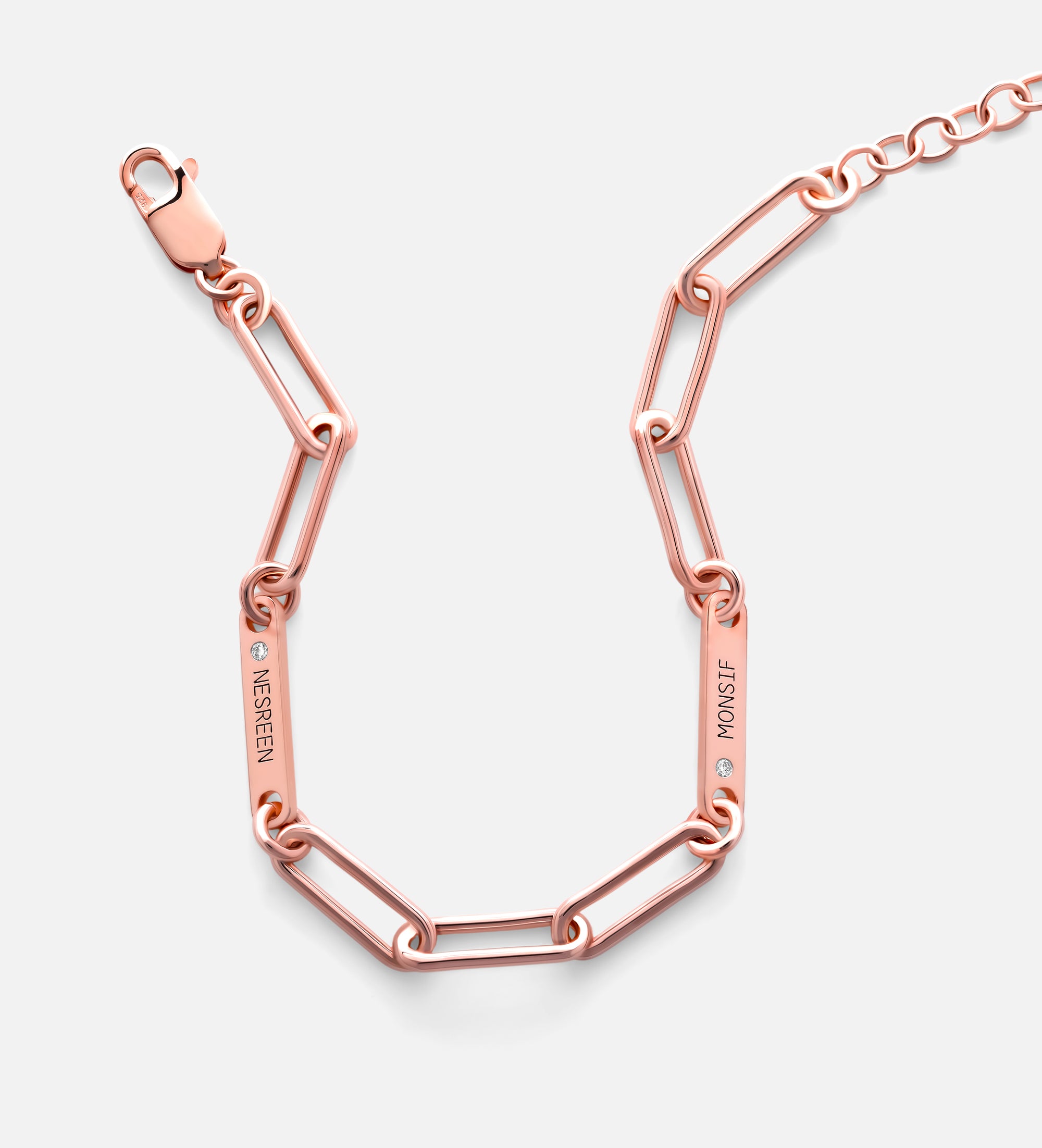 Paperclip Chain Name Bracelet With Diamond - 18K Rose Gold Vermeil