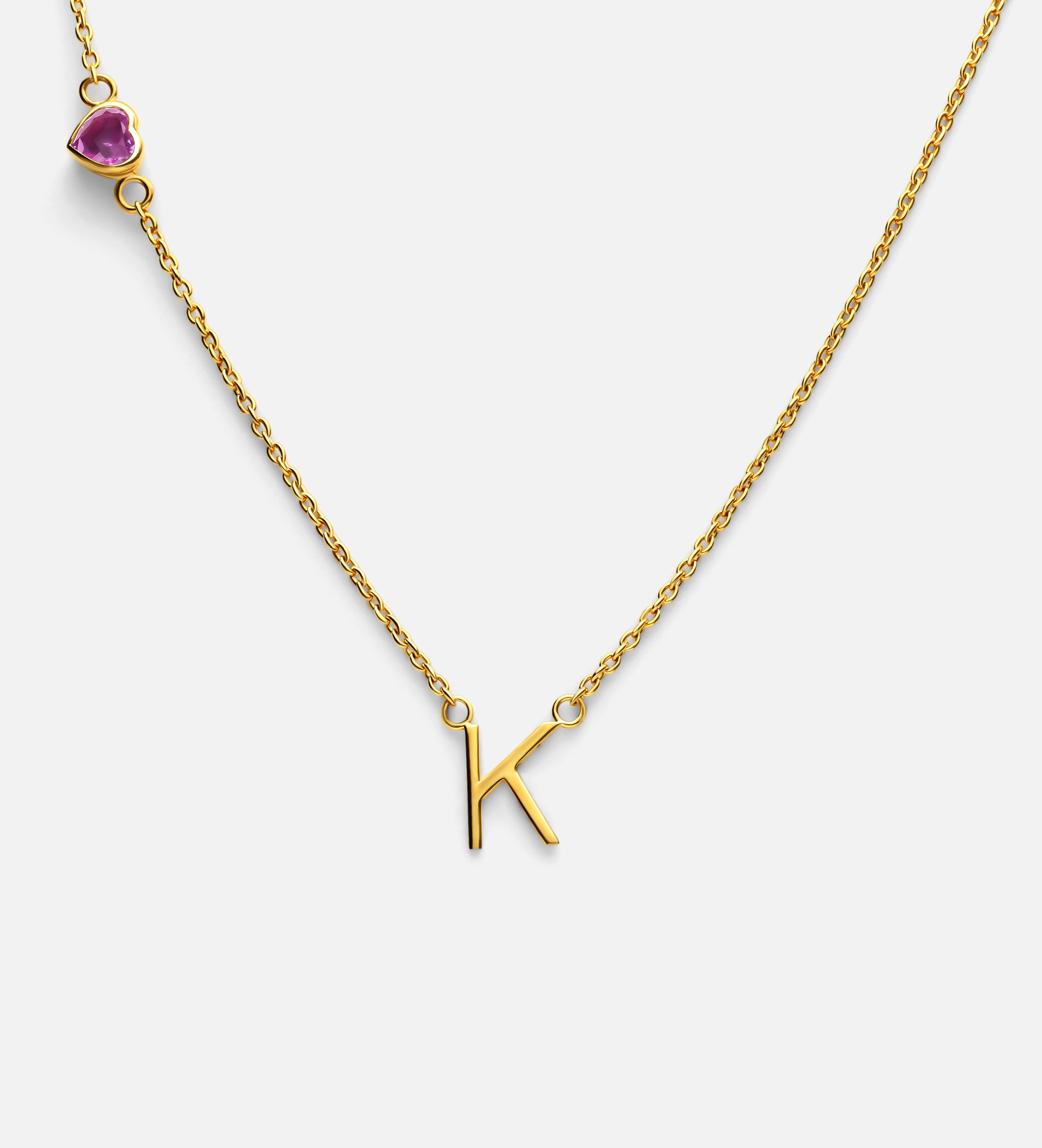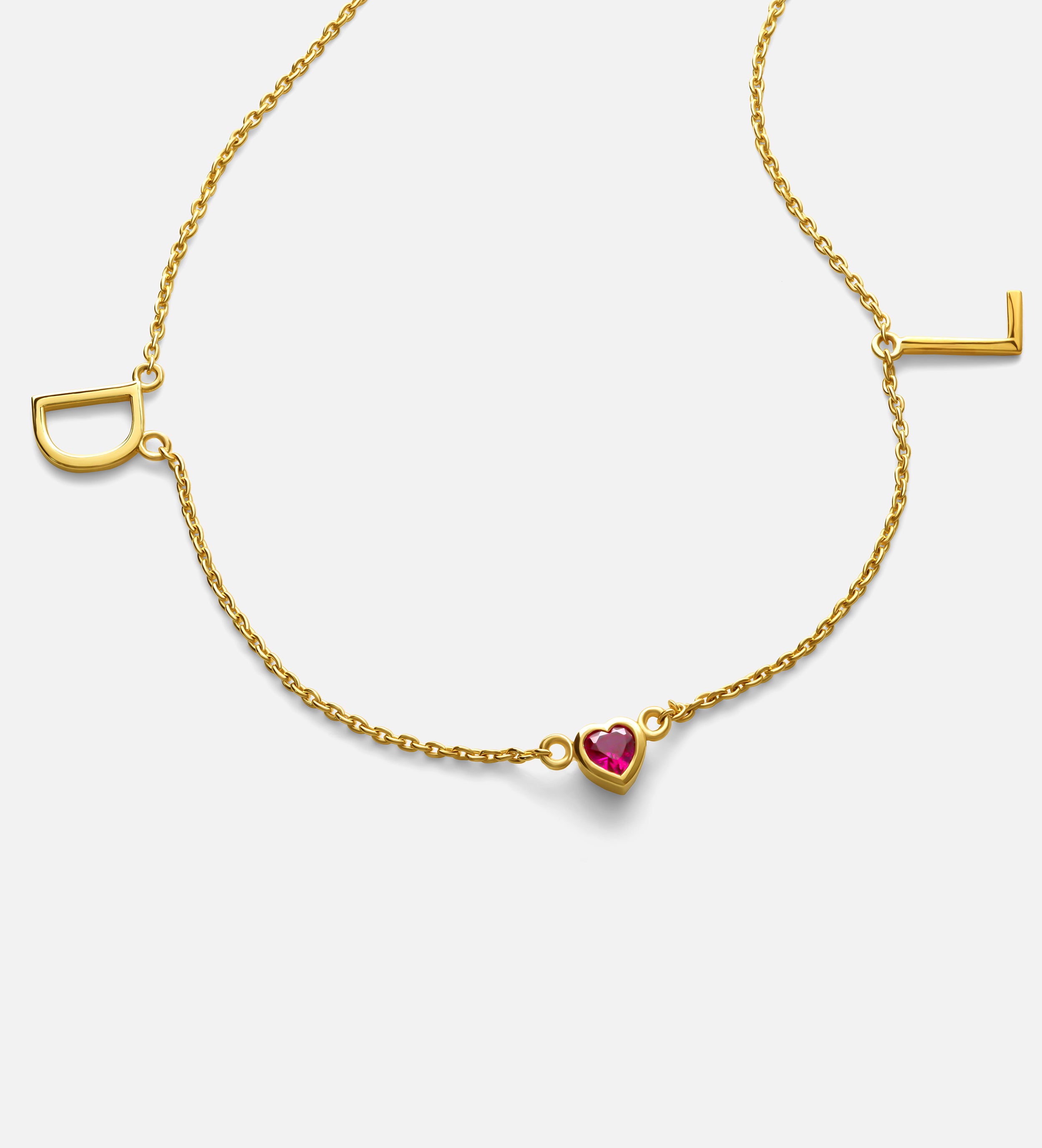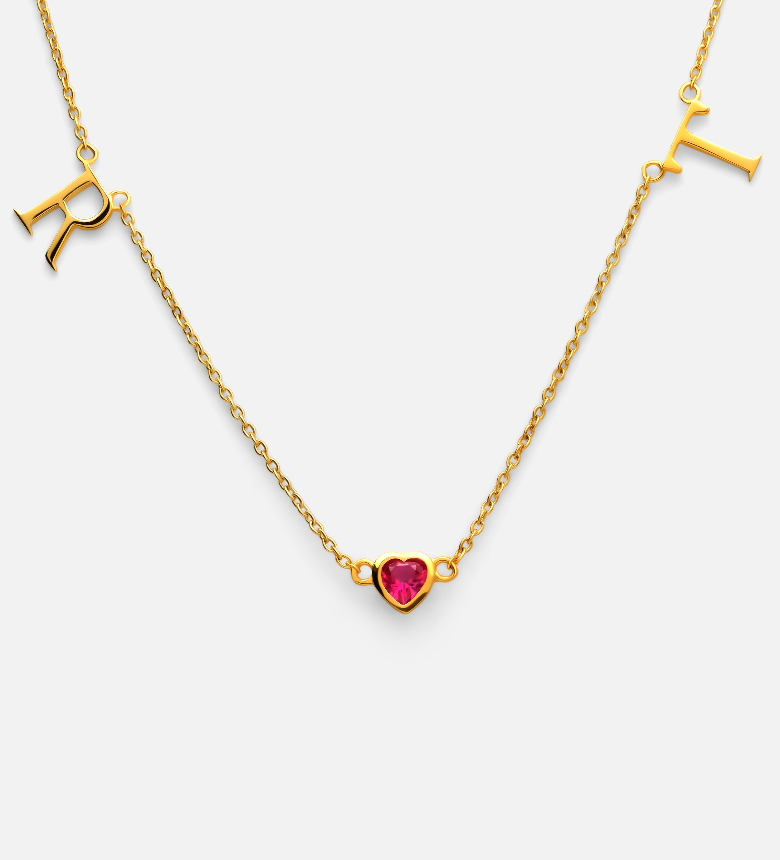 Eden Initial Necklace With 0.2ct Heart Shaped Gemstone - 18K Gold Vermeil
