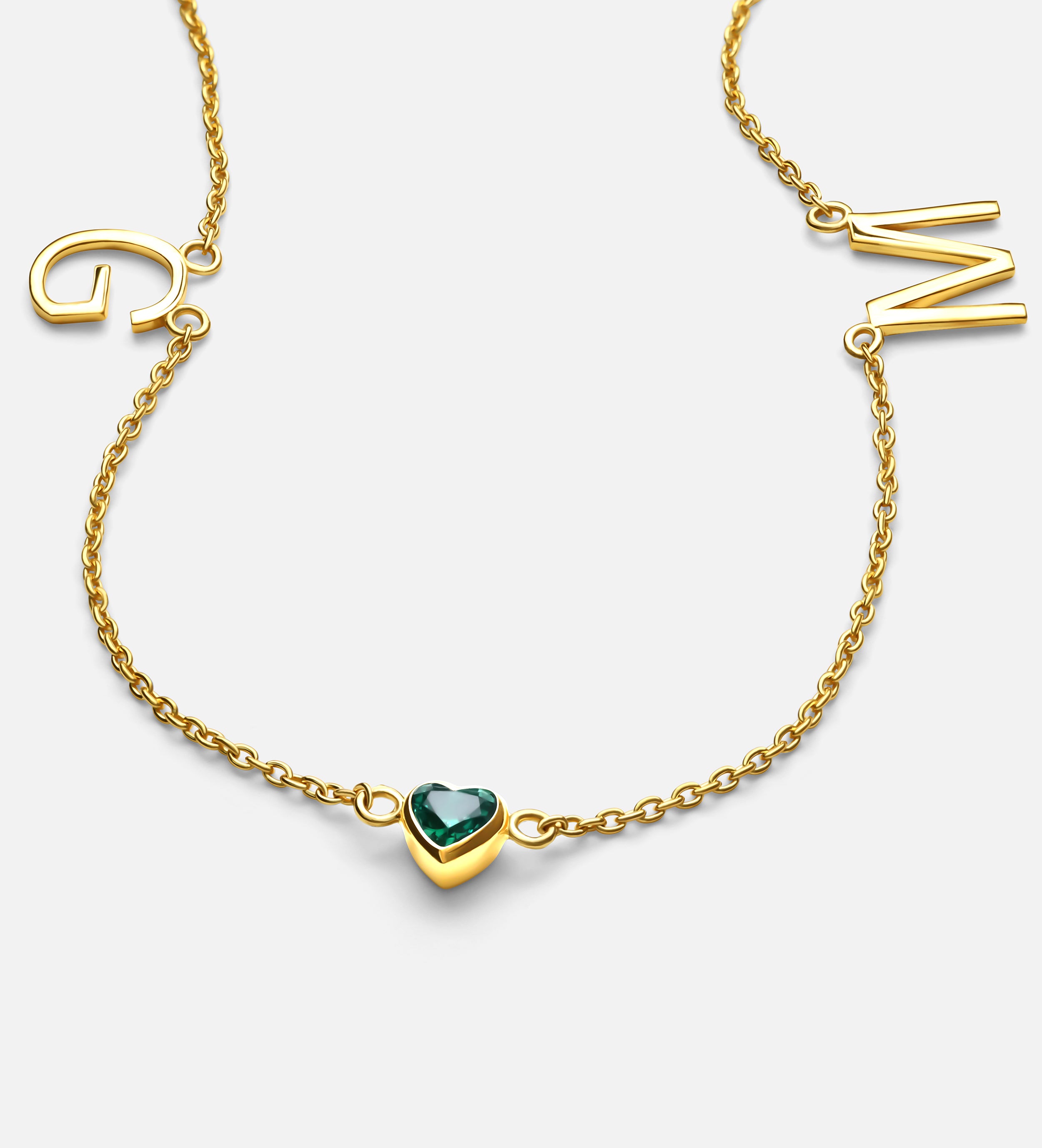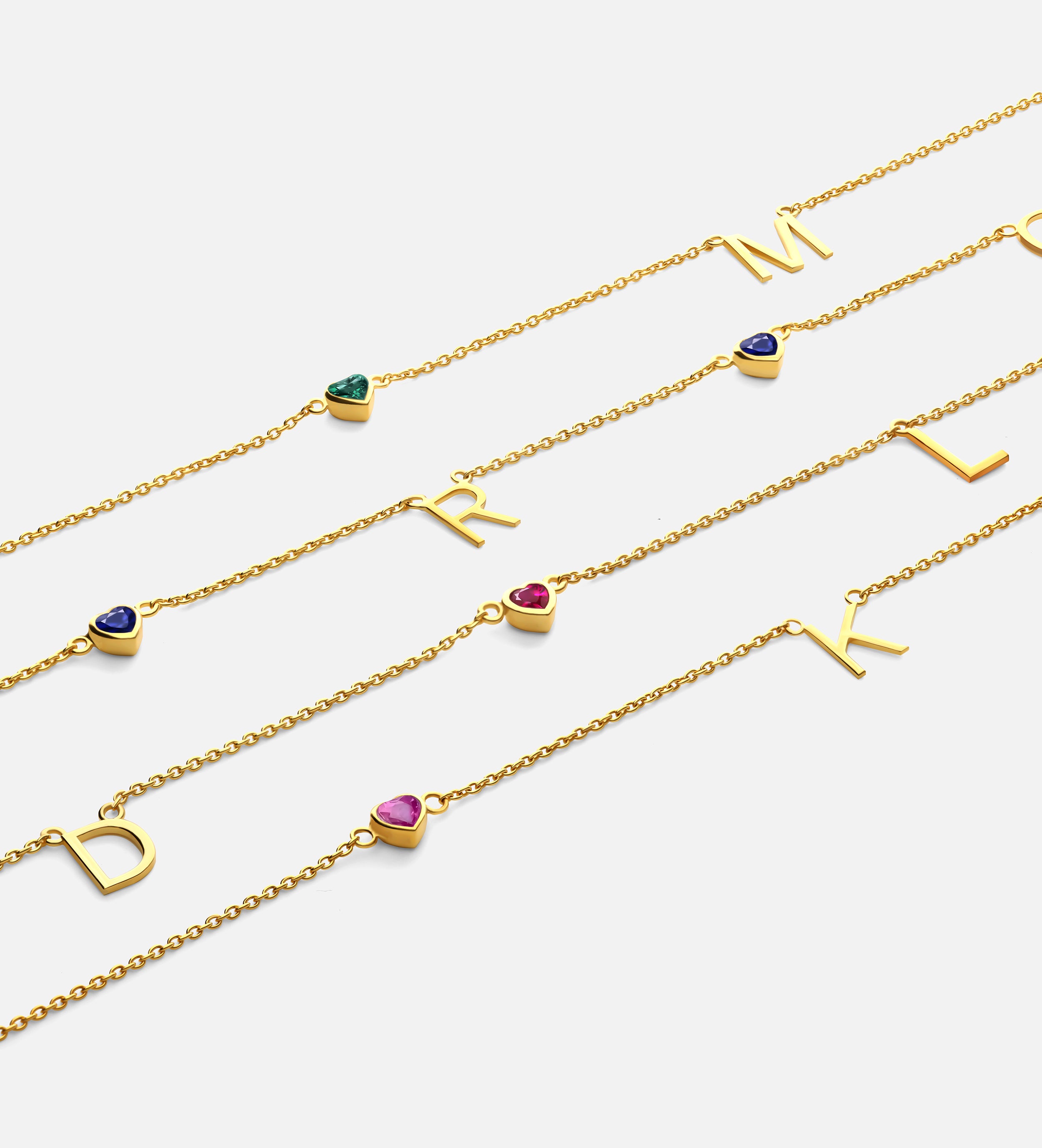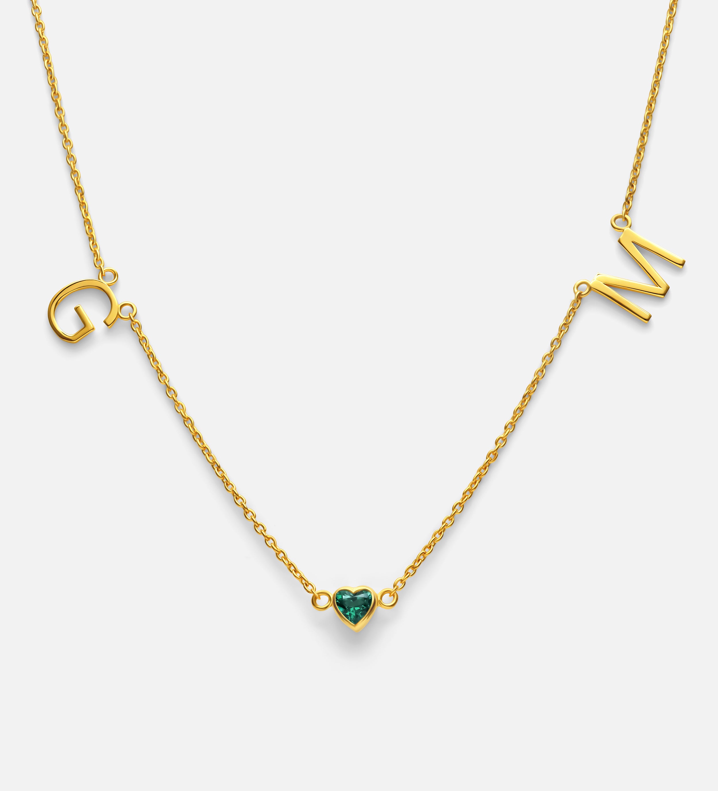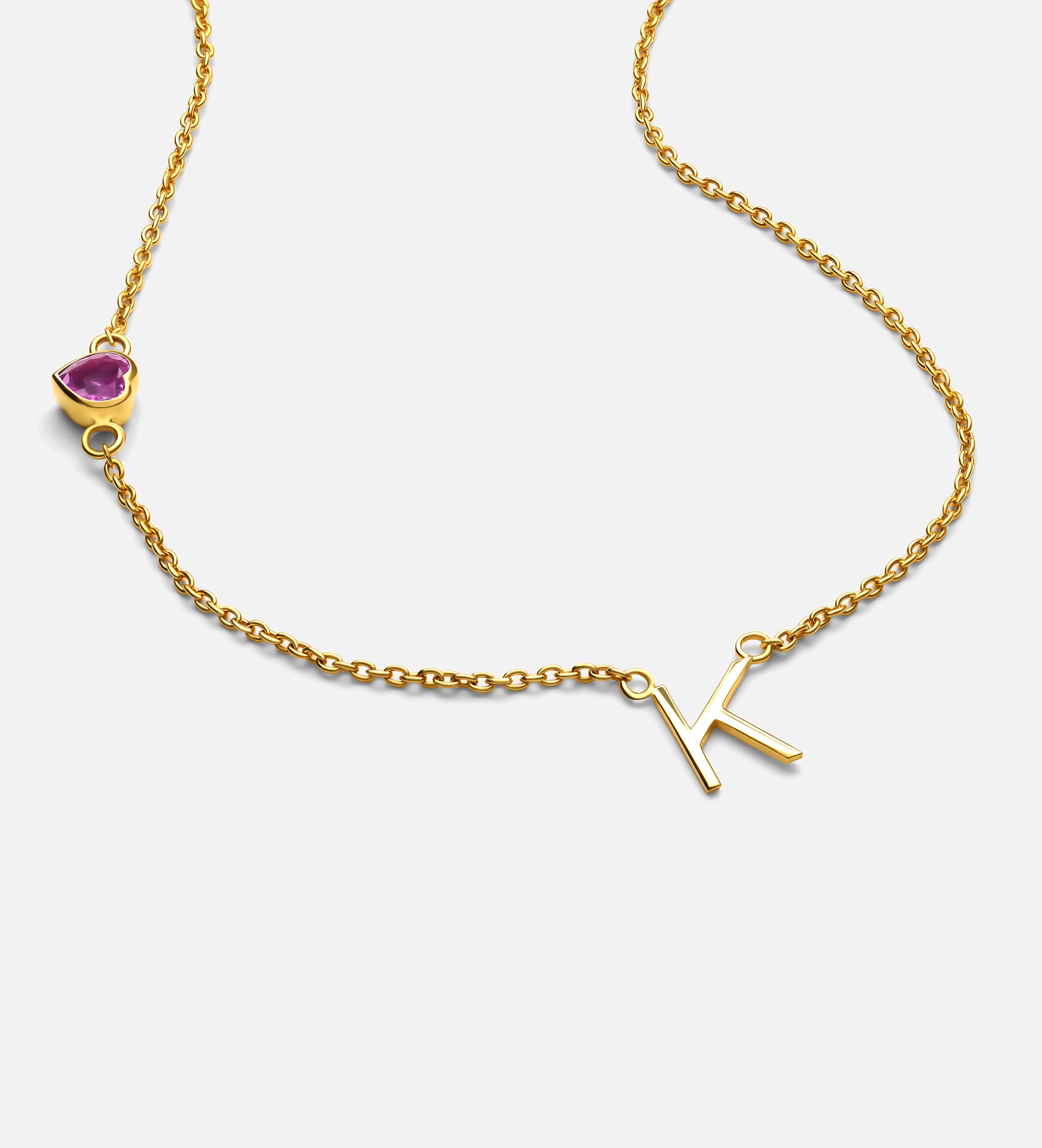 Eden Initial Necklace With 0.2ct Heart Shaped Gemstone - 18K Gold Vermeil