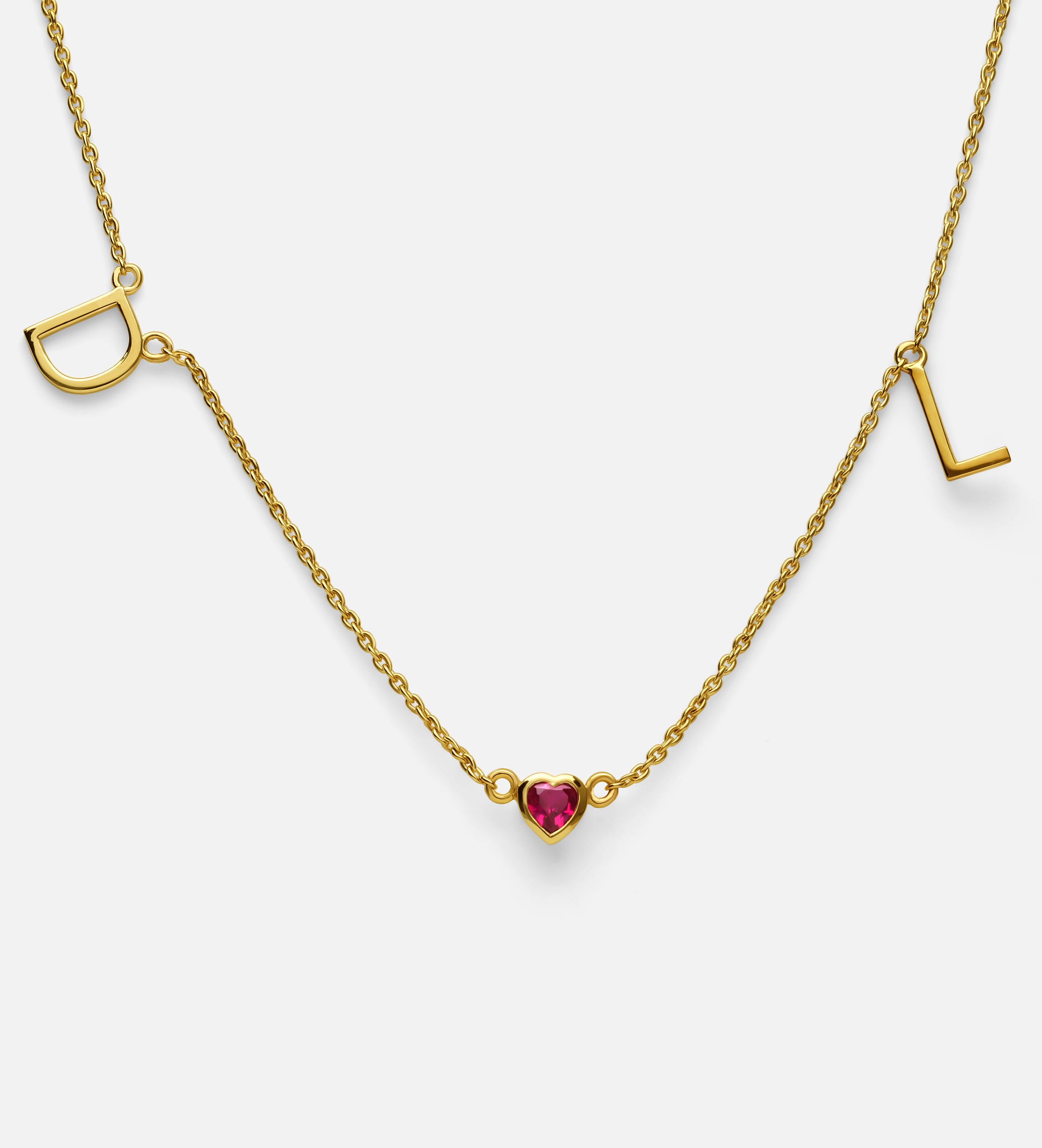INSCRIPTION GUIDE - Eden Initial Necklace With 0.2ct Heart Shaped Gemstone - 18K Gold Vermeil