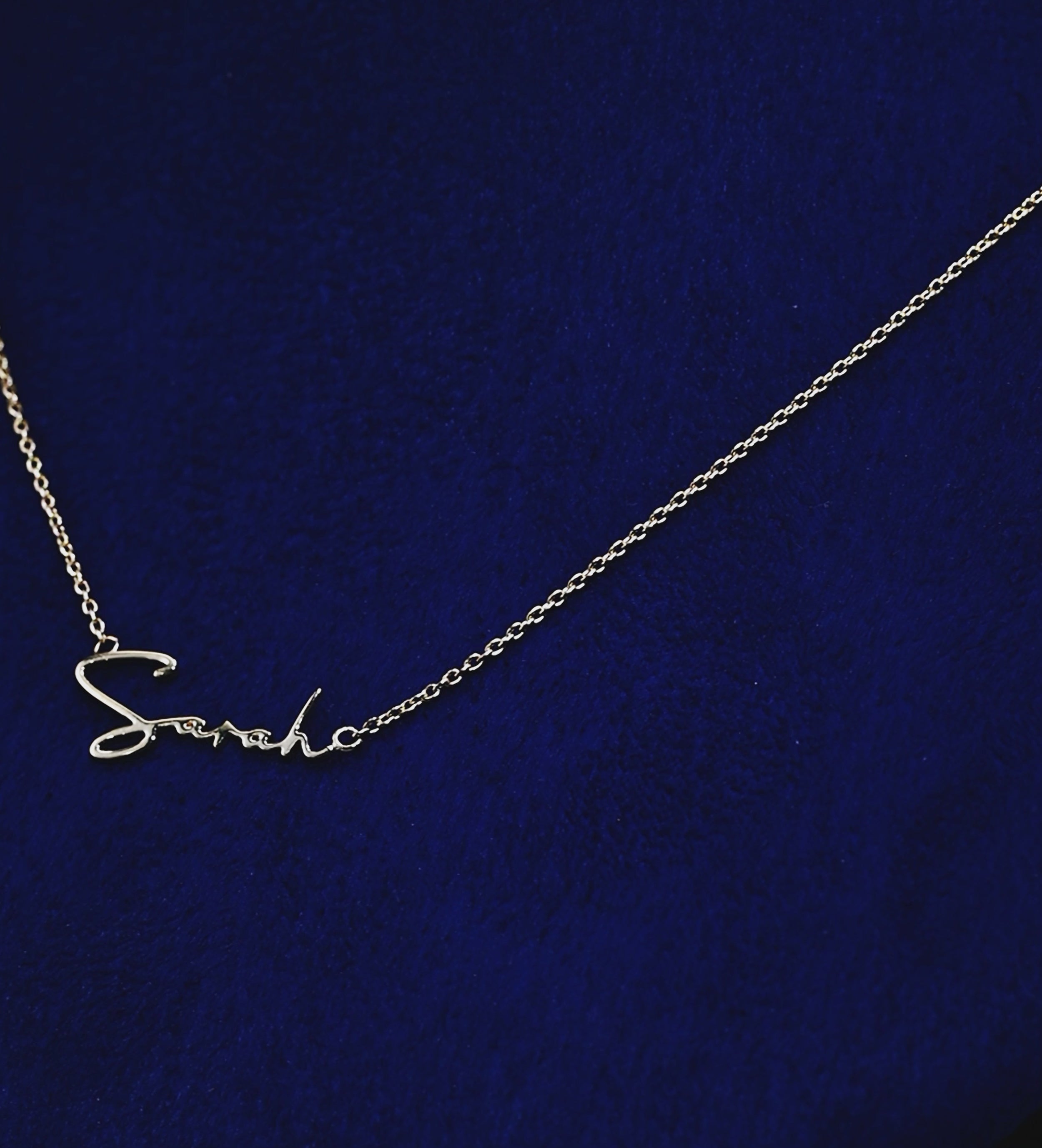INSCRIPTION GUIDE - Signature Script Name Necklace in 18K Gold Plating on 925 Silver