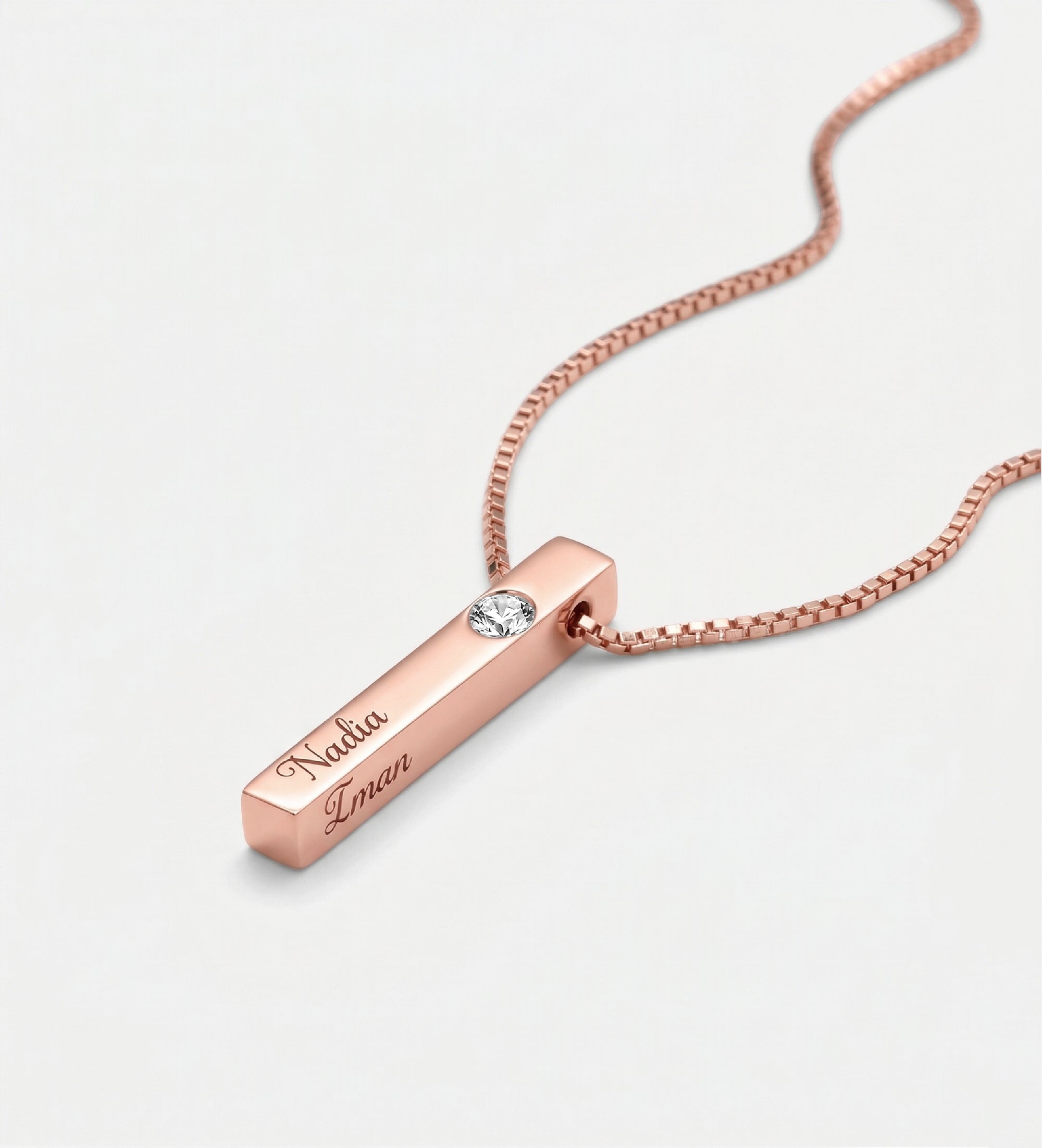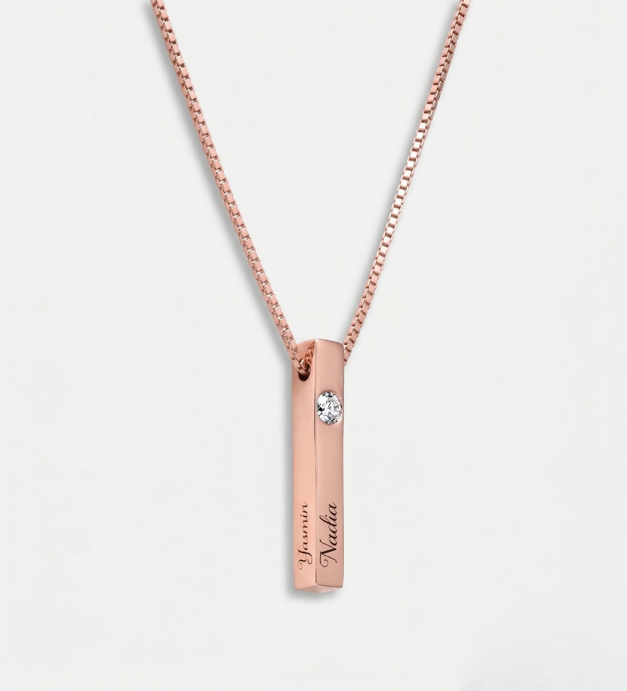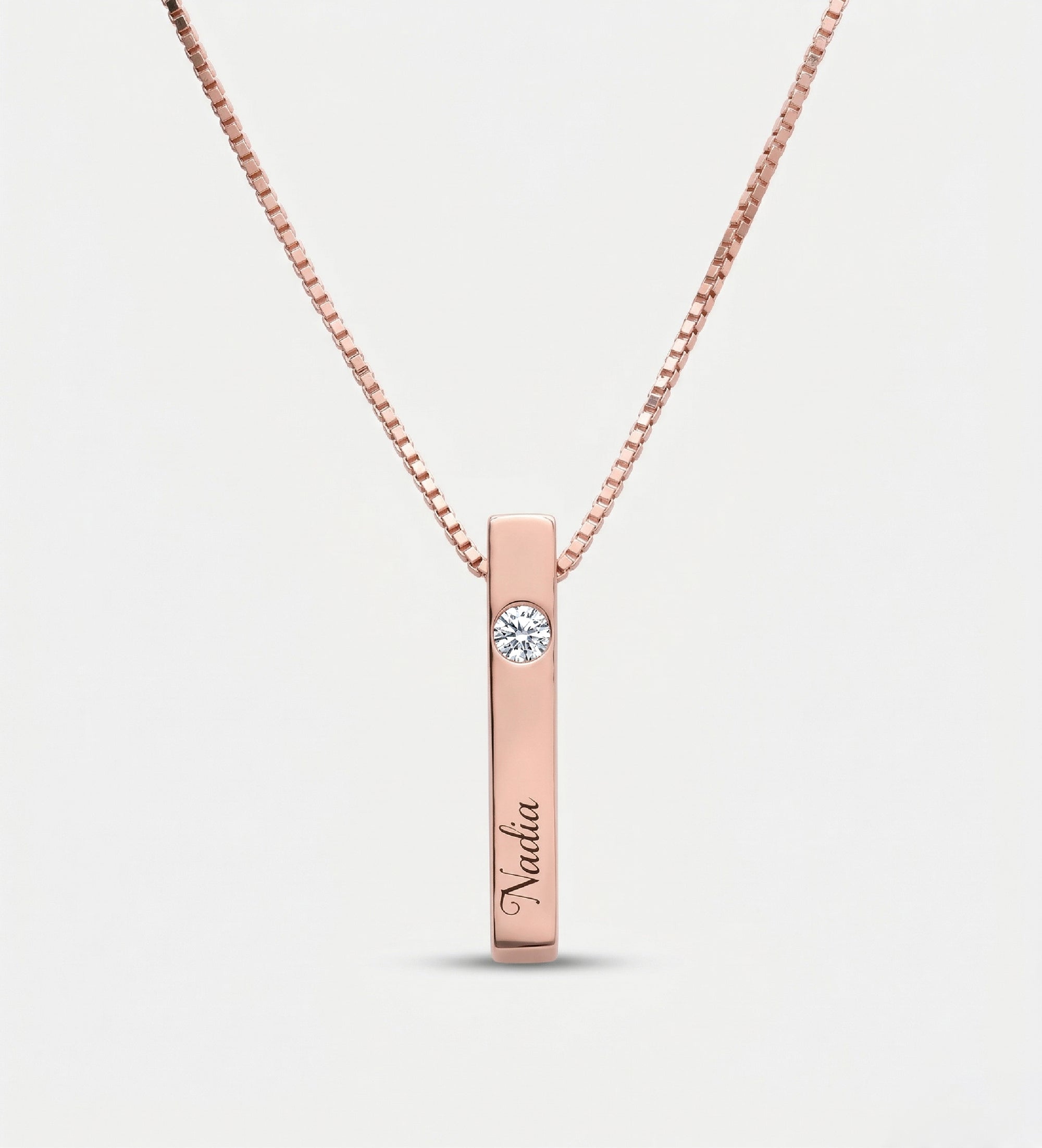 INSCRIPTION GUIDE - Vertical Bar Necklace With 0.25CT Lab Diamond in 18K Rose Gold Plating on 925 Silver