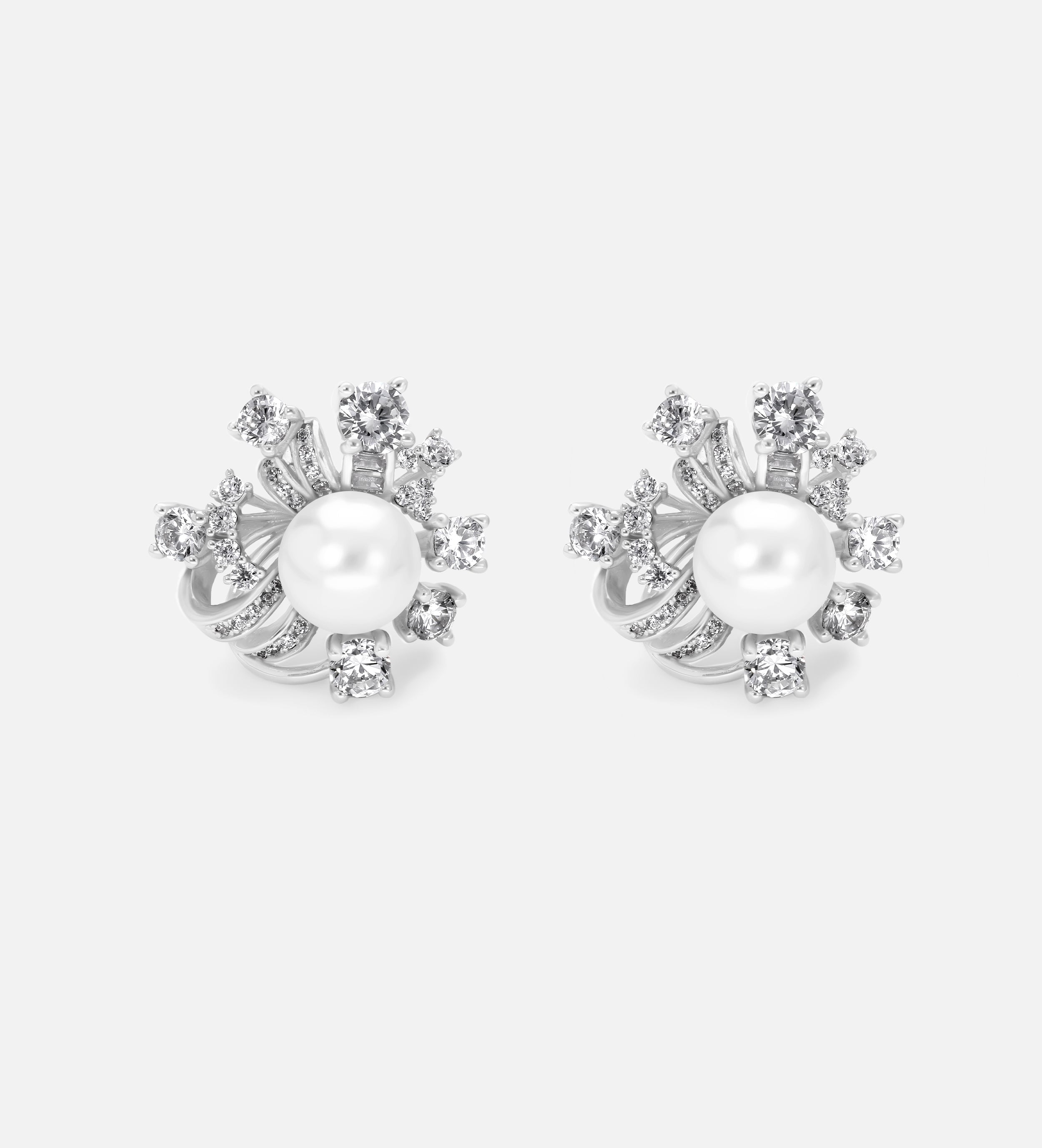 Starlit Cluster Pearl Studs With Fresh Water Pearls and High Quality Simulated Diamonds in 925 Silver