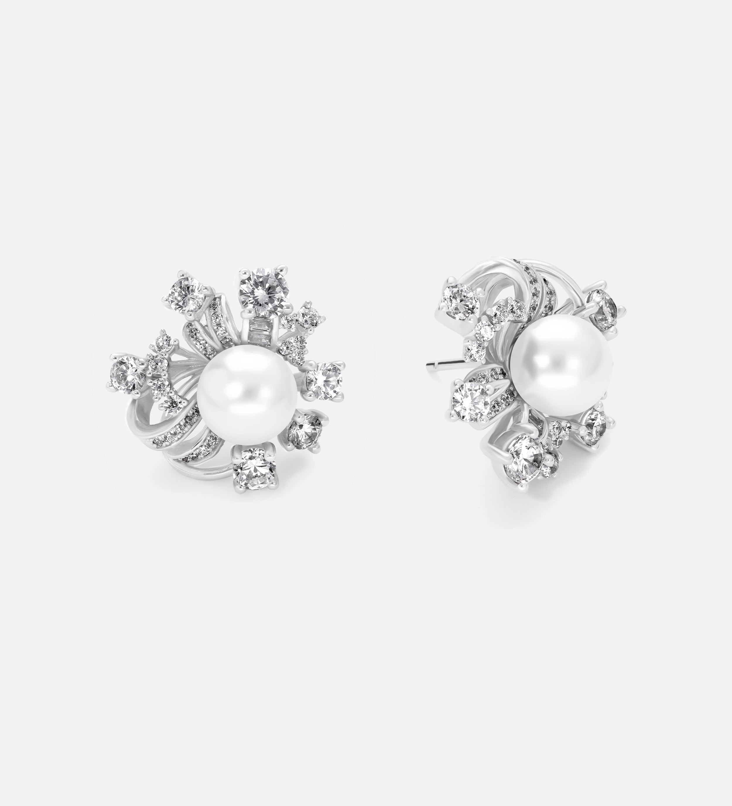 Pearl Drop Starburst Earrings in Rhodium Plating on 925 Silver