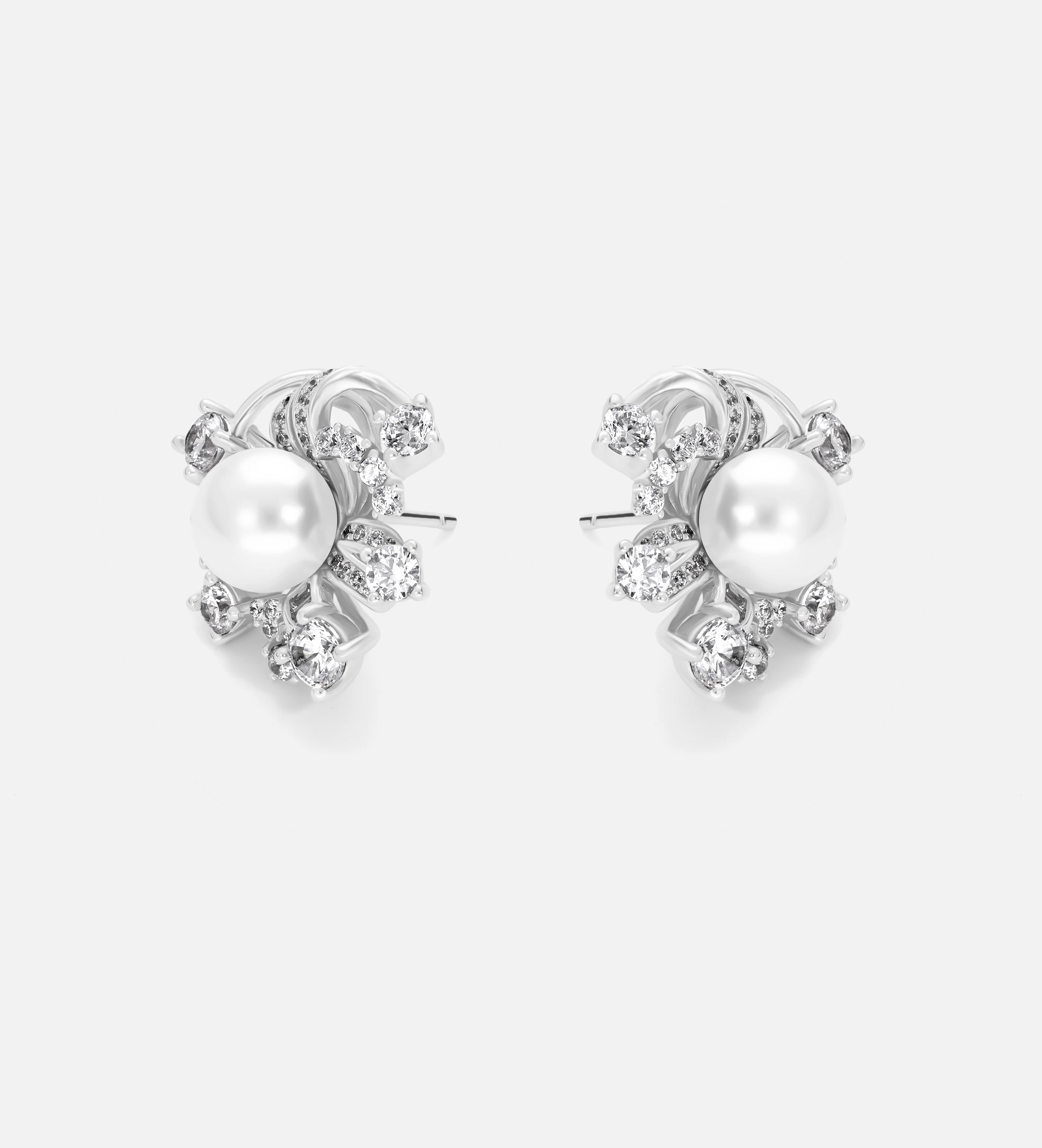 Starlit Cluster Pearl Studs With Fresh Water Pearls and High Quality Simulated Diamonds in 925 Silver