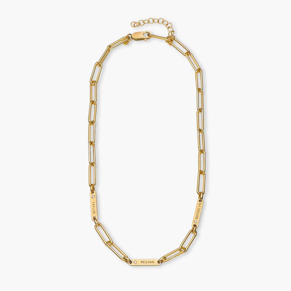 Paperclip Chain Name Necklace With Diamond - 18K Gold Vermeil