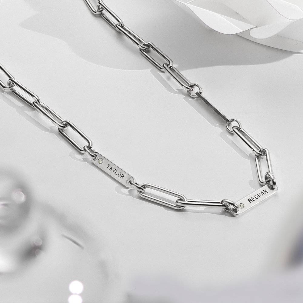 Paperclip Chain Name Necklace With Diamond - Sterling Silver
