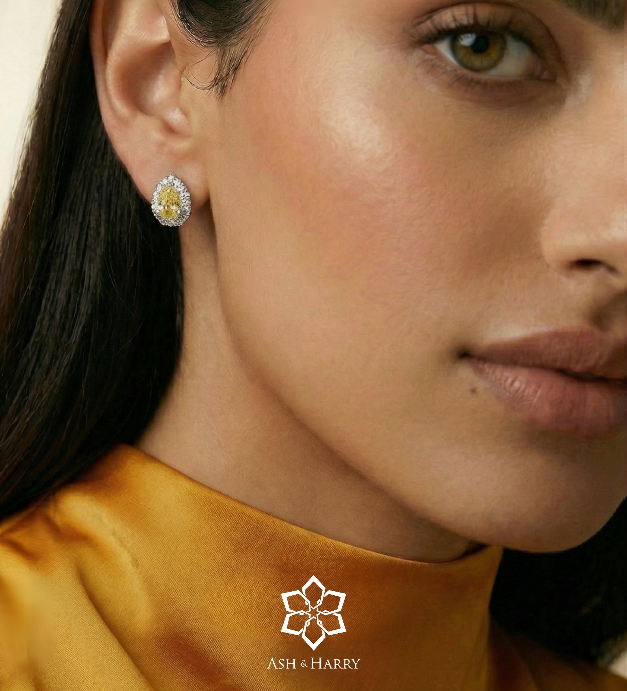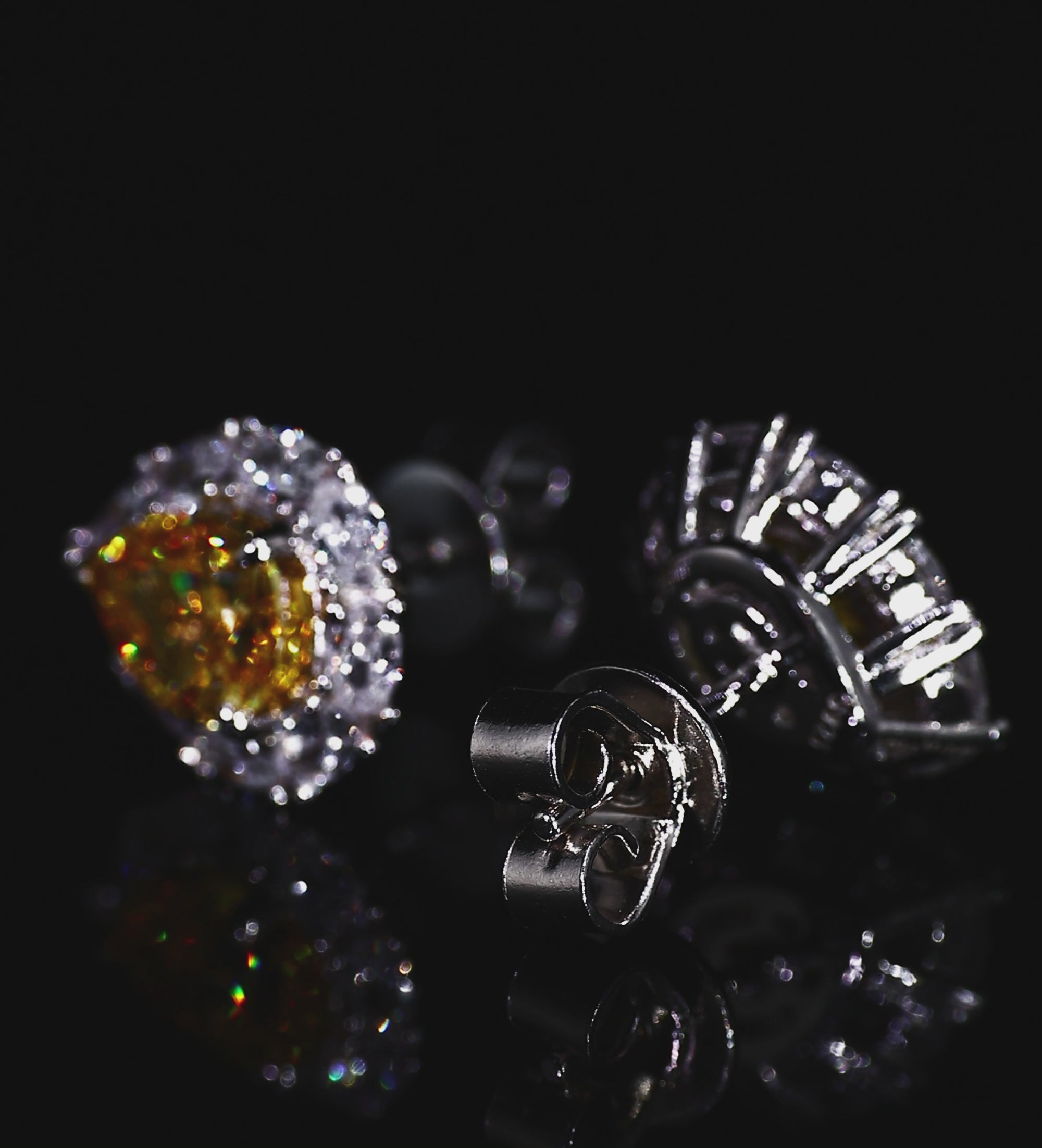 INSCRIPTION GUIDE - Canary Glow Studs in 925 Silver with High Quality Simulated White and Crafted Canary Diamonds
