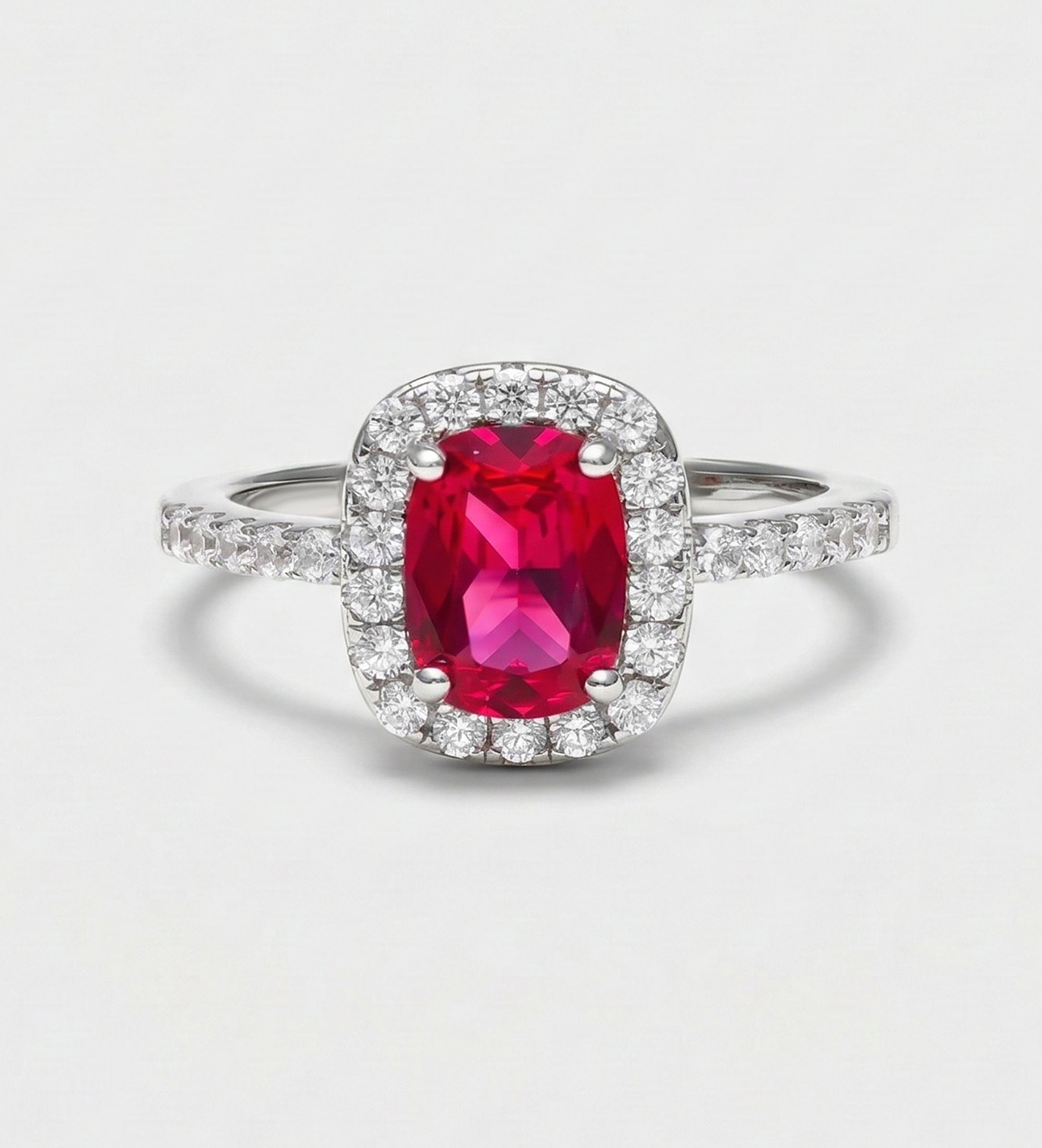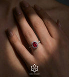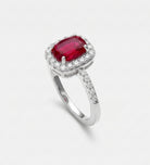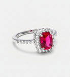 Scarlet Ruby Cushion Ring in 925 Silver High Quality Simulated Diamonds and Crafted Ruby Stone