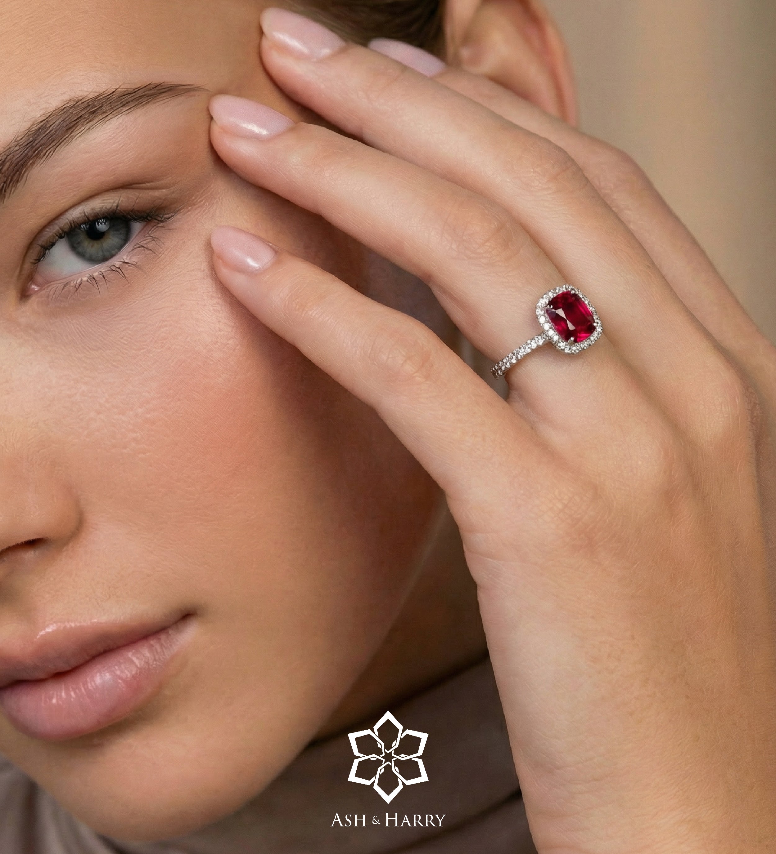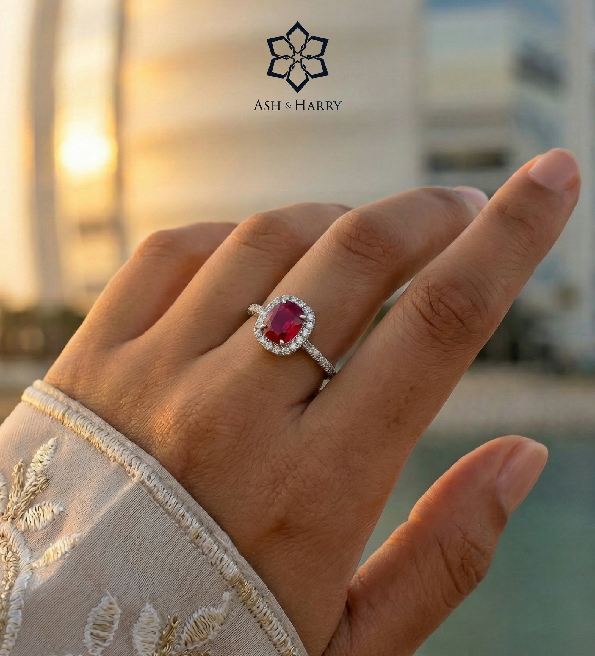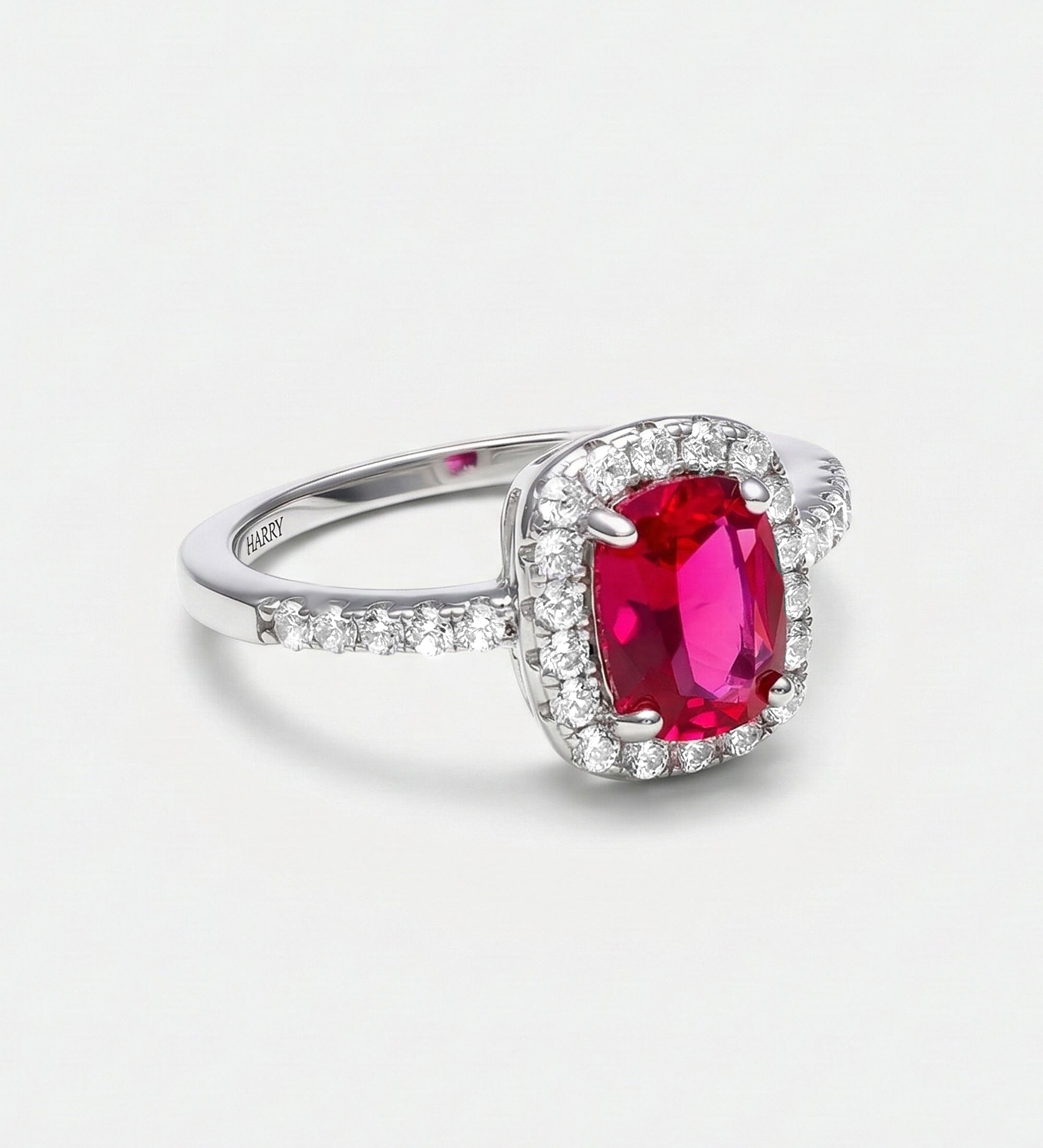 INSCRIPTION GUIDE - Scarlet Ruby Cushion Ring in 925 Silver High Quality Simulated Diamonds and Crafted Ruby Stone