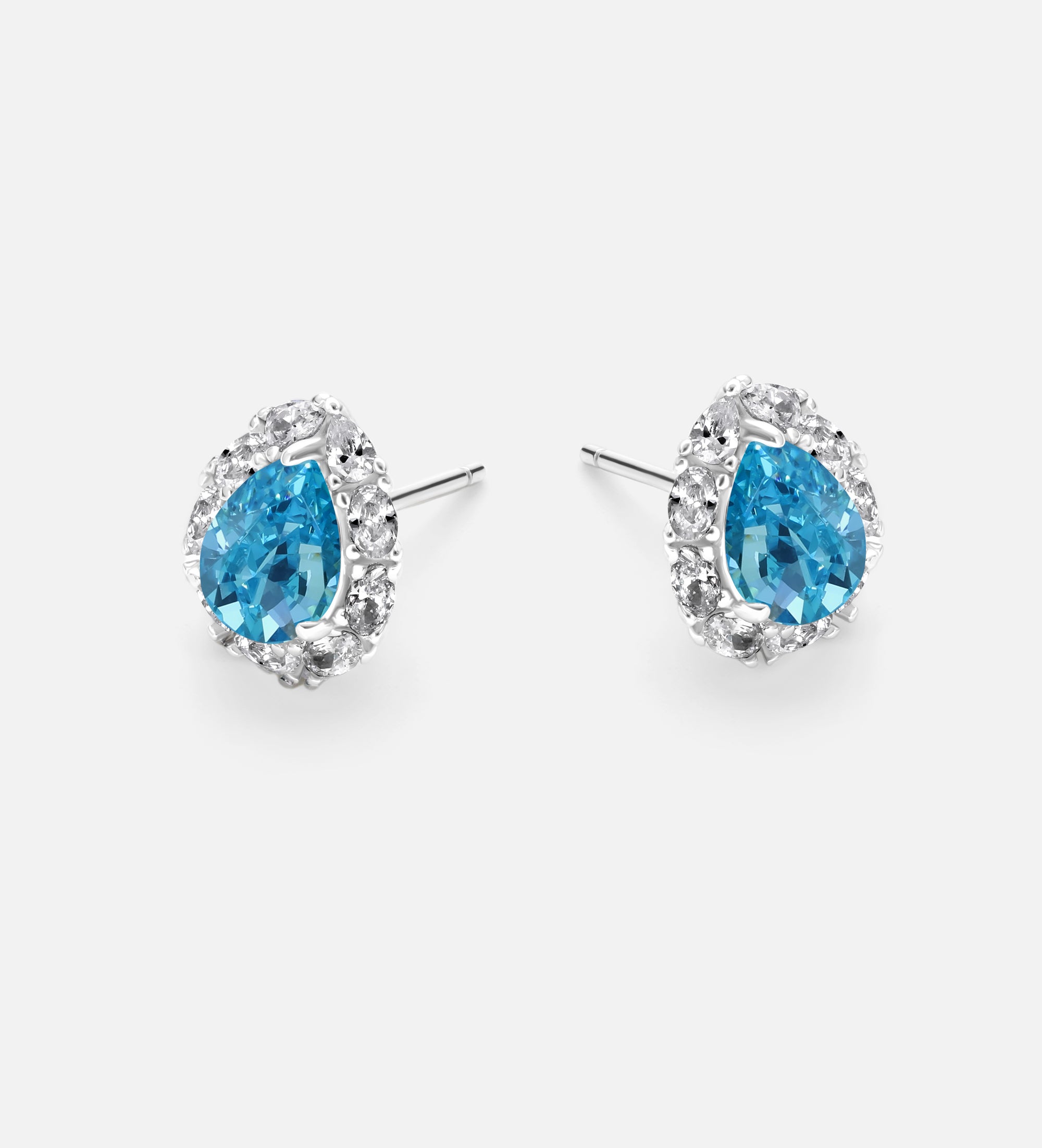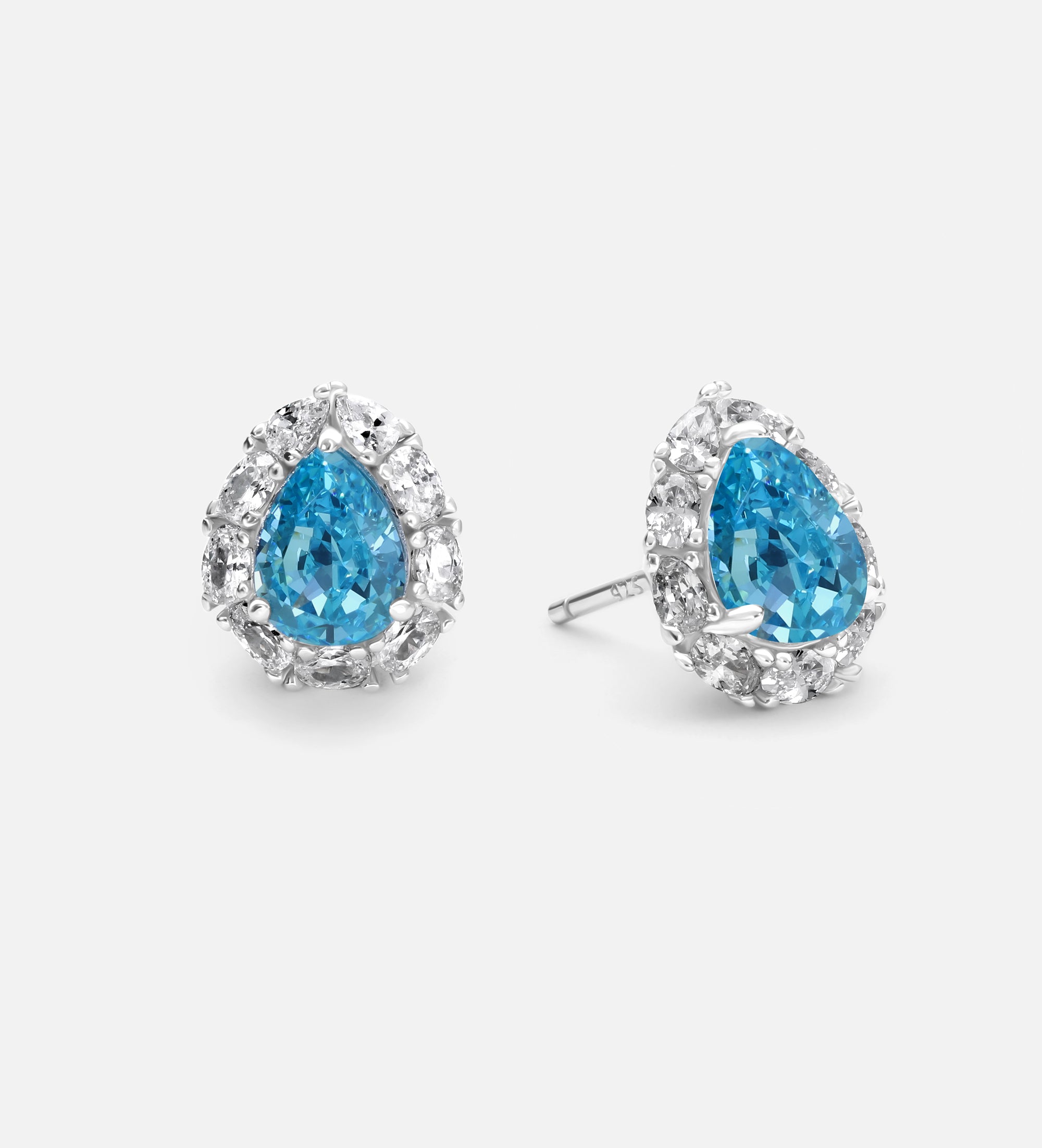Azure Pear Studs in 925 Silver High Quality Simulated Diamonds and Crafted Pear-Cut Aquamarine Stones