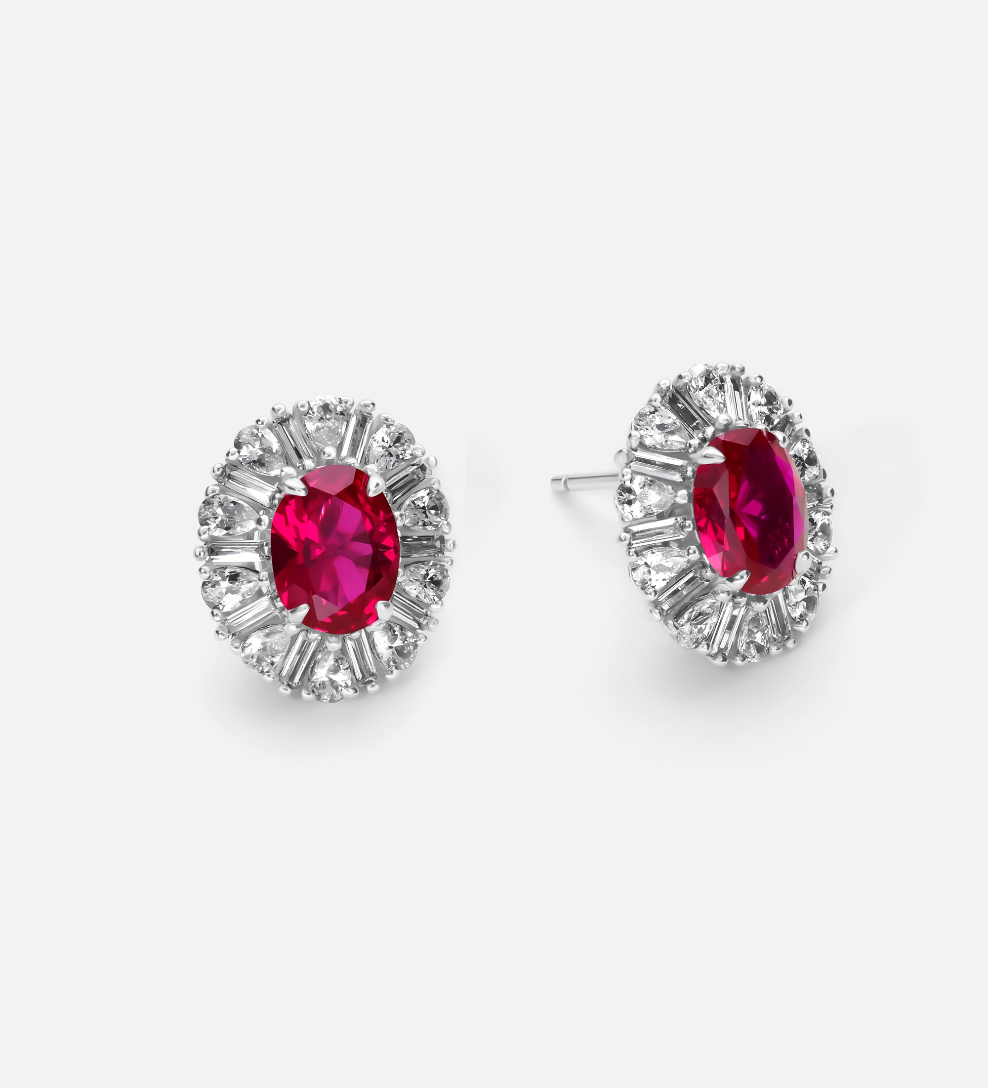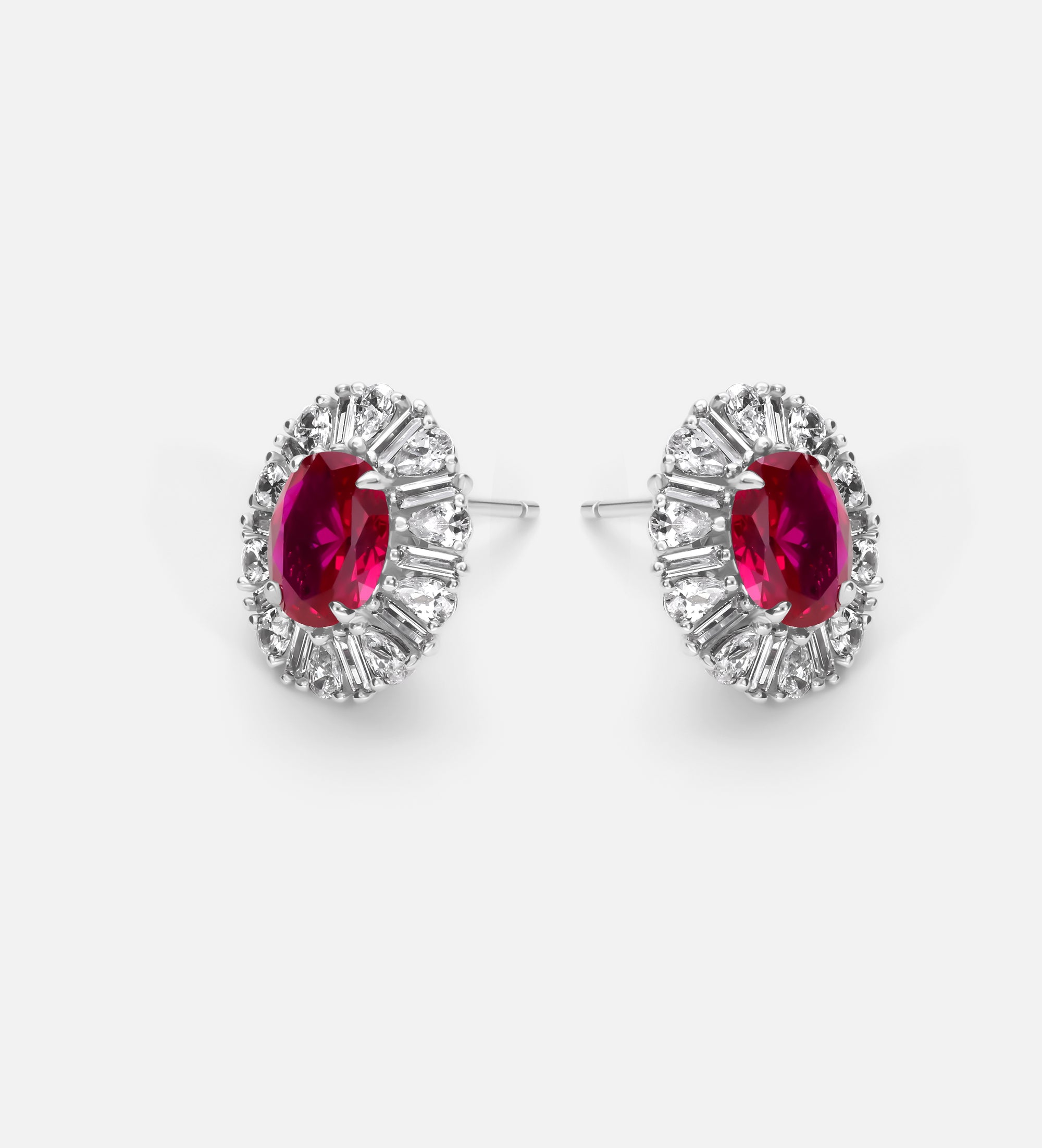 Classic Ruby Glow Studs in 925 Silver High Quality Simulated Diamonds and Crafted Ruby Stones