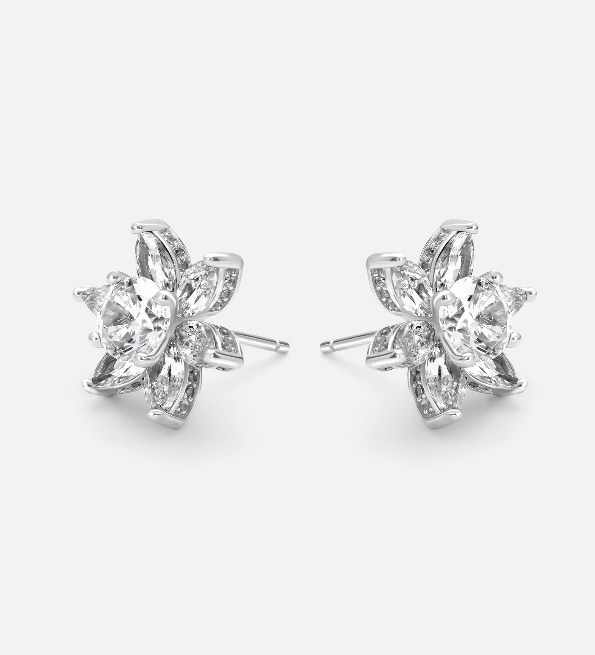 Lotus Cluster Studs in High Quality Certified Lab Crafted Stones In 925 Silver