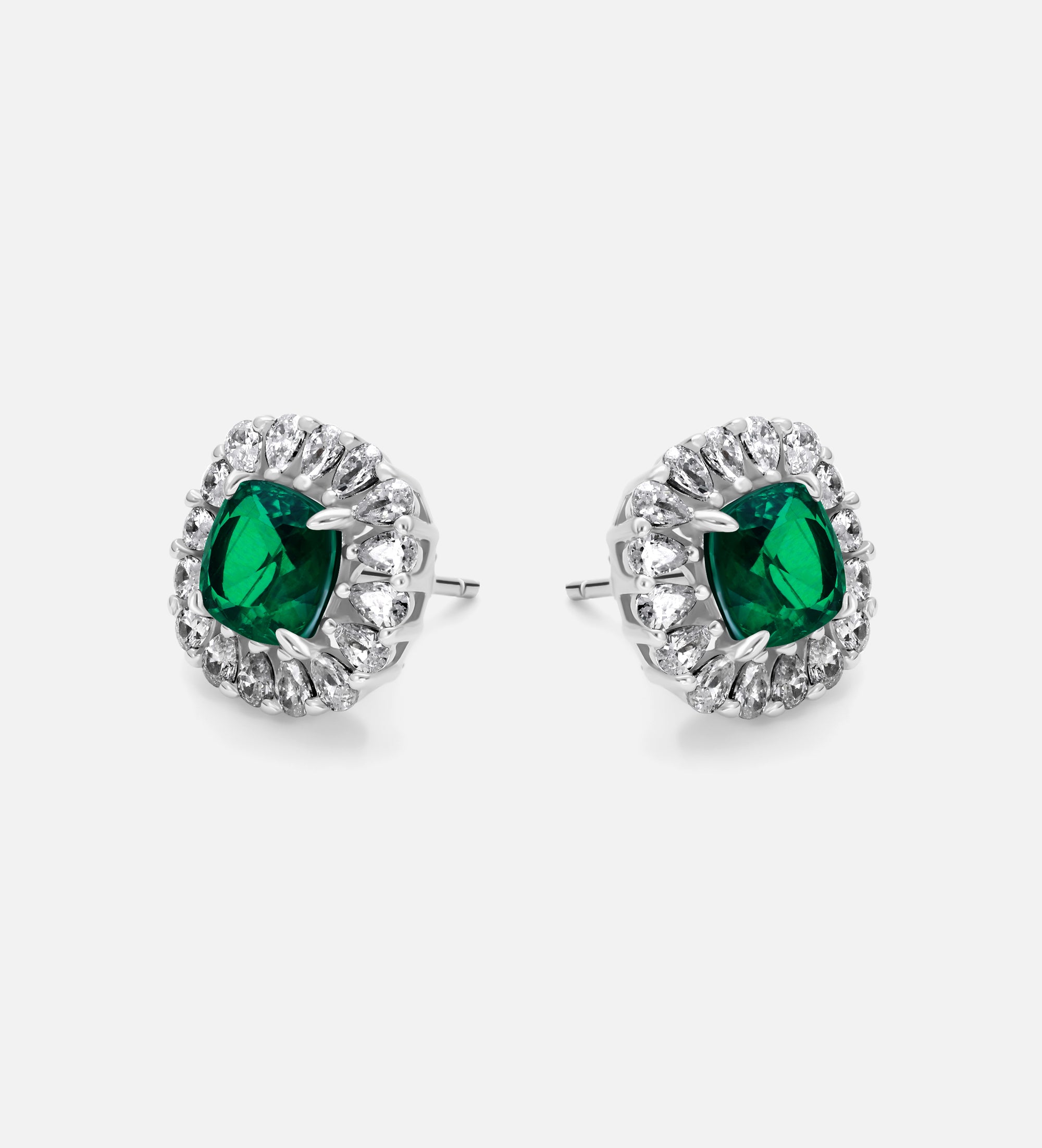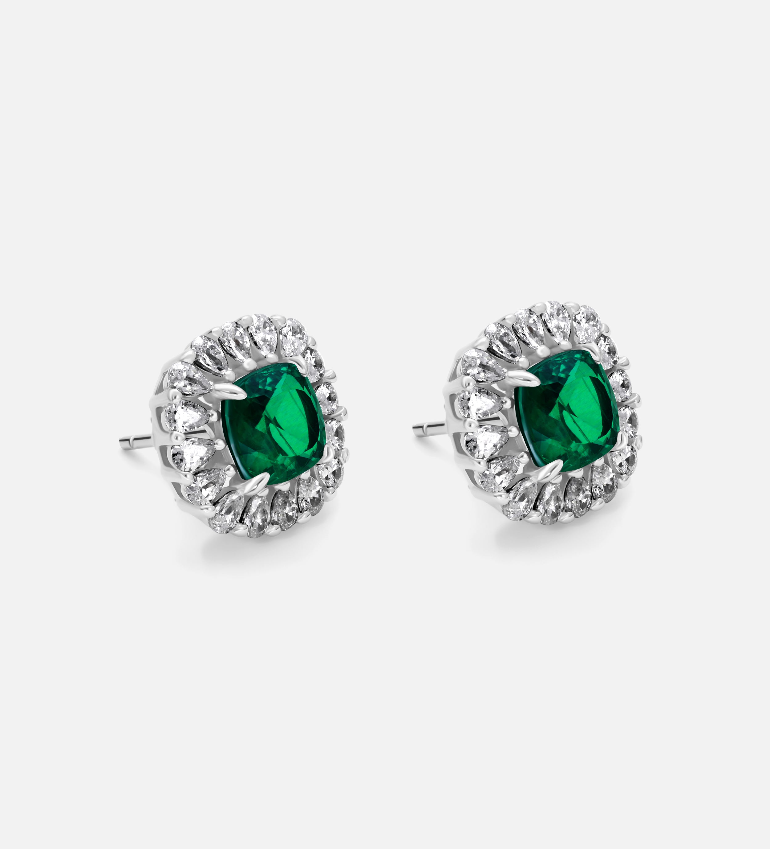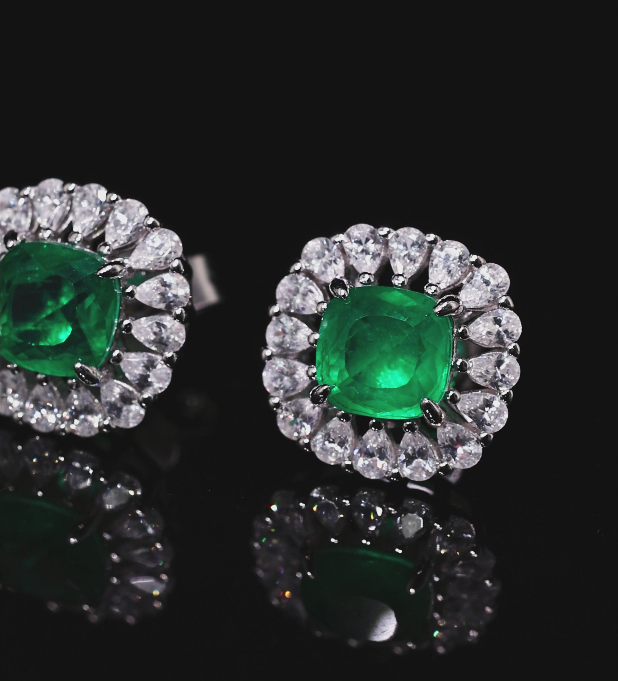 Timeless Emerald Garland Studs in 925 Silver High Quality Simulated Diamonds and Crafted Emerald Stones