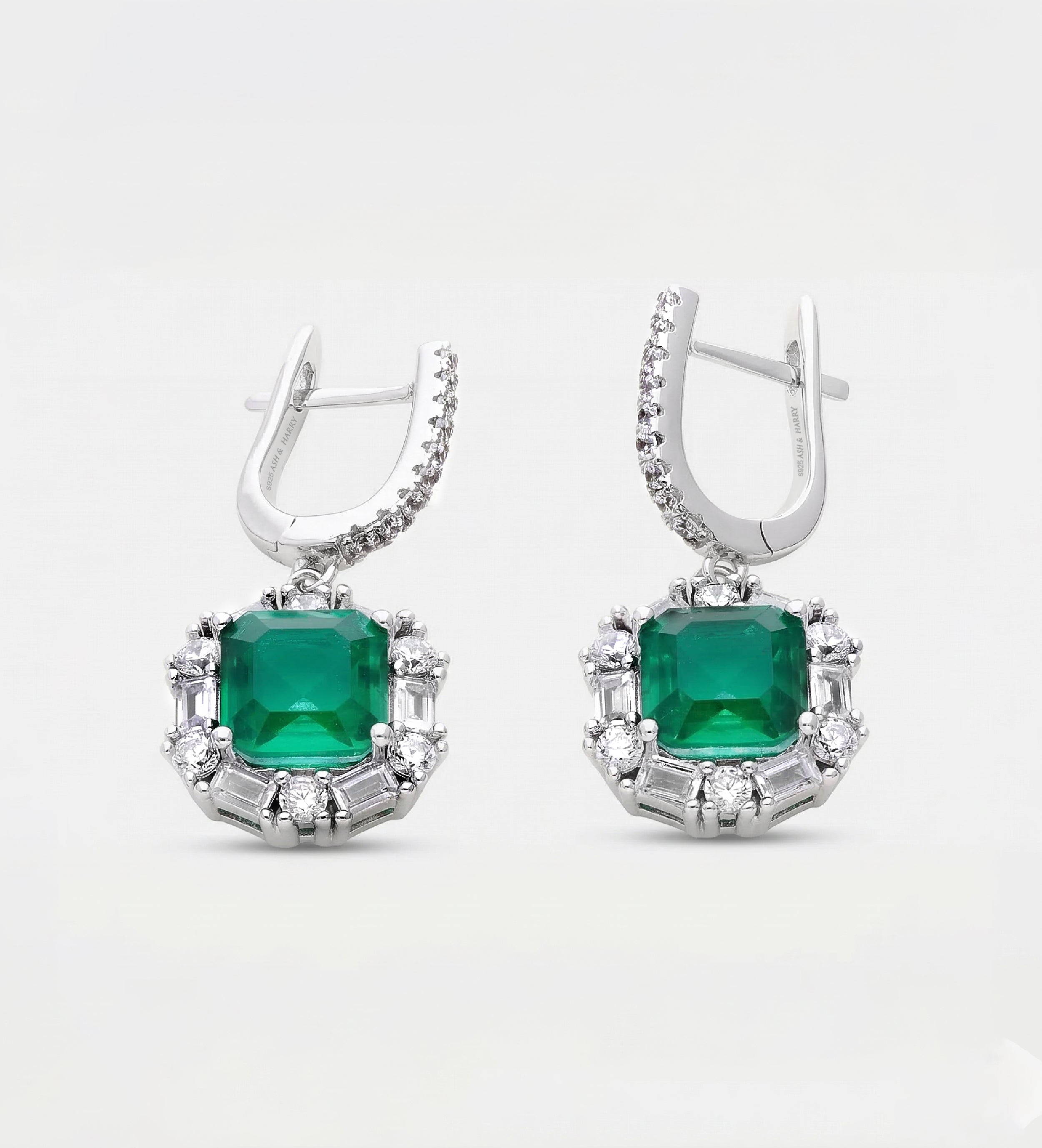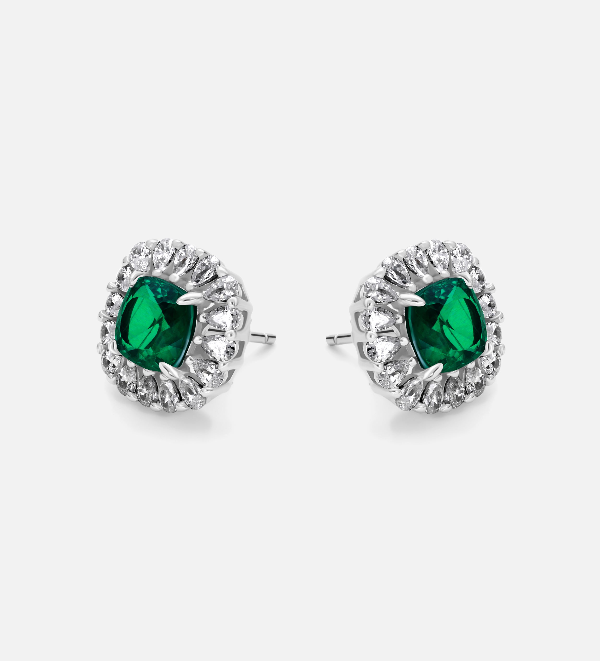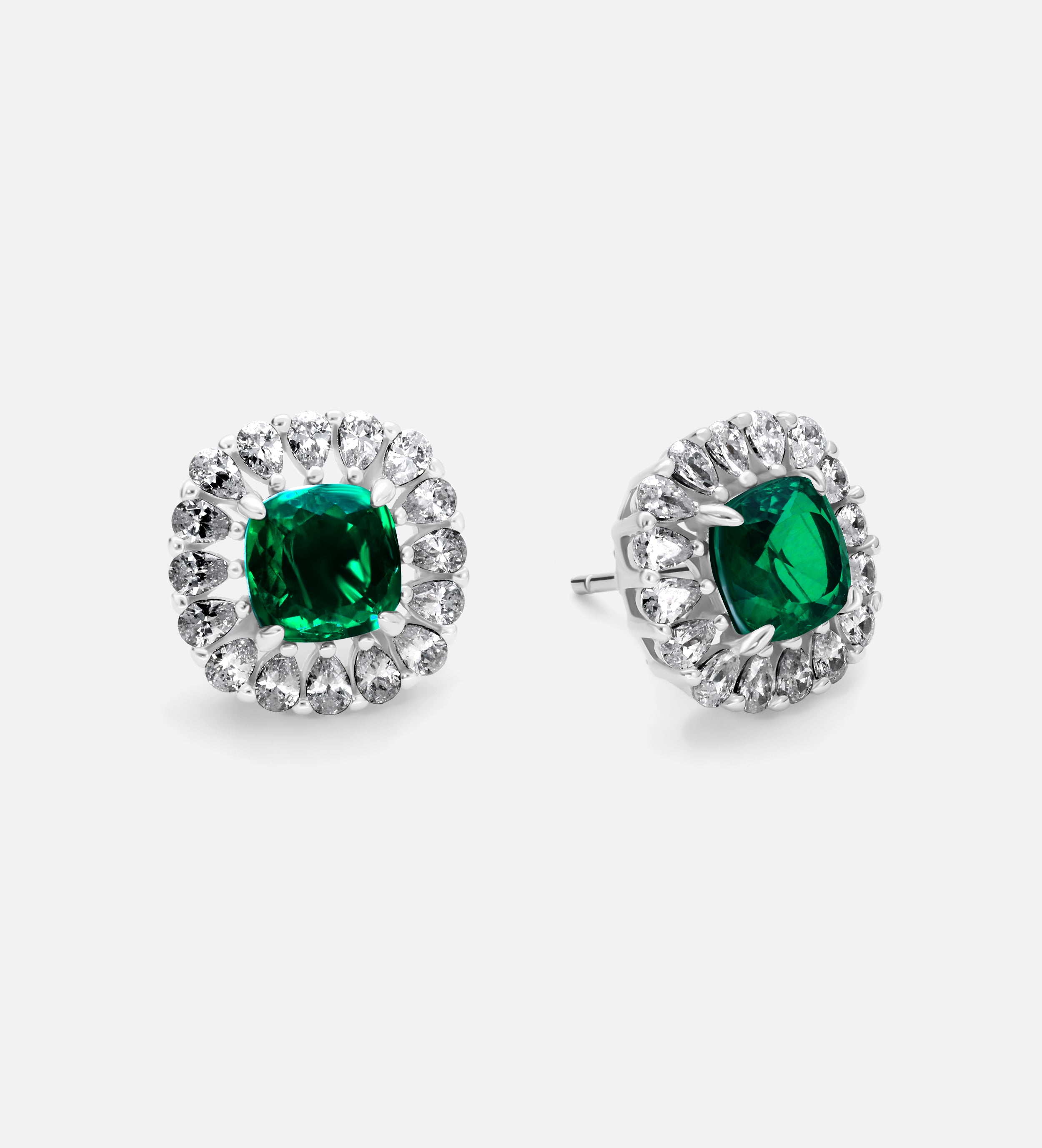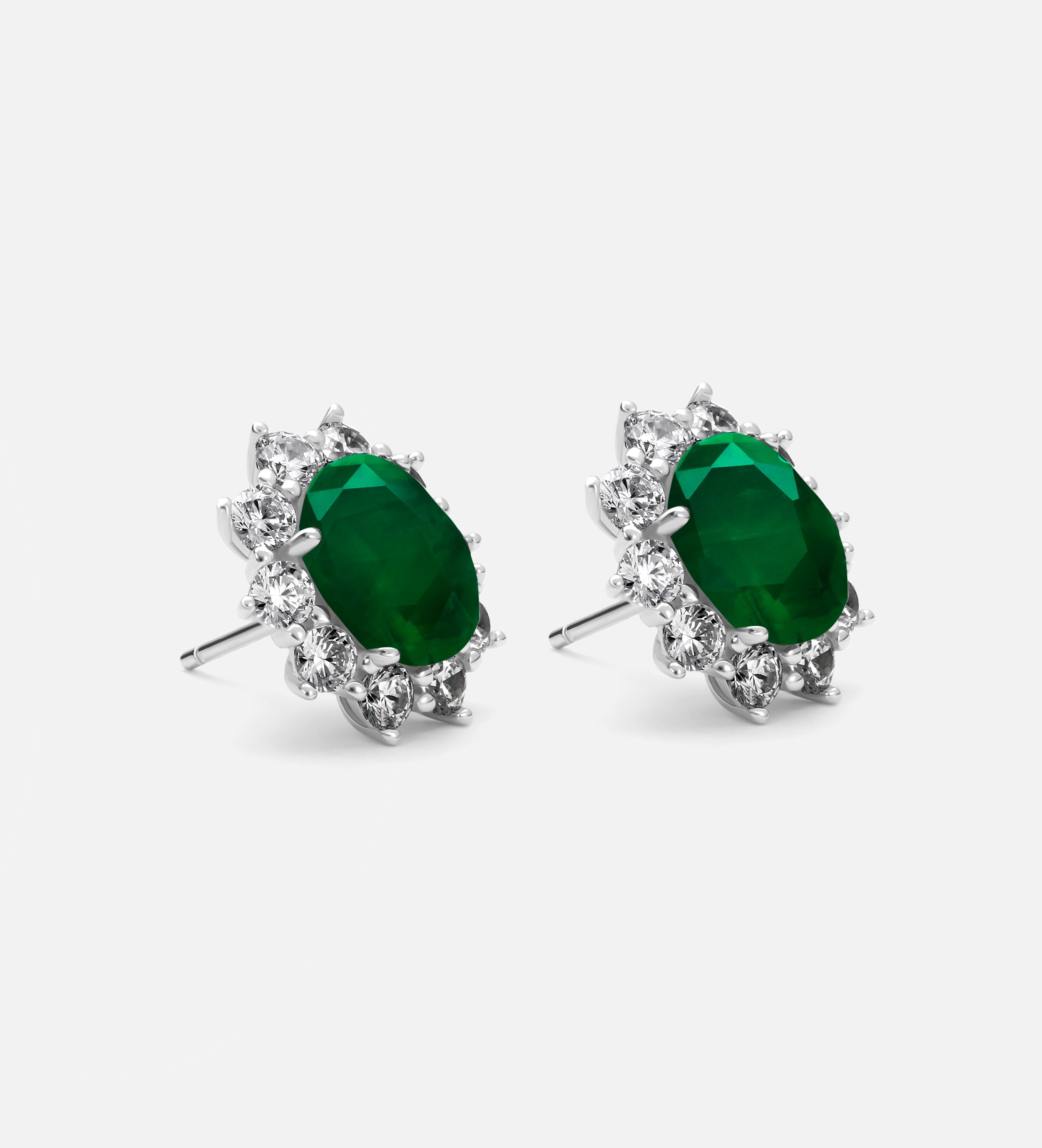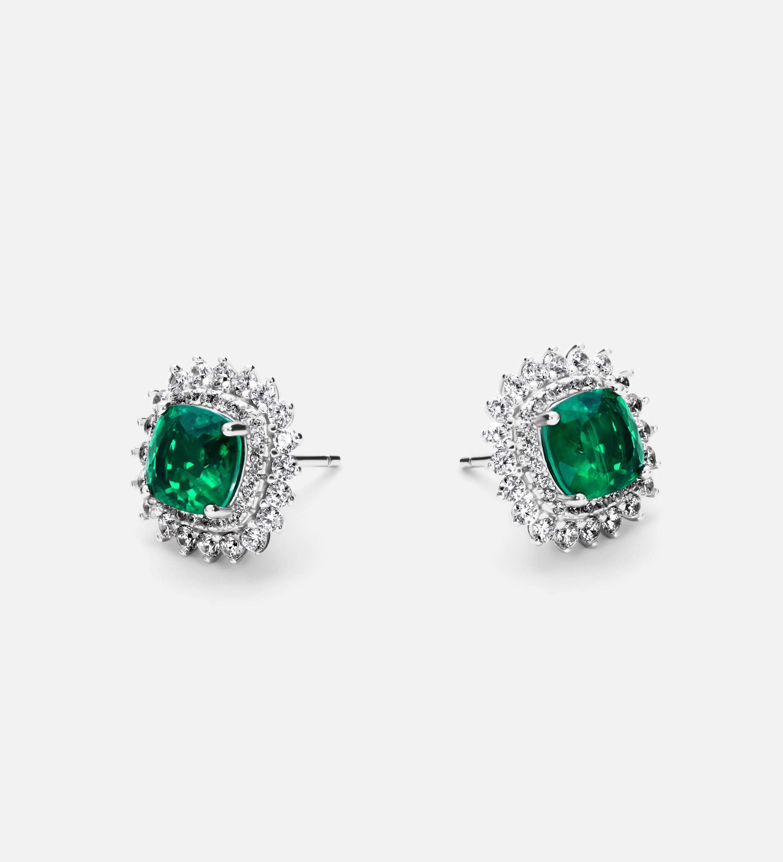 Majestic Emerald Studs in 925 Silver High Quality Simulated Diamonds and Emerald Stones