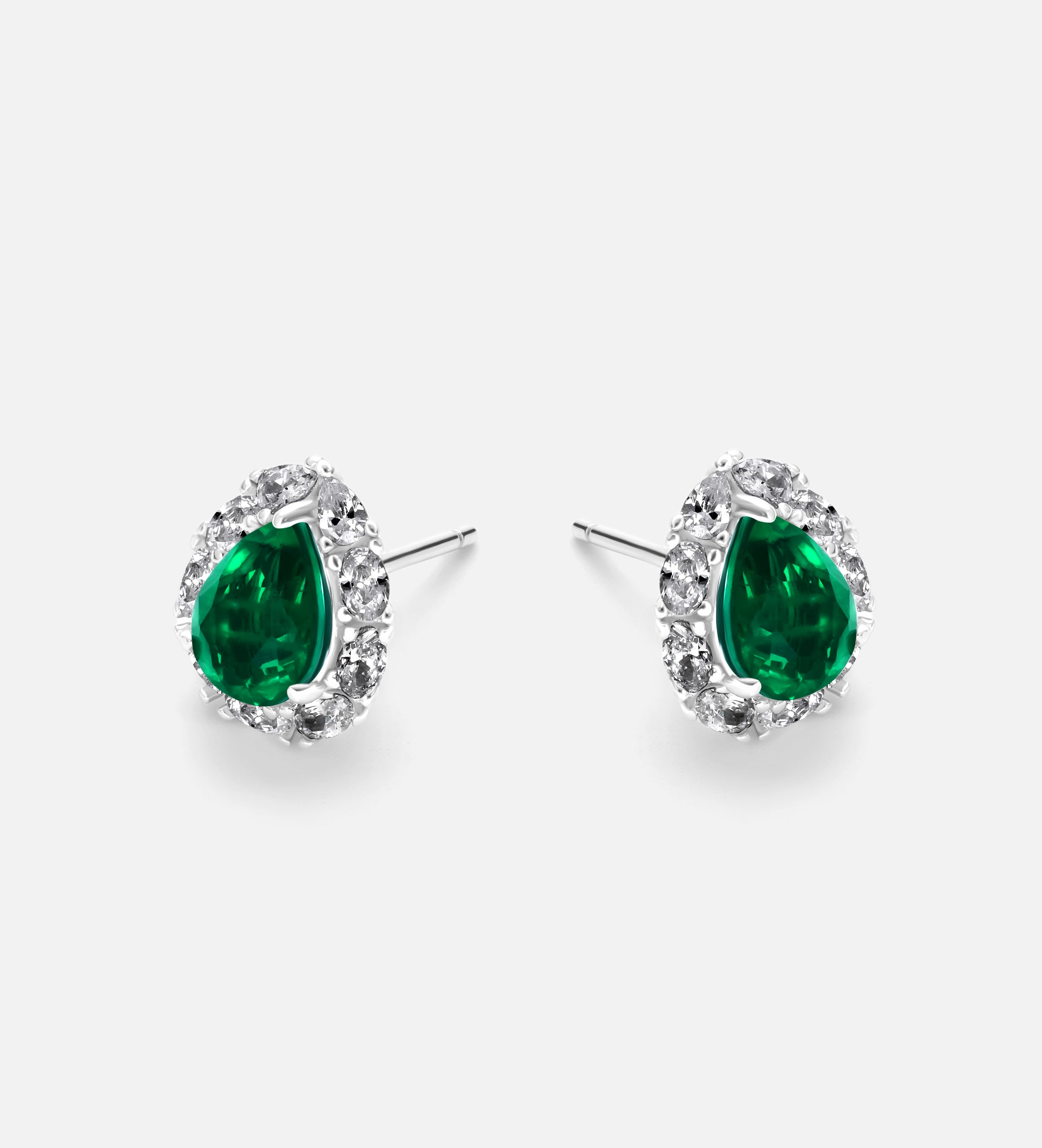 Imperial Emerald Studs in 925 Silver High Quality Simulated Diamonds and Crafted Pear-Cut Emerald Stones