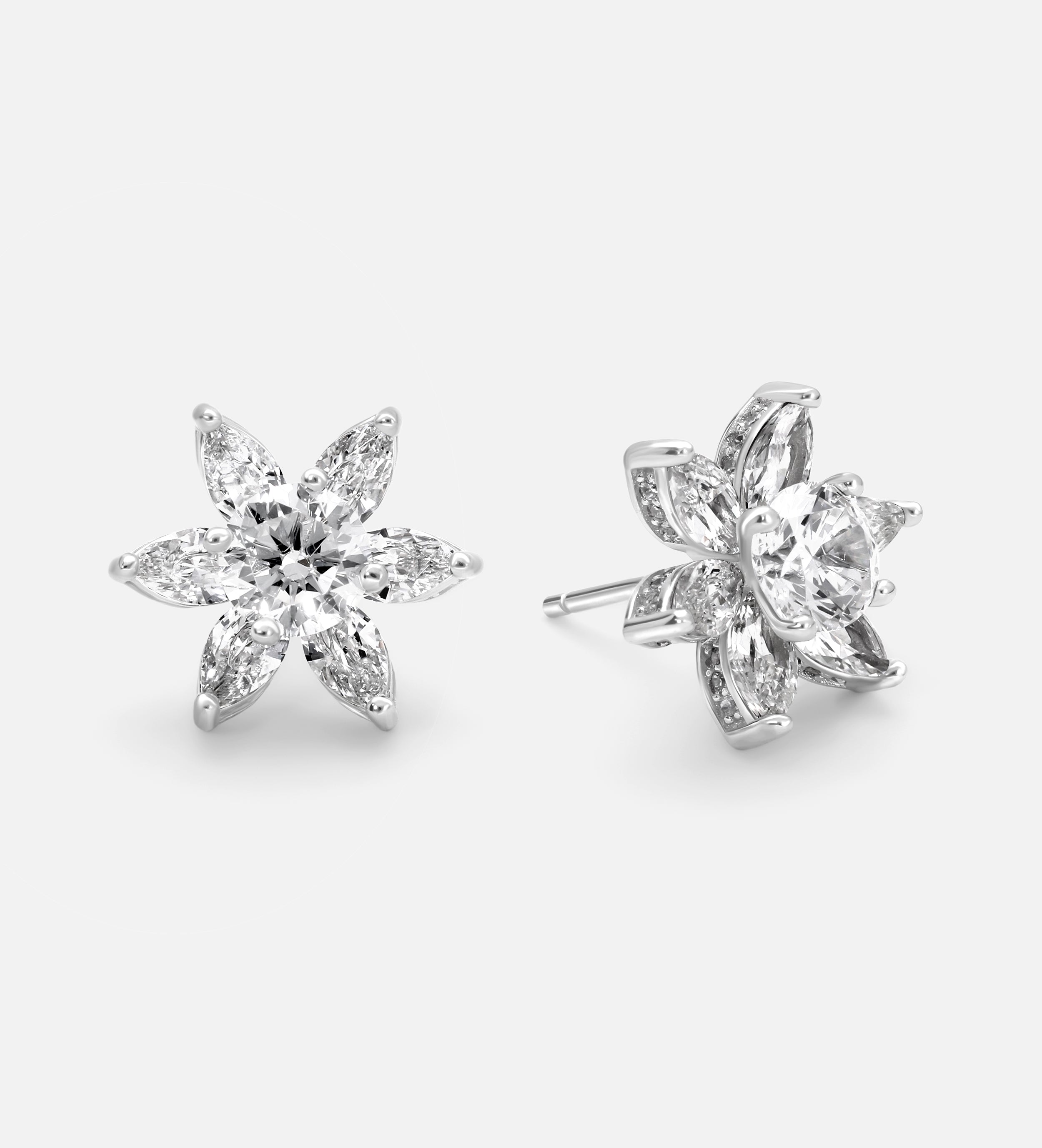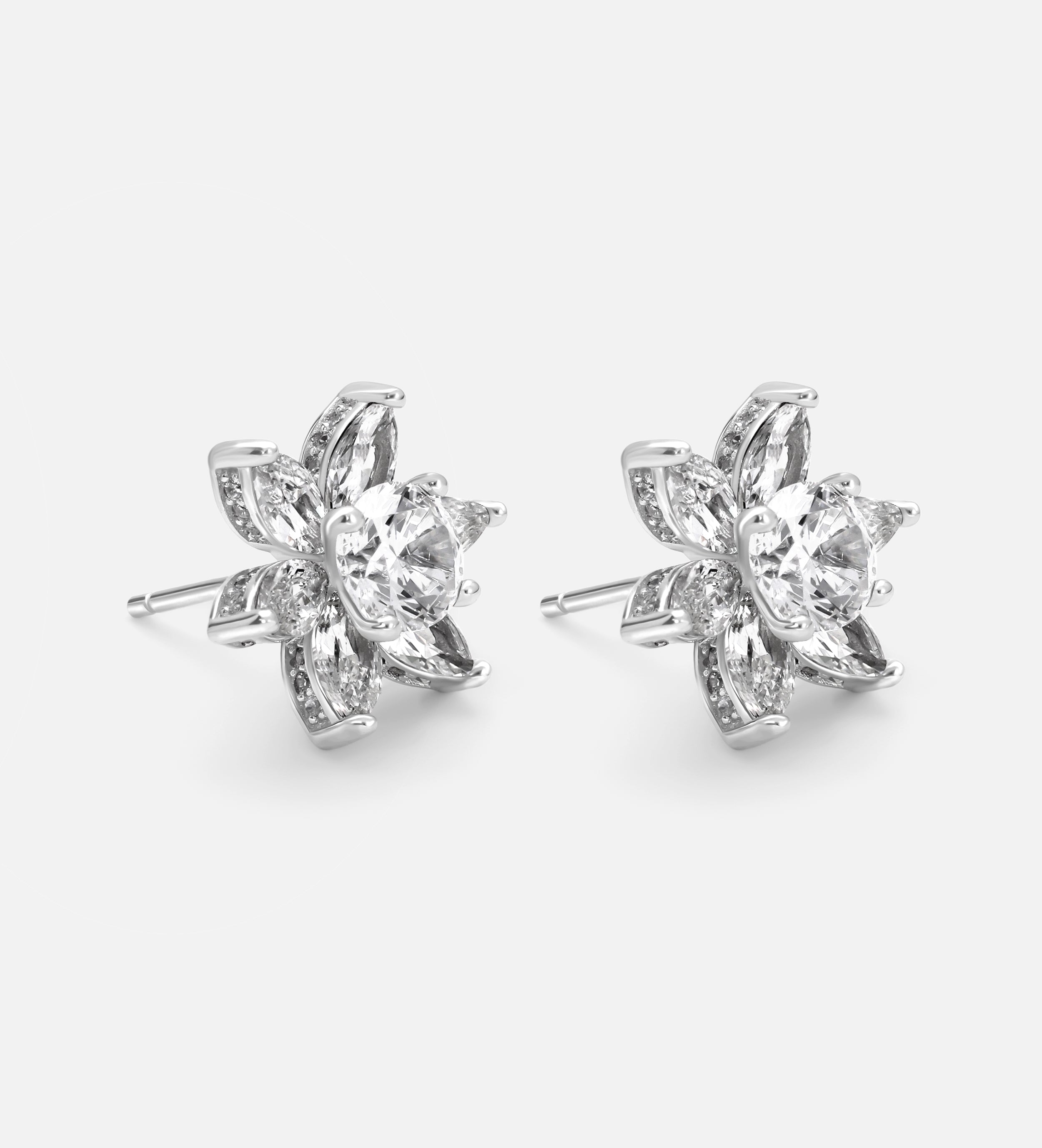 Lotus Cluster Studs in High Quality Certified Lab Crafted Stones In 925 Silver