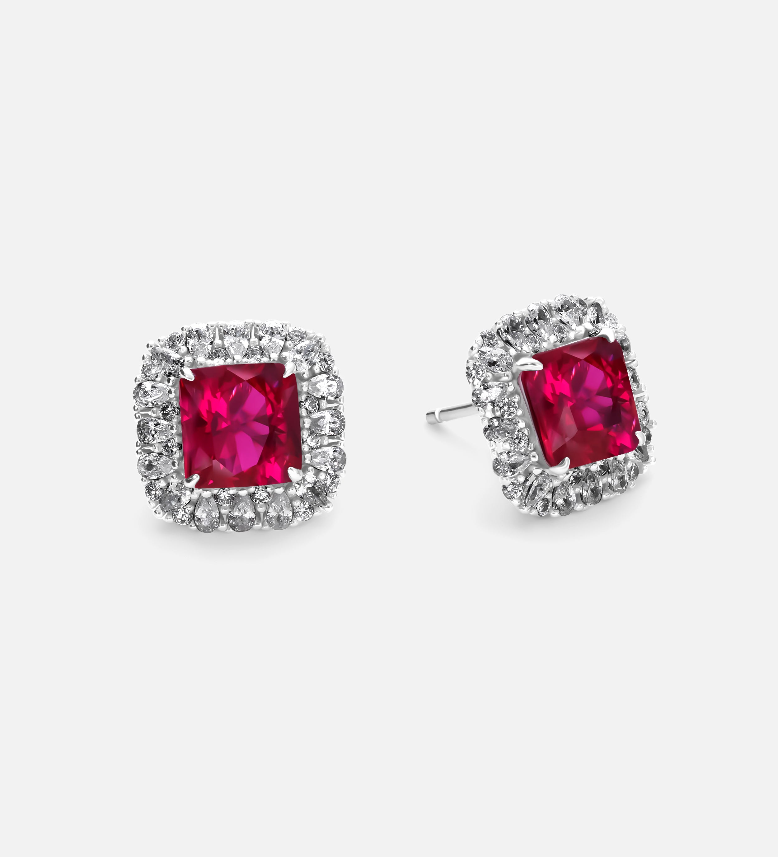 Classic Ruby Glow Studs in 925 Silver High Quality Simulated Diamonds and Crafted Ruby Stones