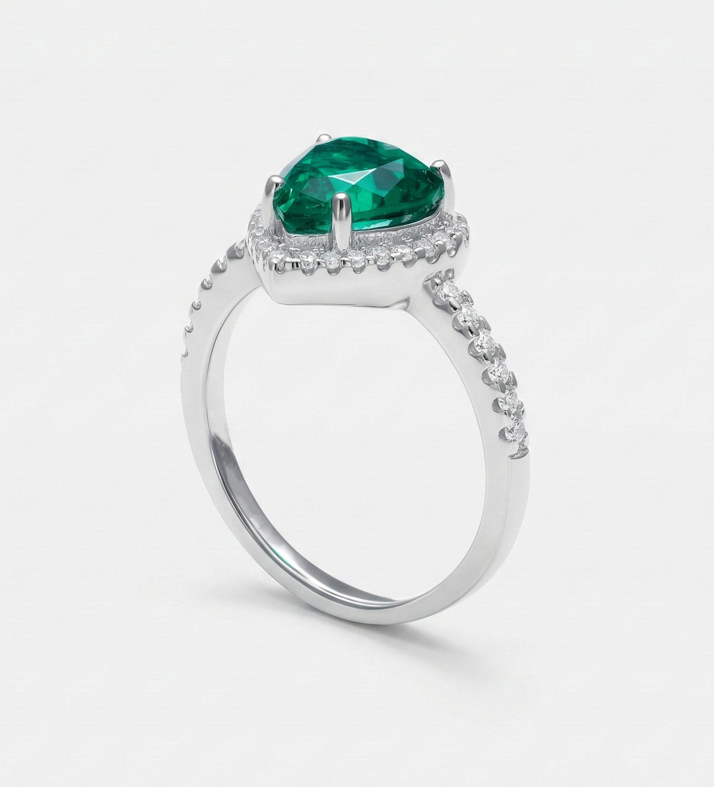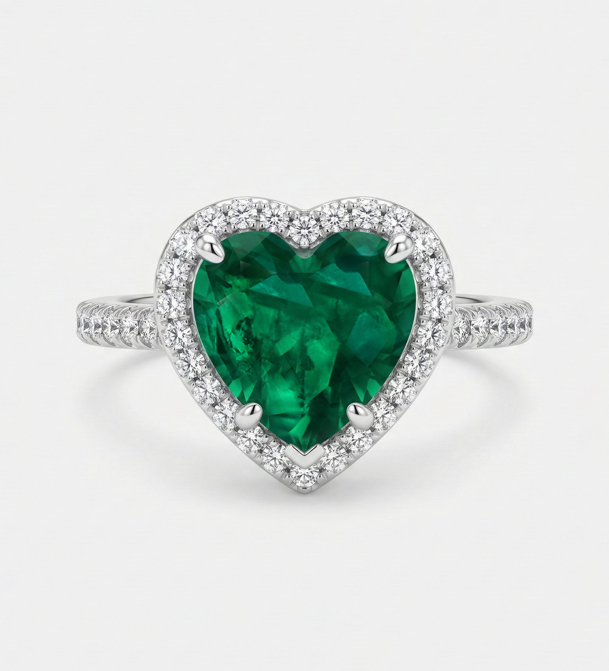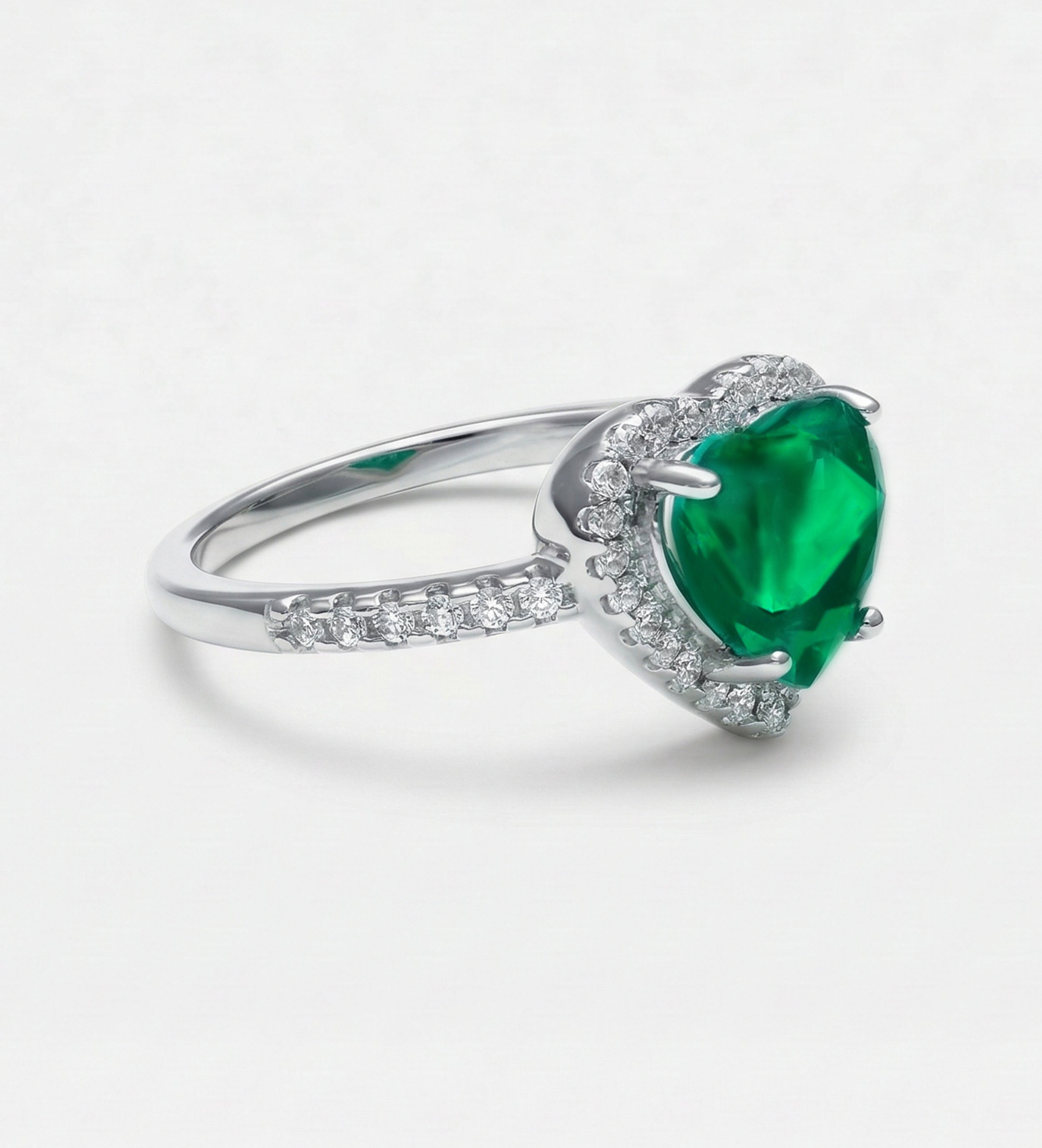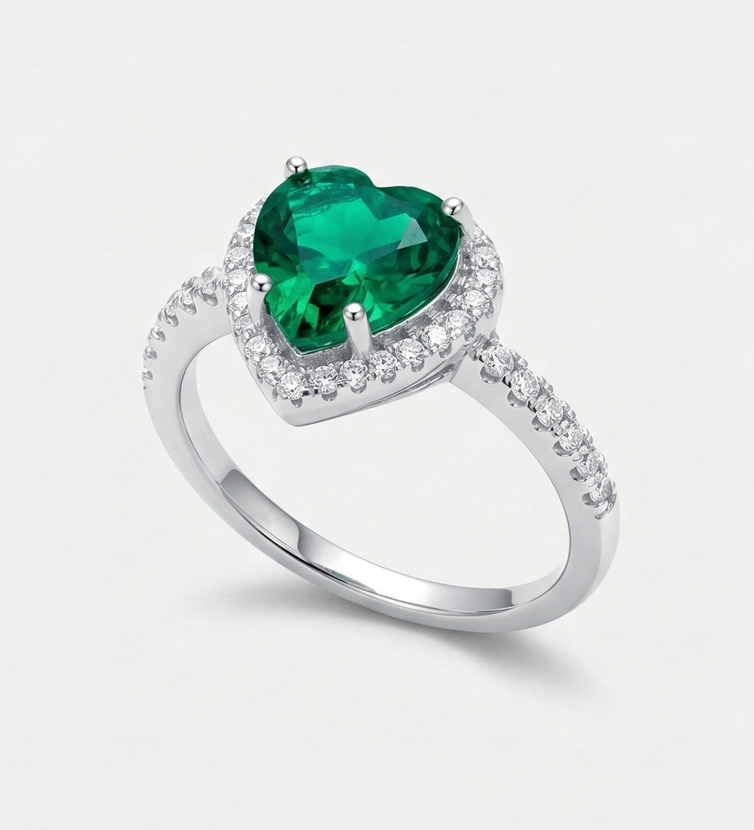 Emerald Heart Majesty Ring in 925 Silver High Quality Simulated Diamonds and Crafted Heart-Shaped Emerald Stone
