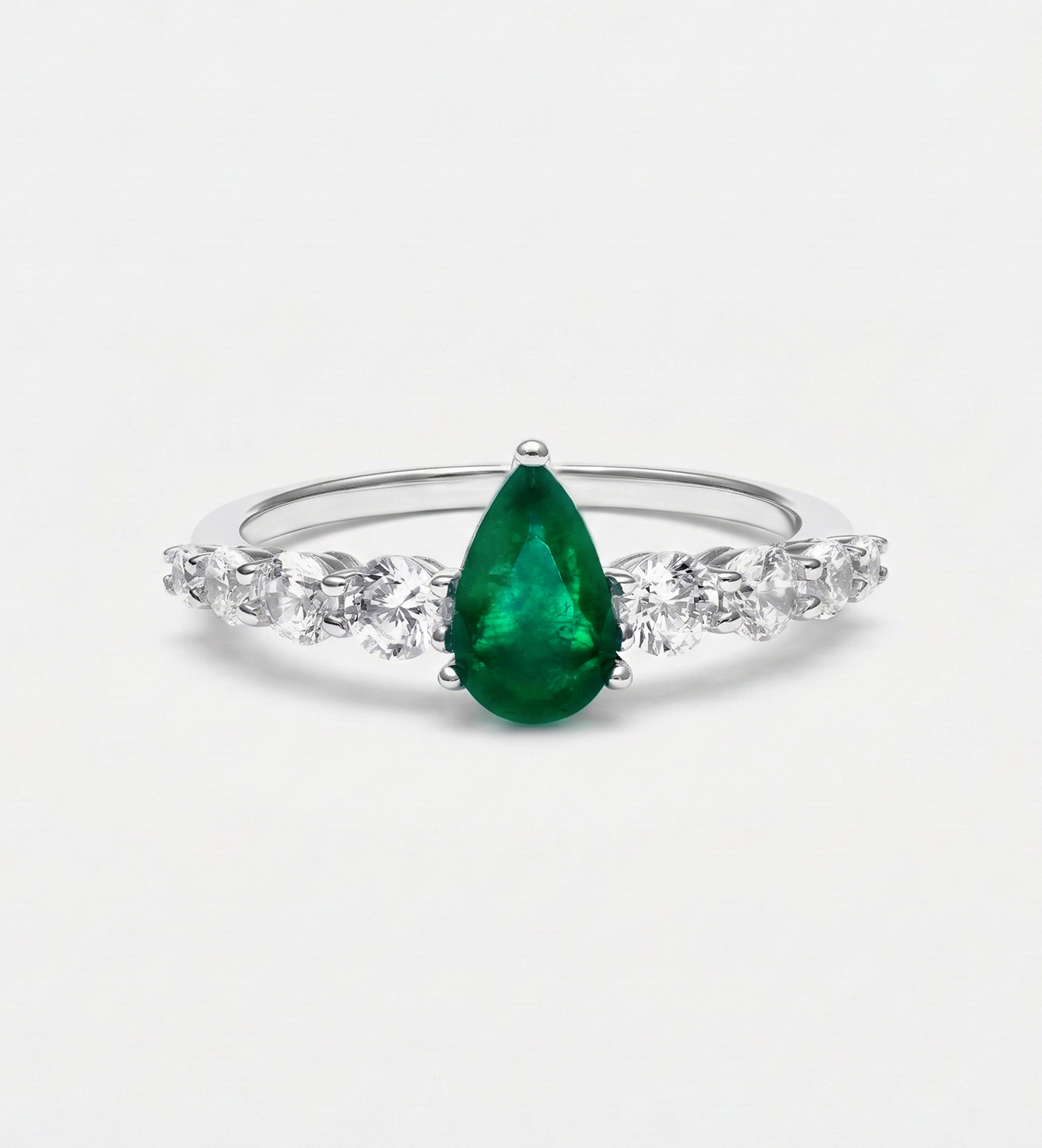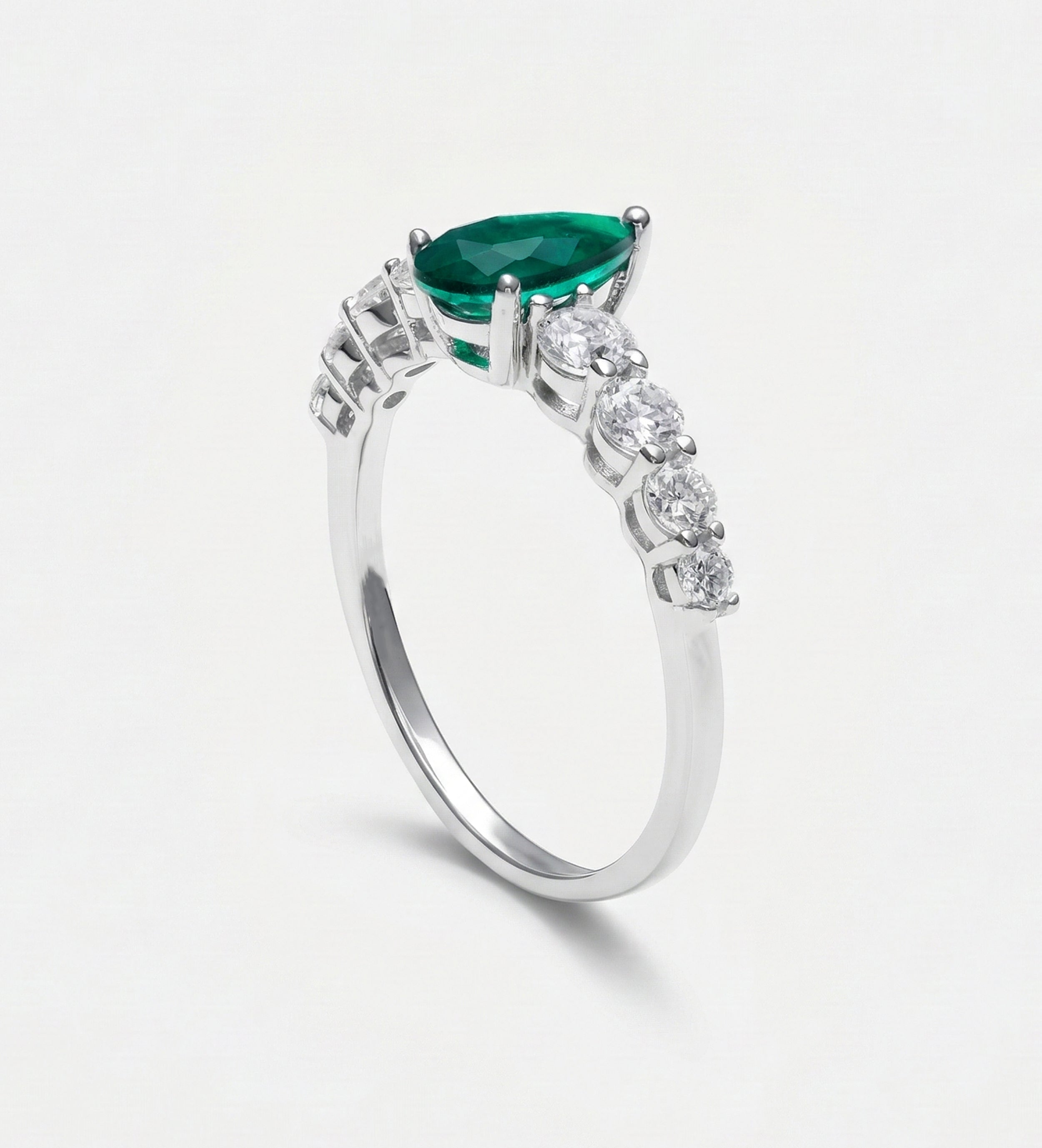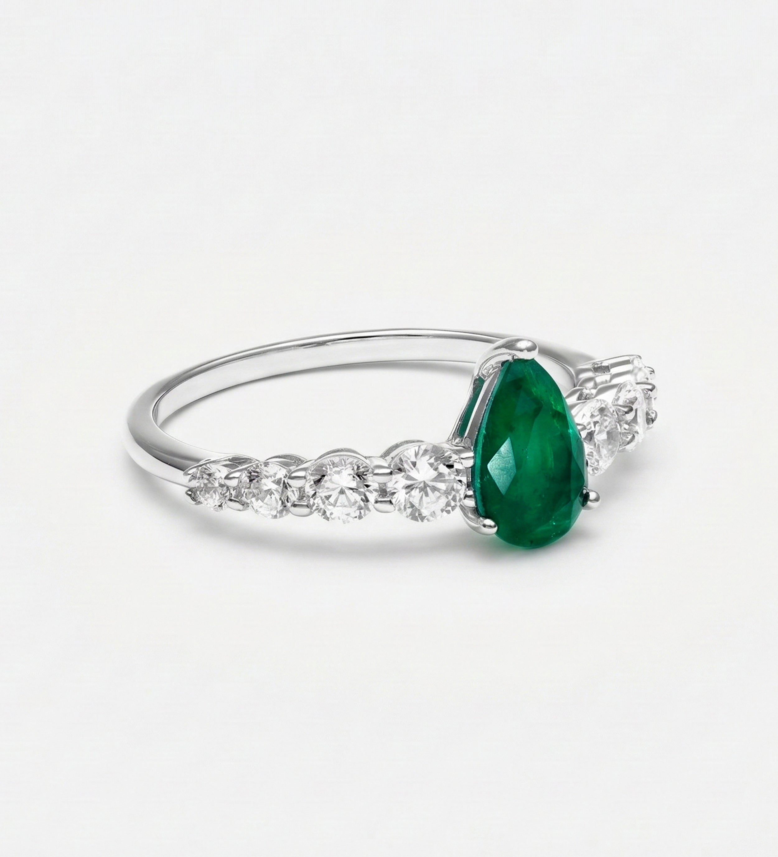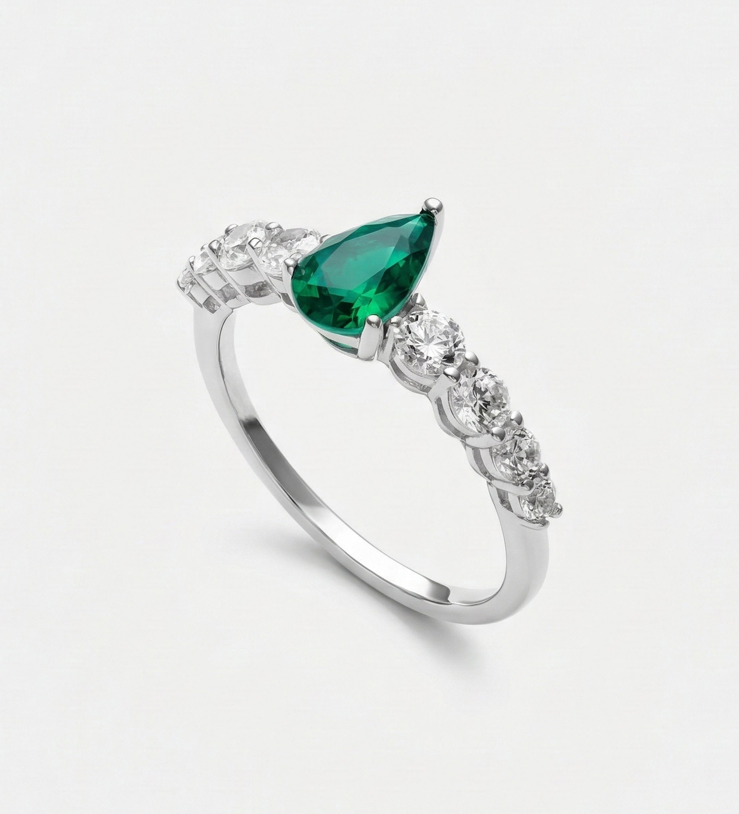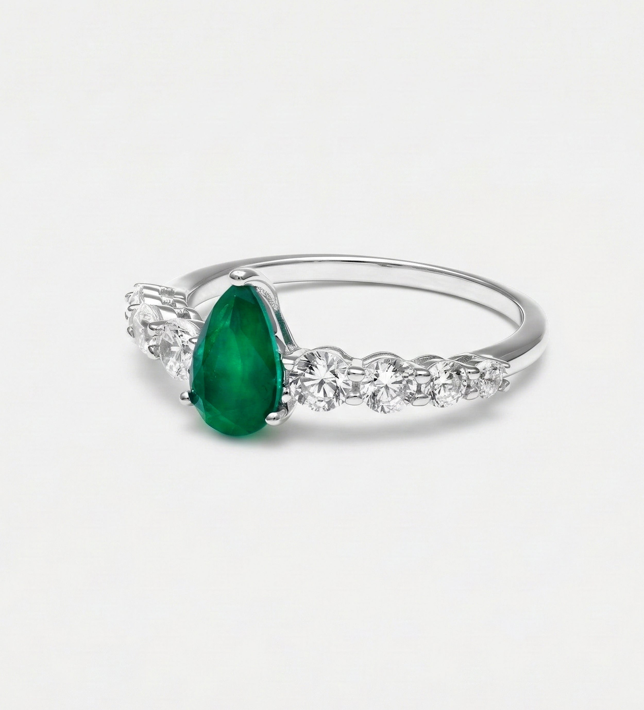 Emerald Teardrop Ring in 925 Silver High Quality Simulated Diamonds and Emerald Stone