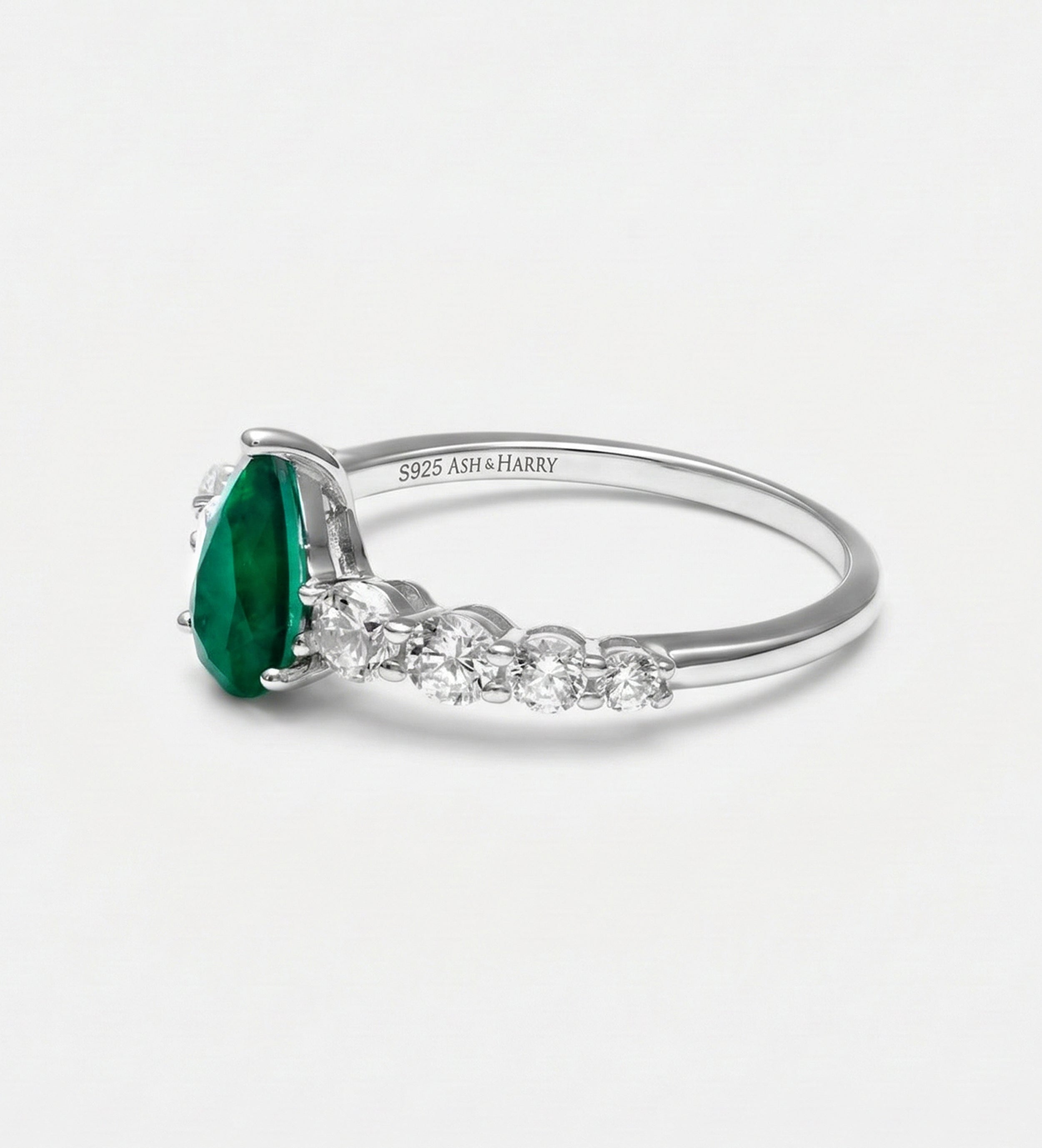 INSCRIPTION GUIDE - Emerald Teardrop Ring in 925 Silver High Quality Simulated Diamonds and Emerald Stone