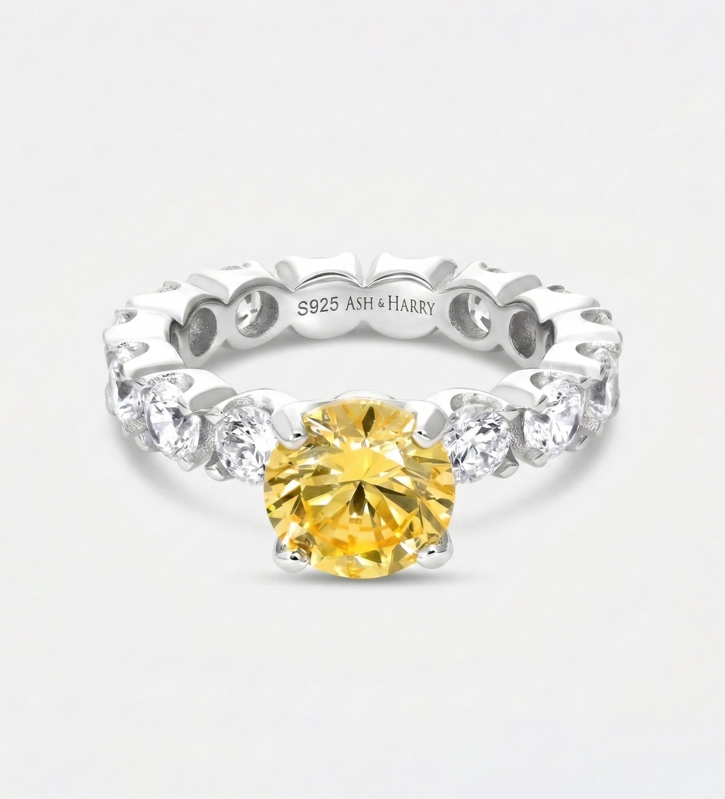 INSCRIPTION GUIDE - Eternal Sunshine Solitaire Ring with High Quality Simulated White and Canary Diamonds in 925 Silver