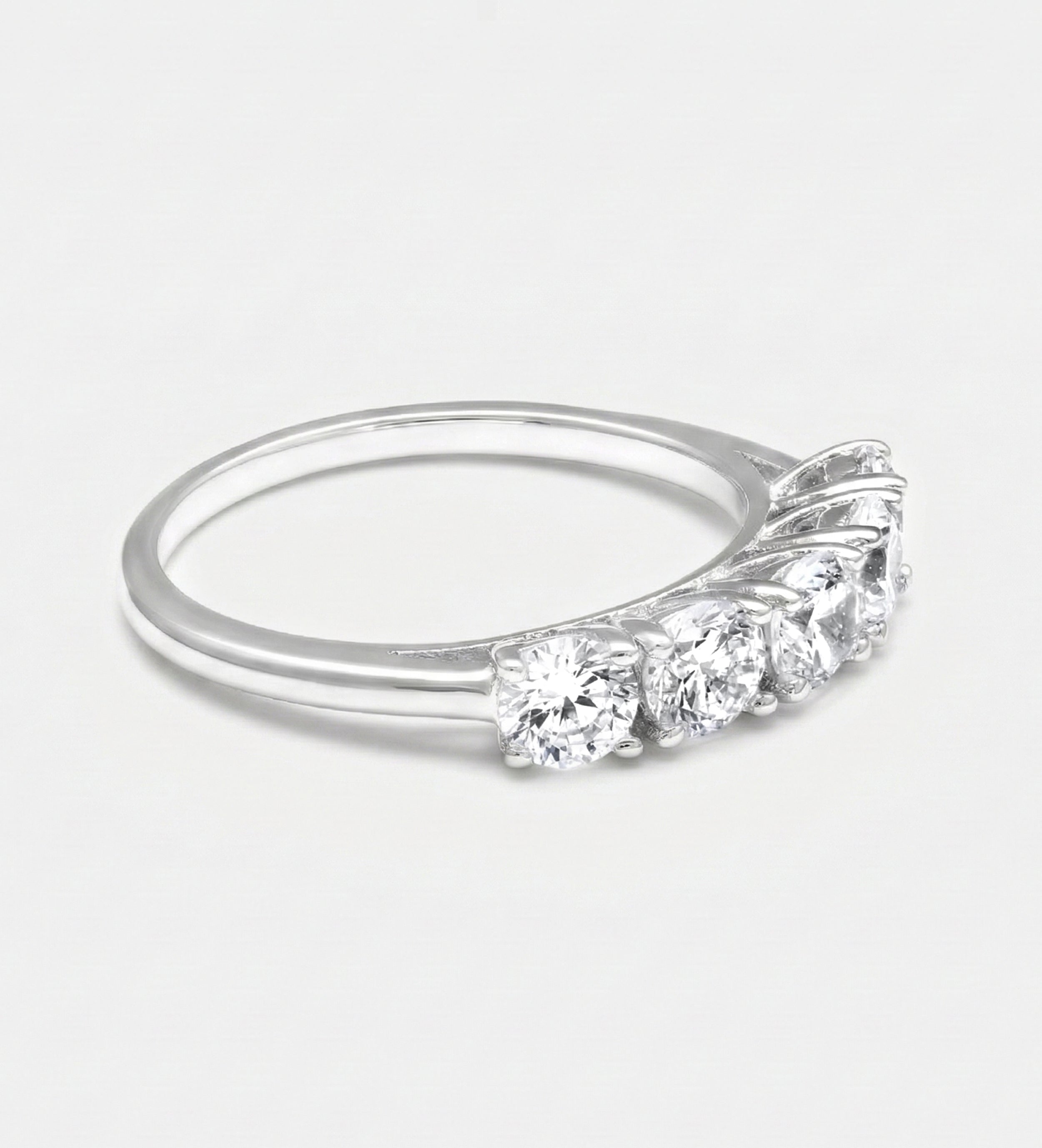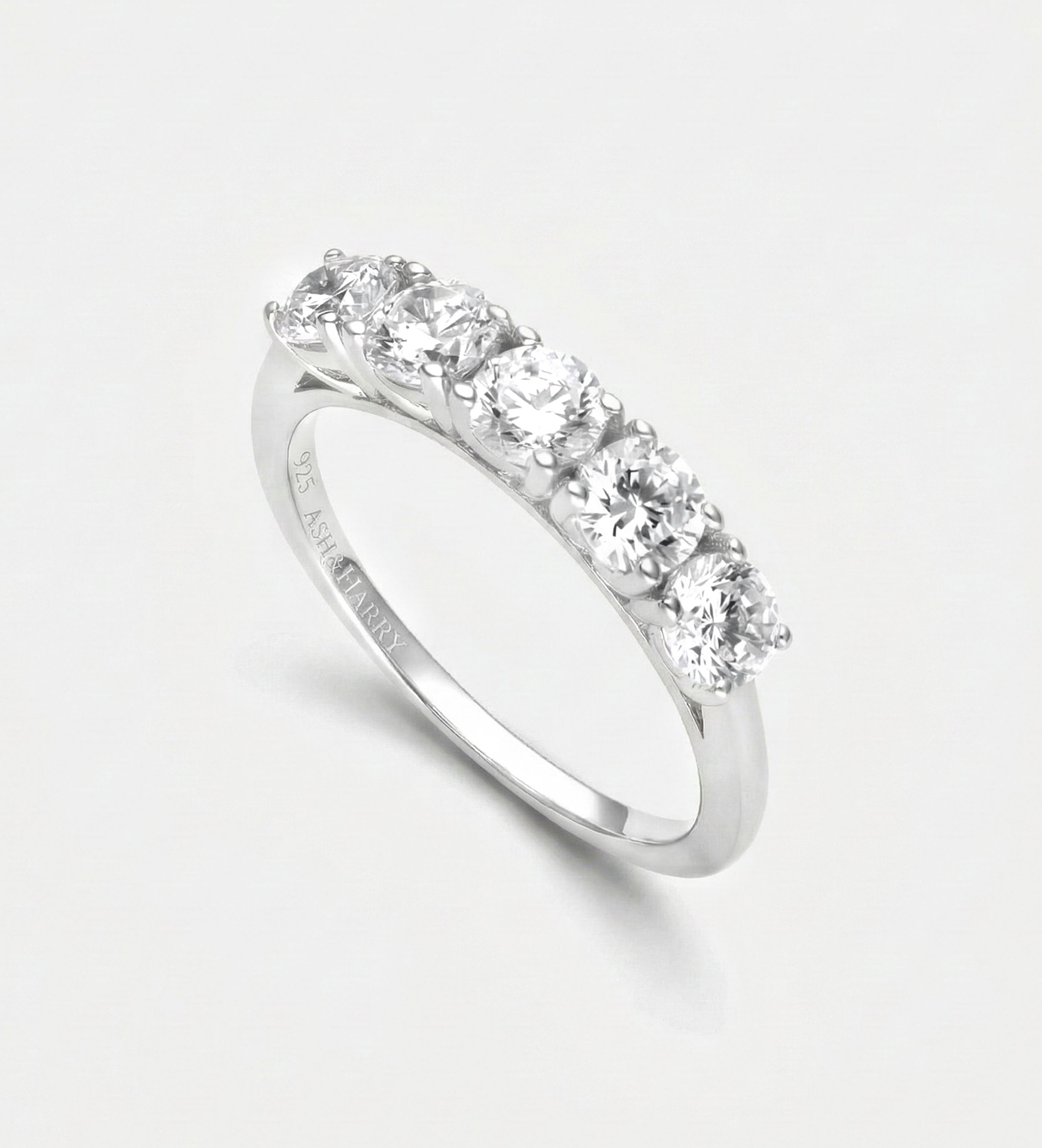 Five Star Row Ring in 925 Silver with High Quality Simulated Diamonds