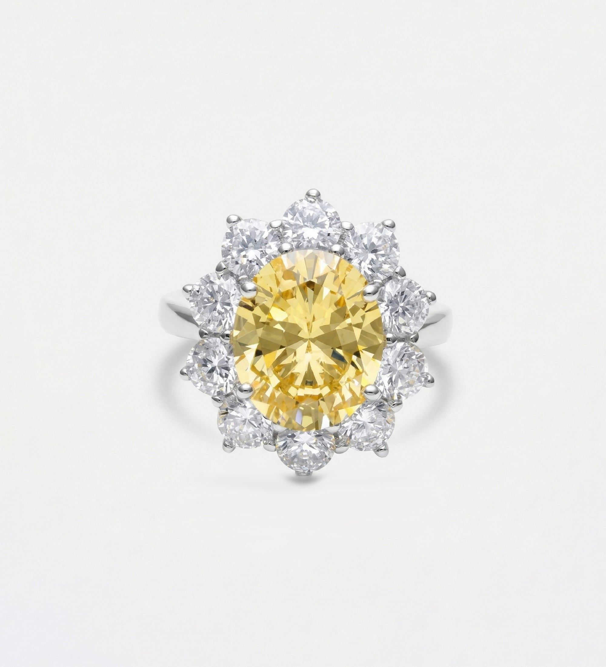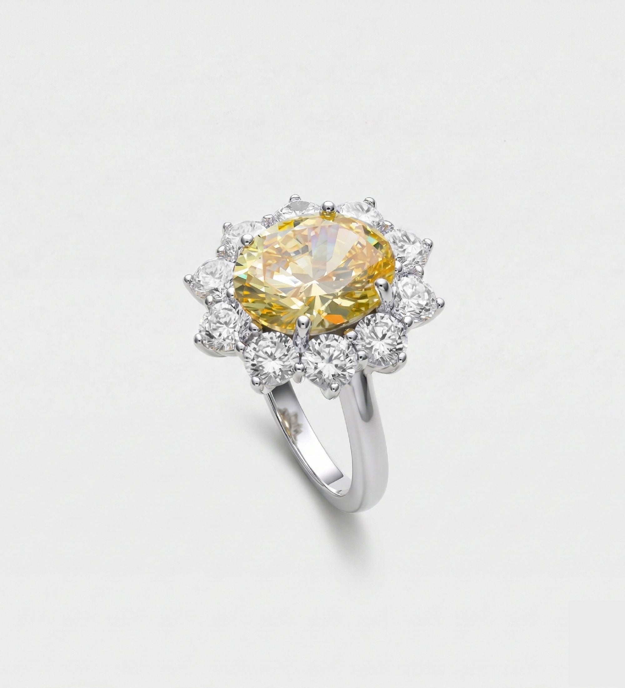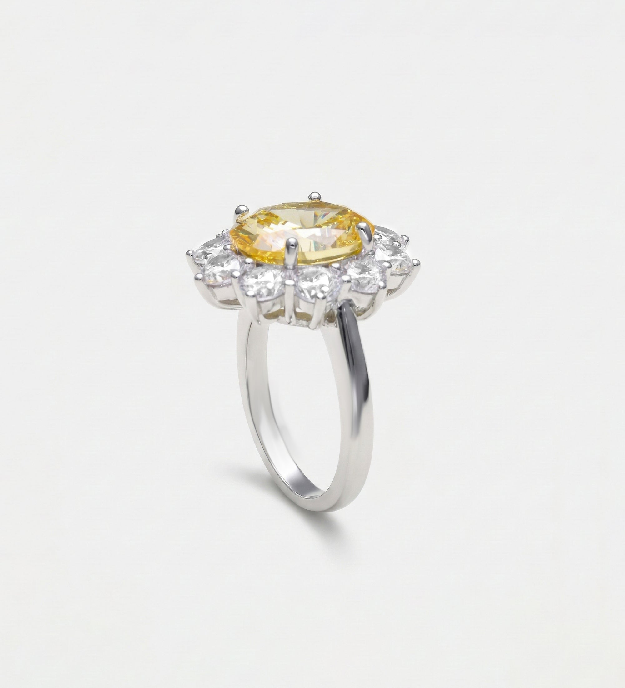 Golden Aura Ring in 925 Silver with High Quality Simulated White and Crafted Canary Diamonds