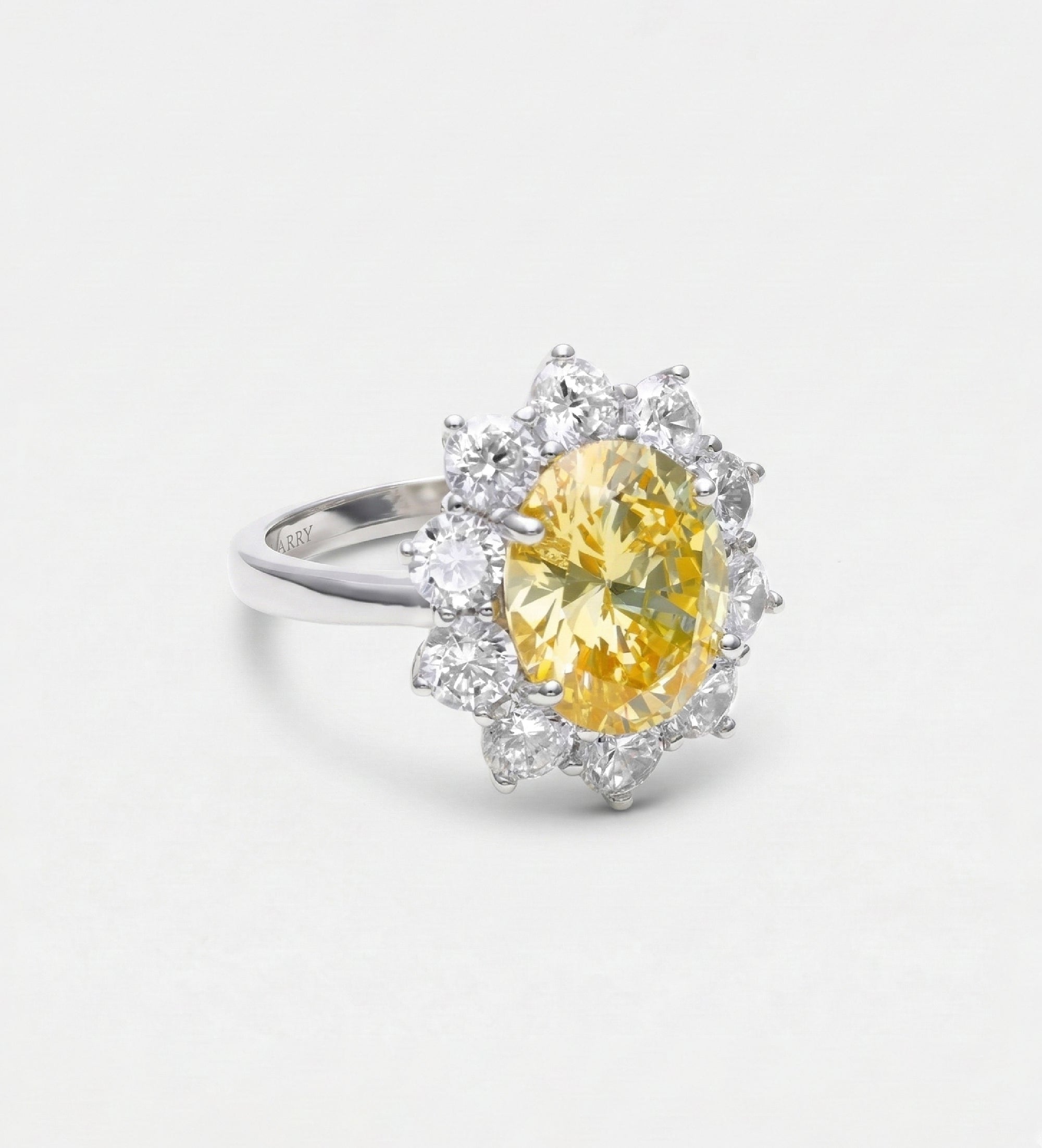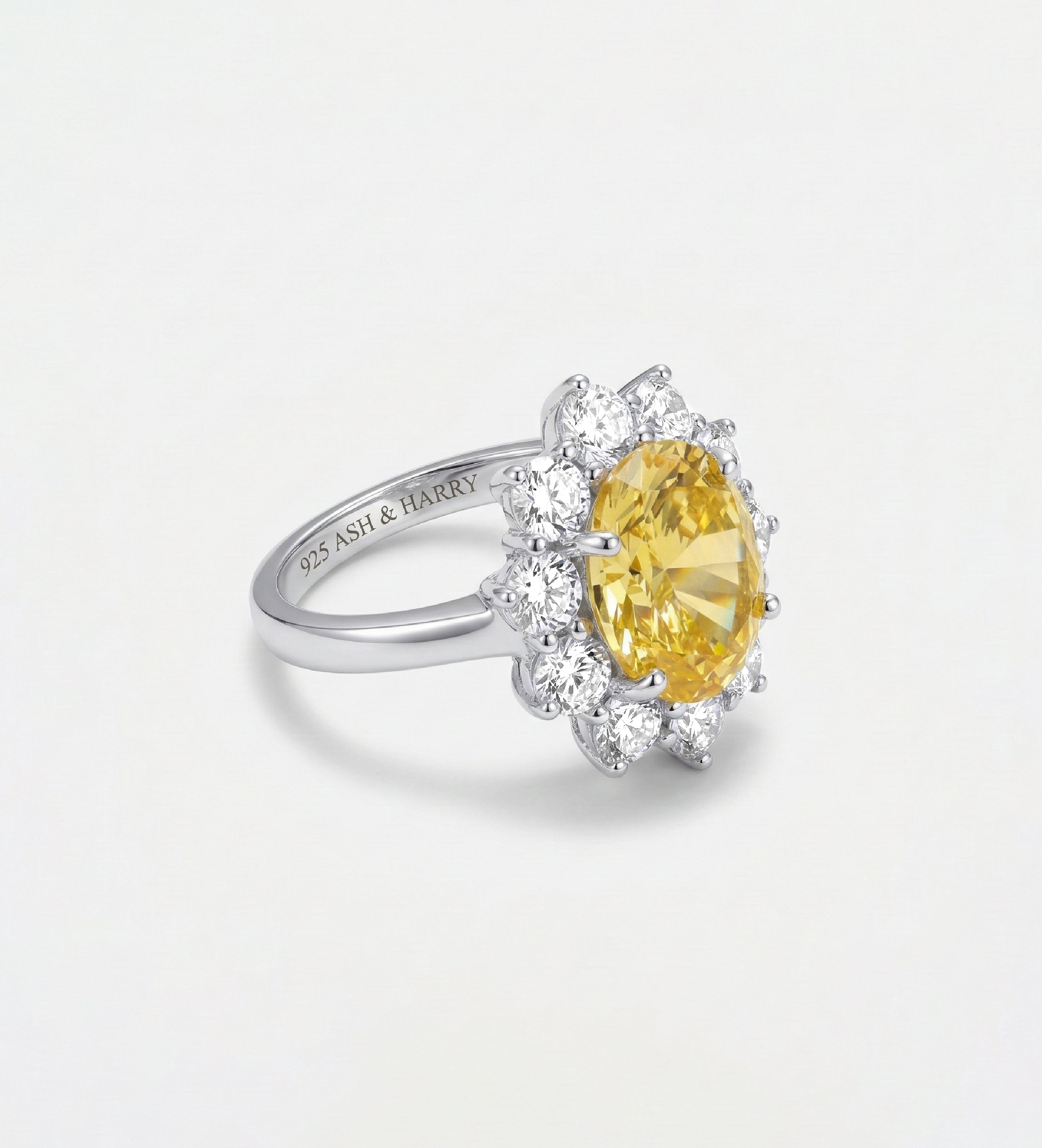 INSCRIPTION GUIDE - Golden Aura Ring in 925 Silver with High Quality Simulated White and Crafted Canary Diamonds