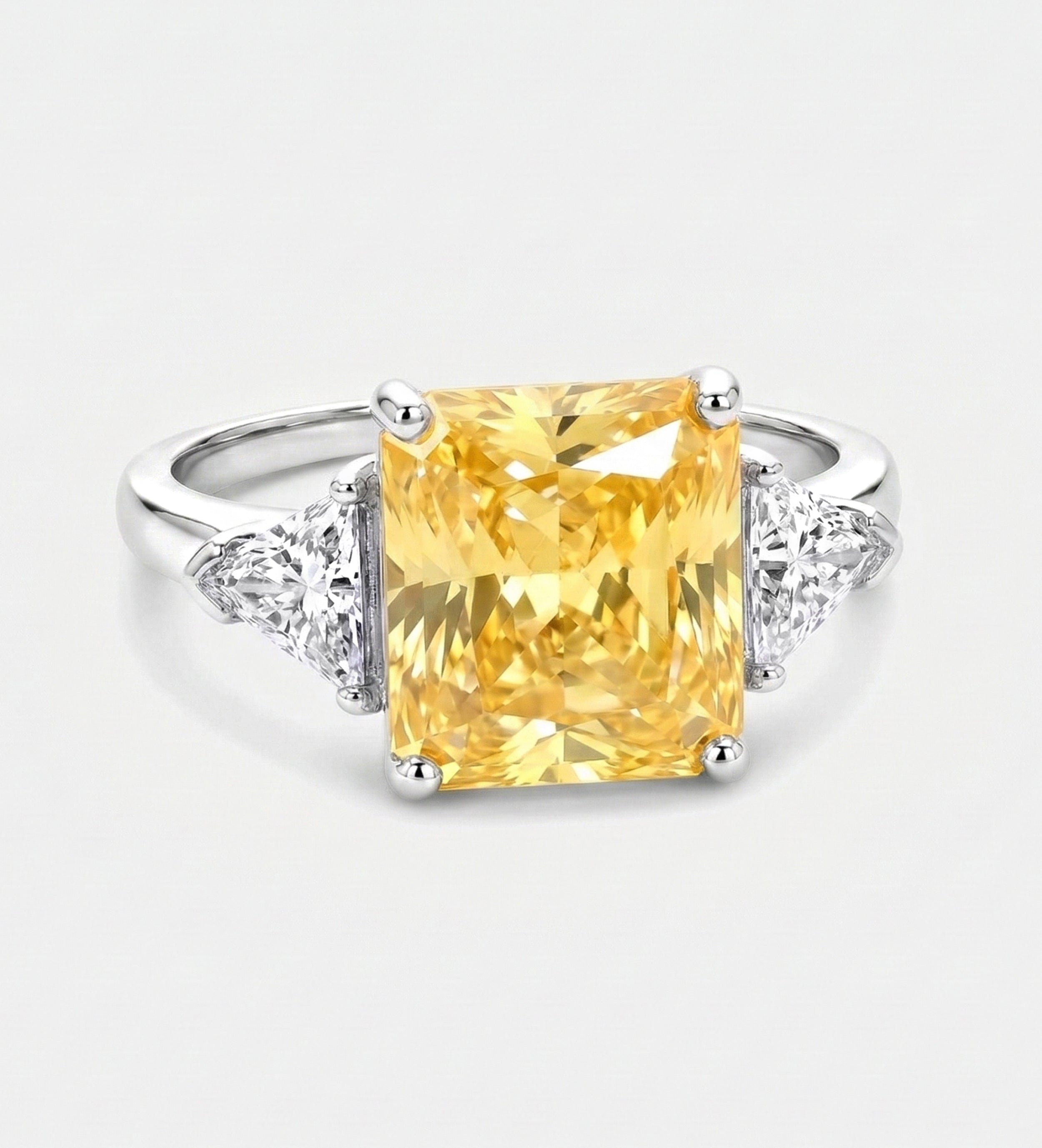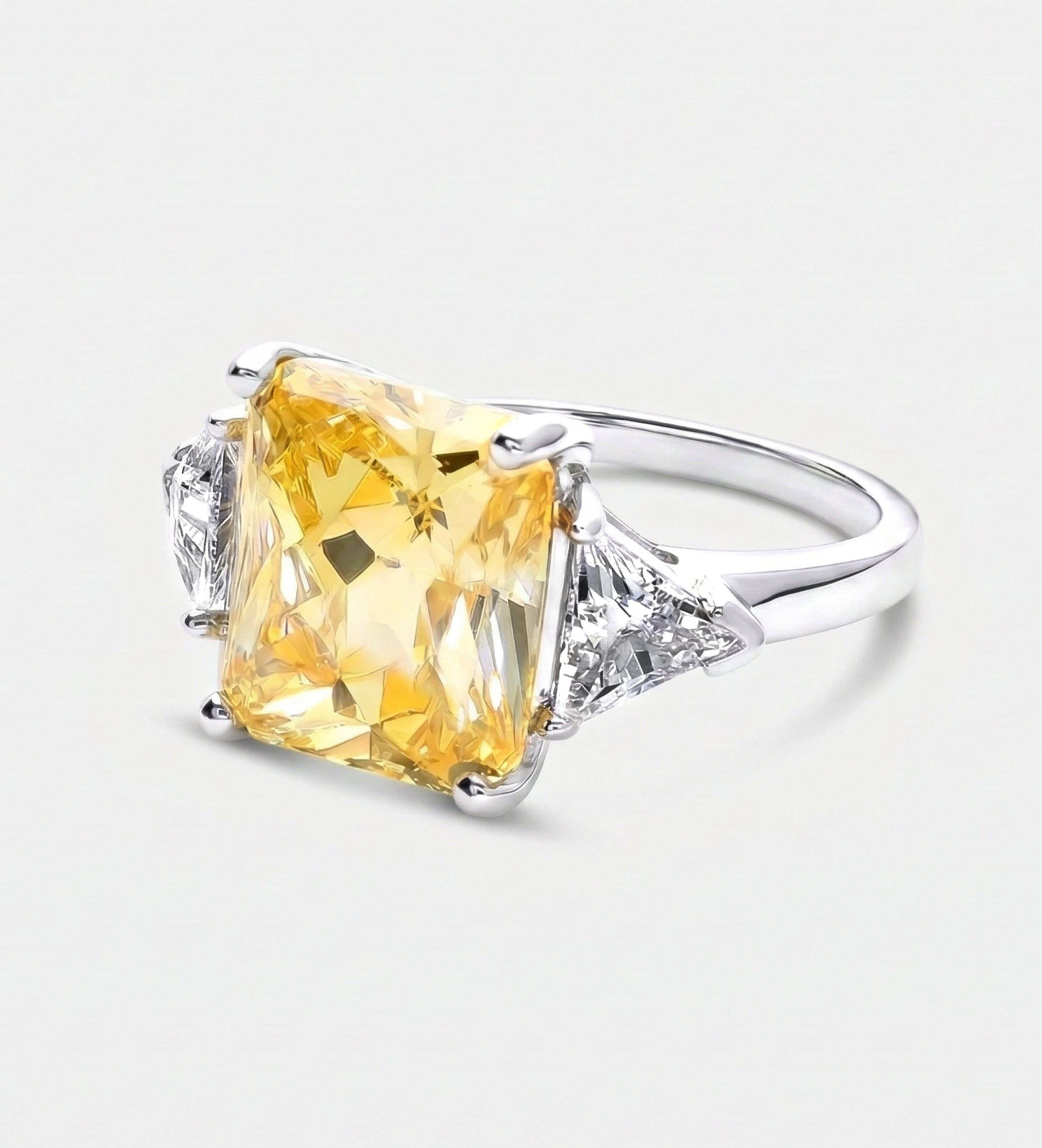 Golden Hour Cushion Ring in 925 Silver with High-Quality White and Canary Simulated Diamonds