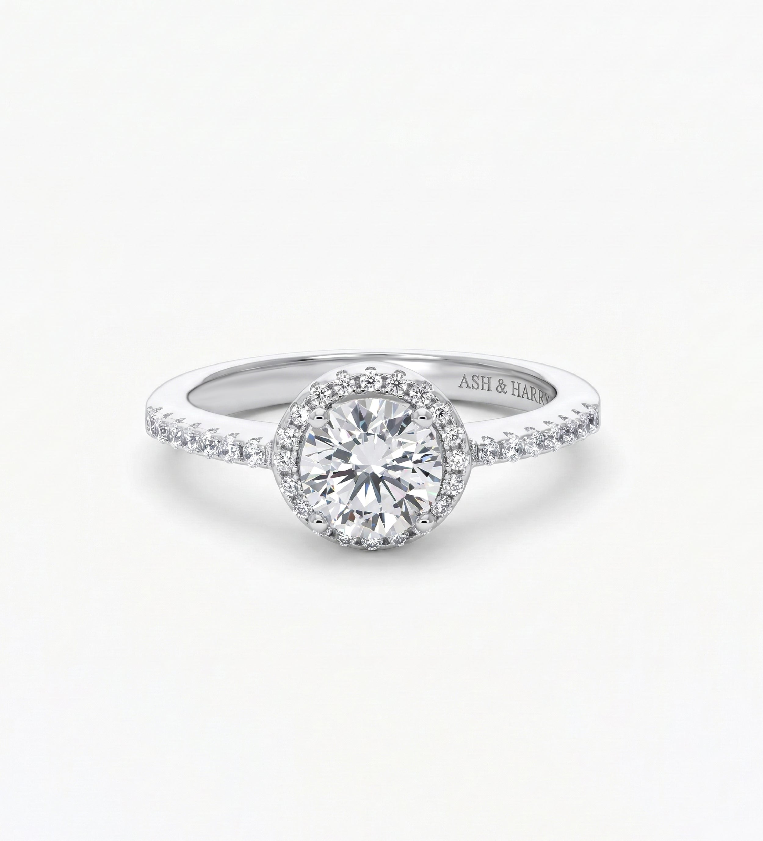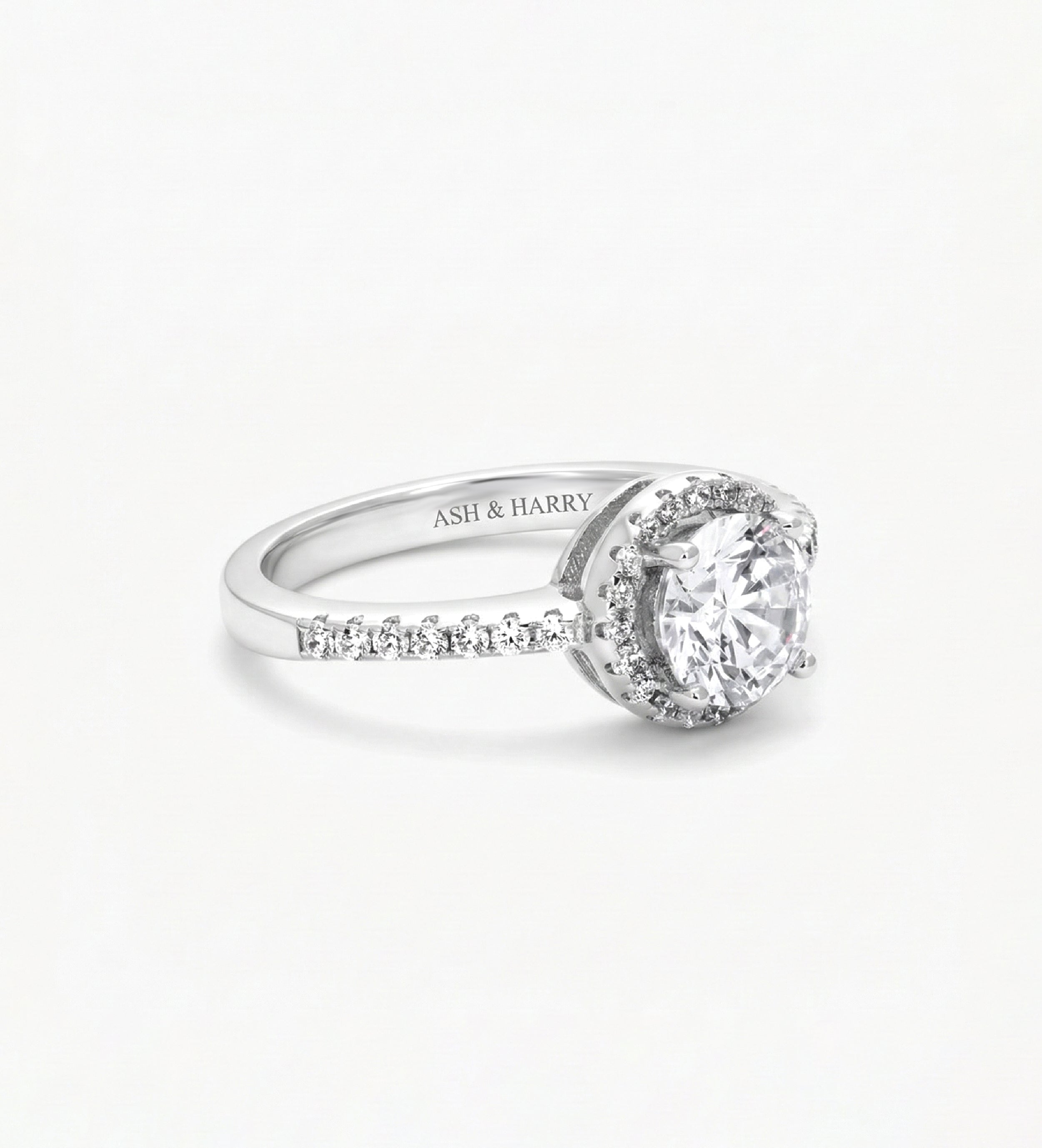 INSCRIPTION GUIDE - Halo Solitaire Ring in 925 Silver with High-Quality White Simulated Diamonds
