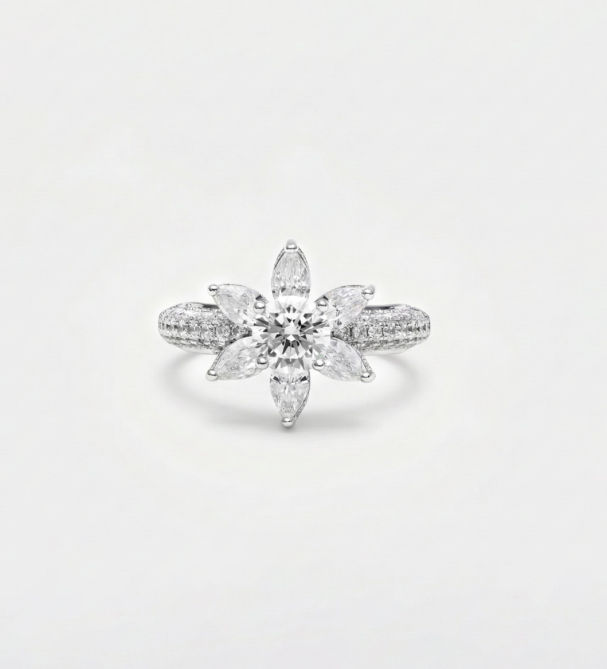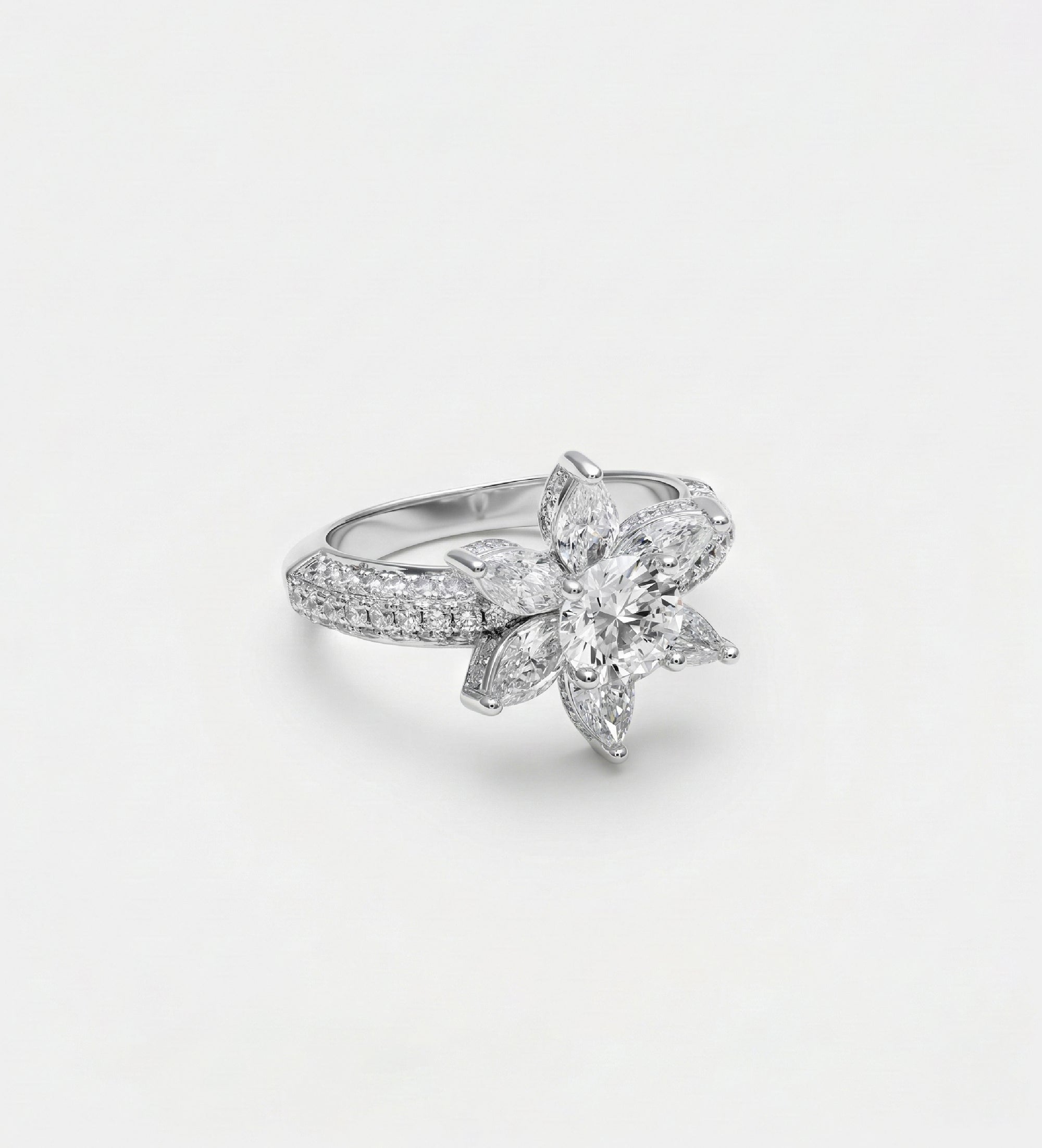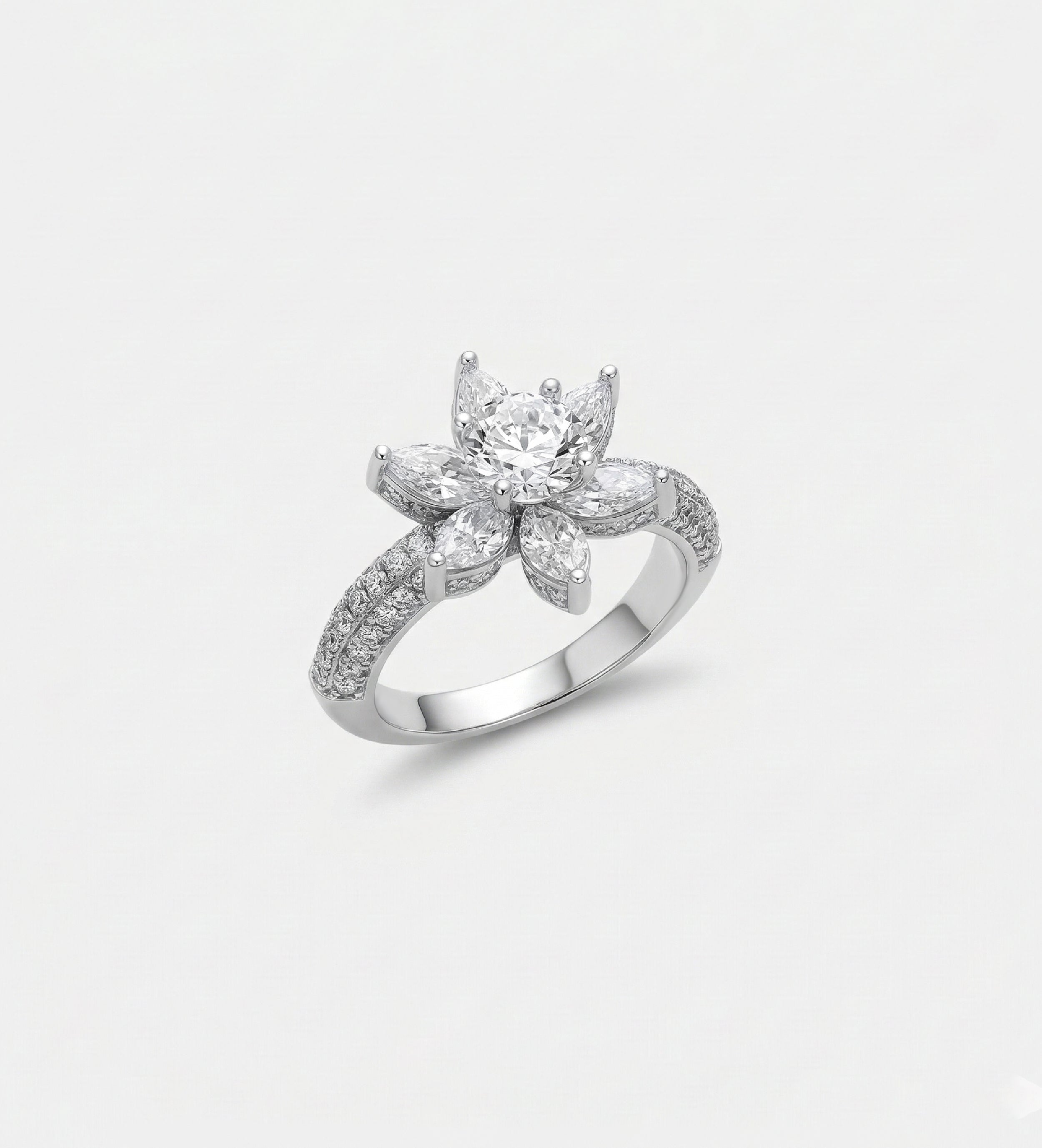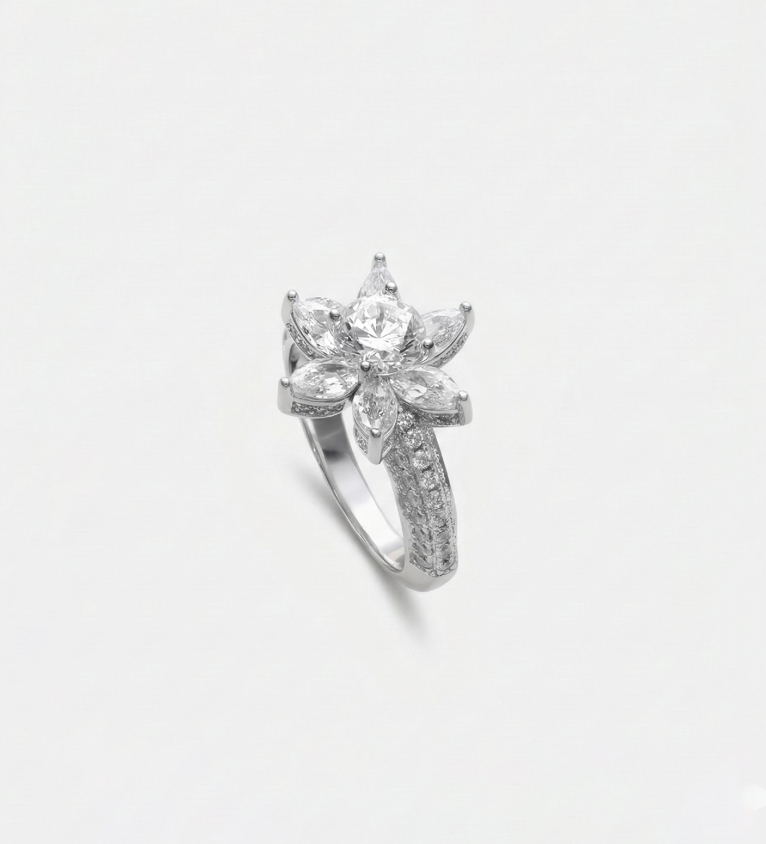 Lotus Cluster Ring in High Quality Certified Lab Crafted Stones In 925 Silver