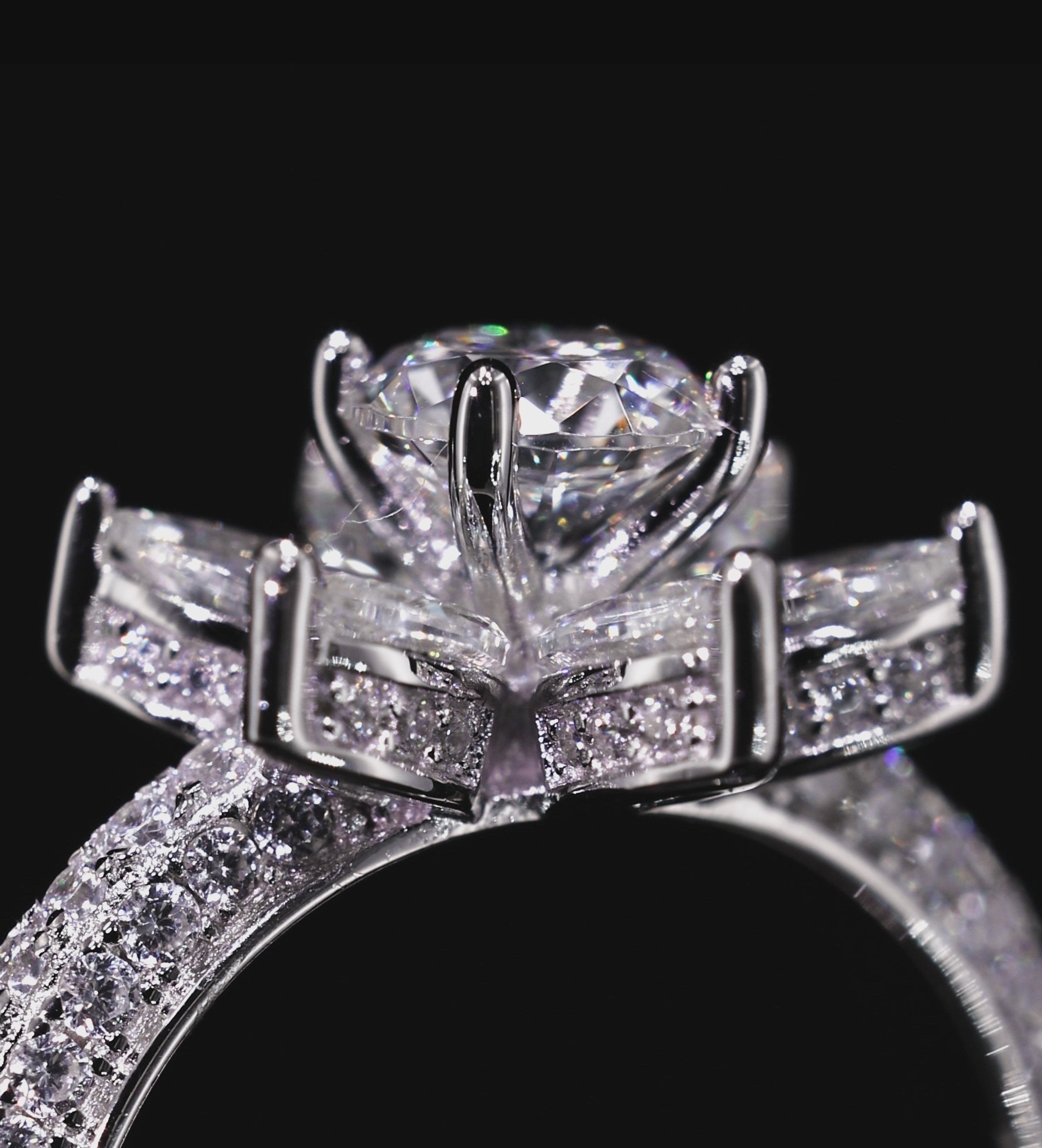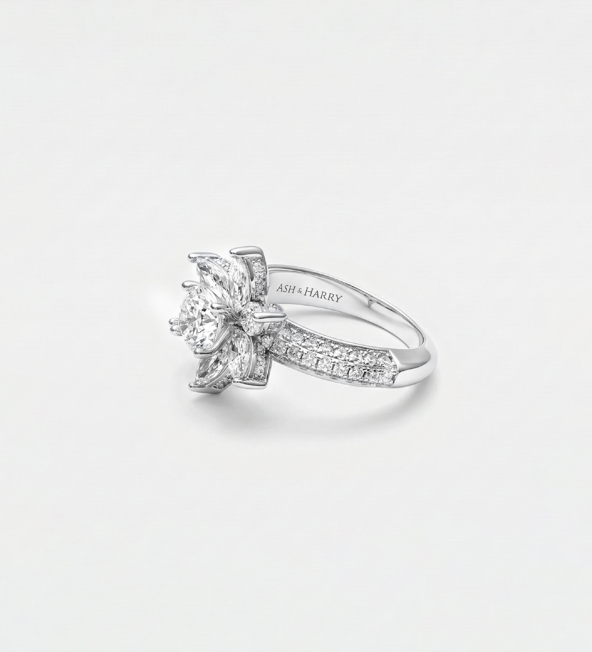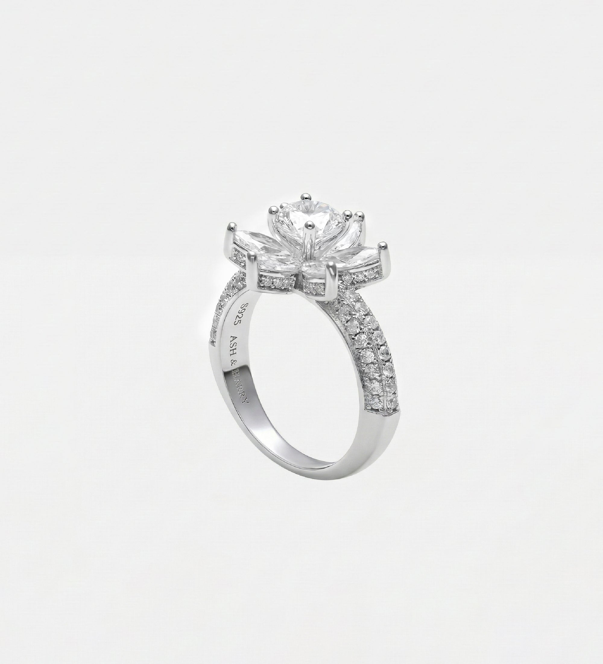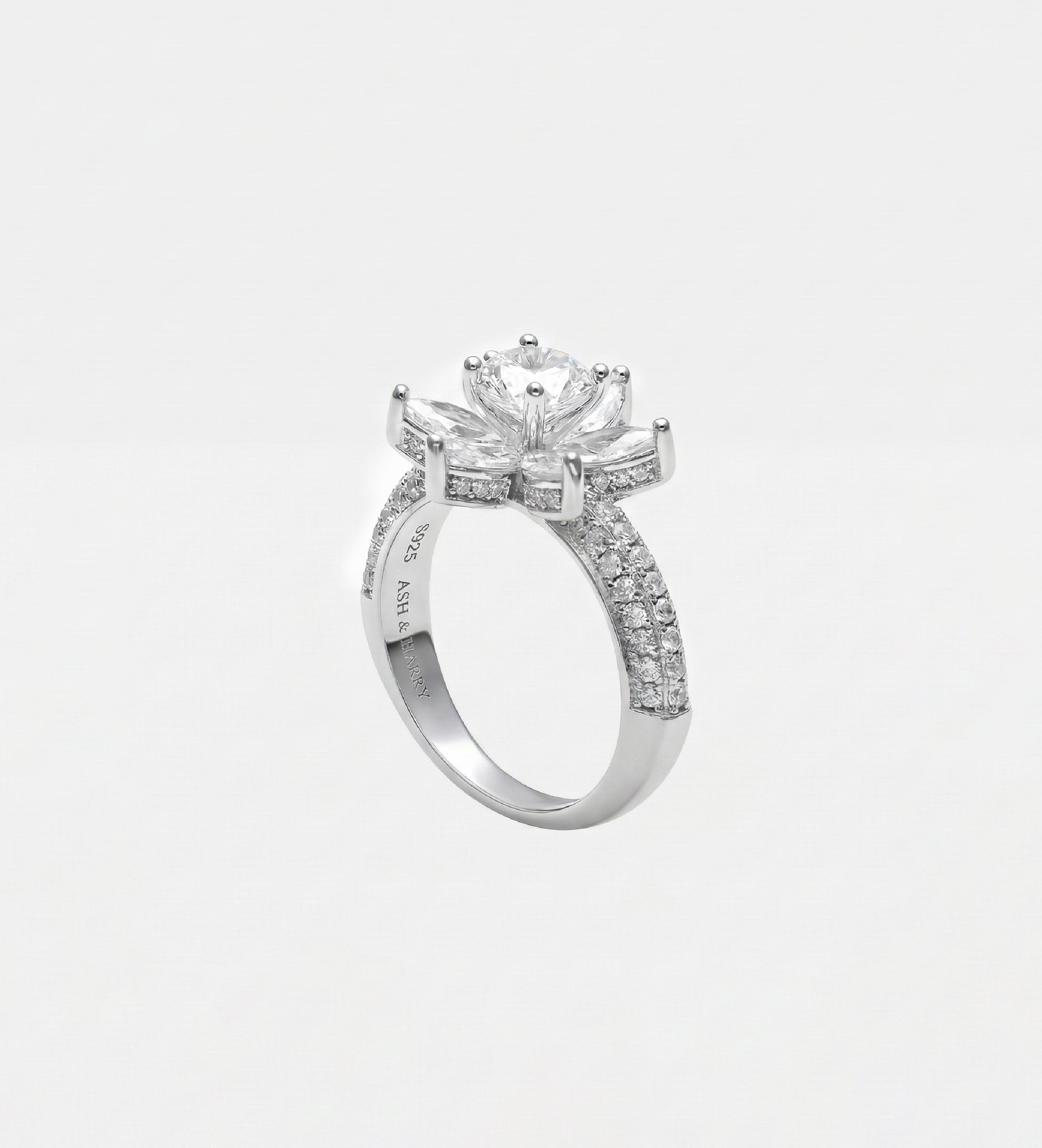 INSCRIPTION GUIDE - Lotus Cluster Ring in High Quality Certified Lab Crafted Stones In 925 Silver