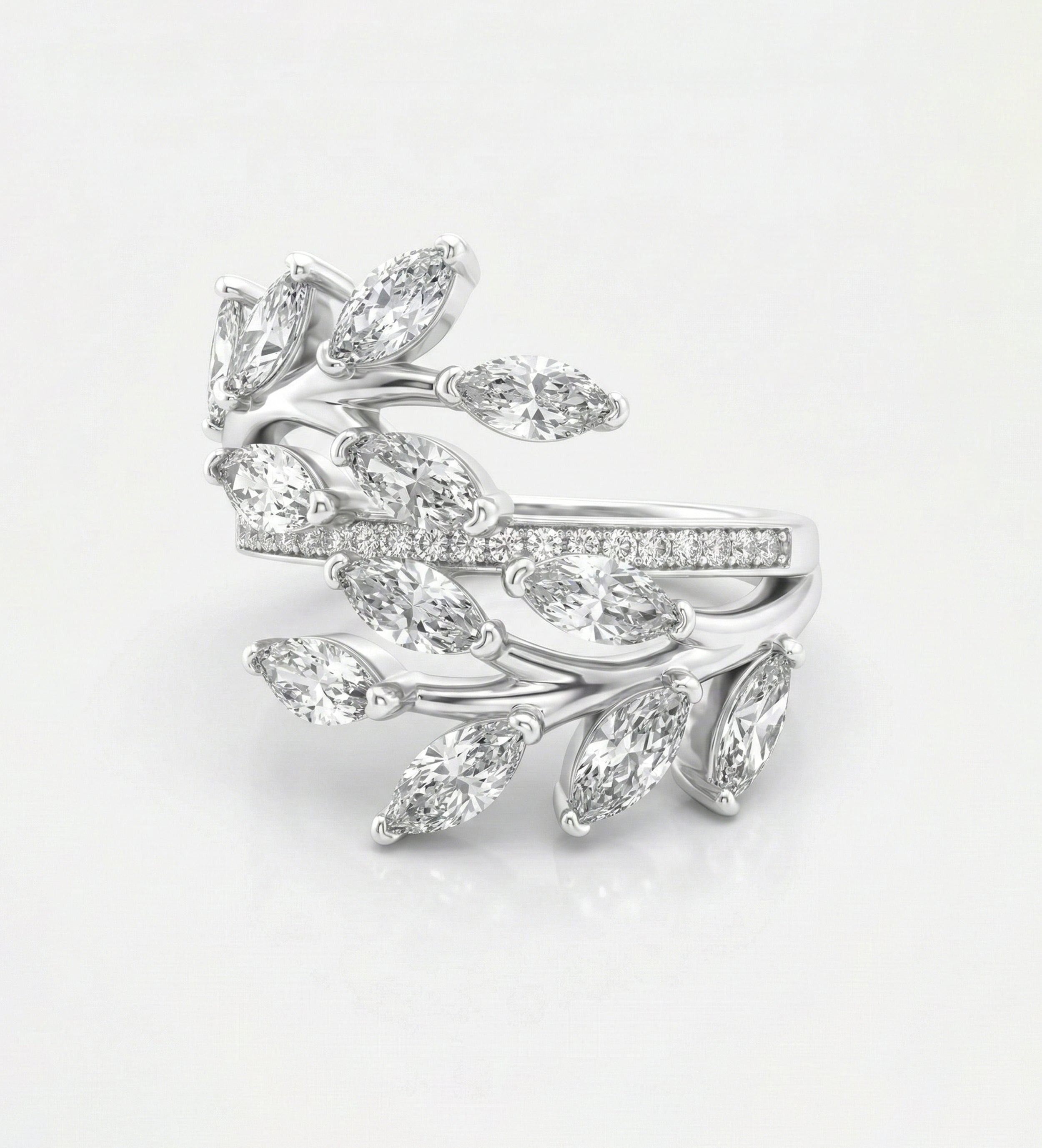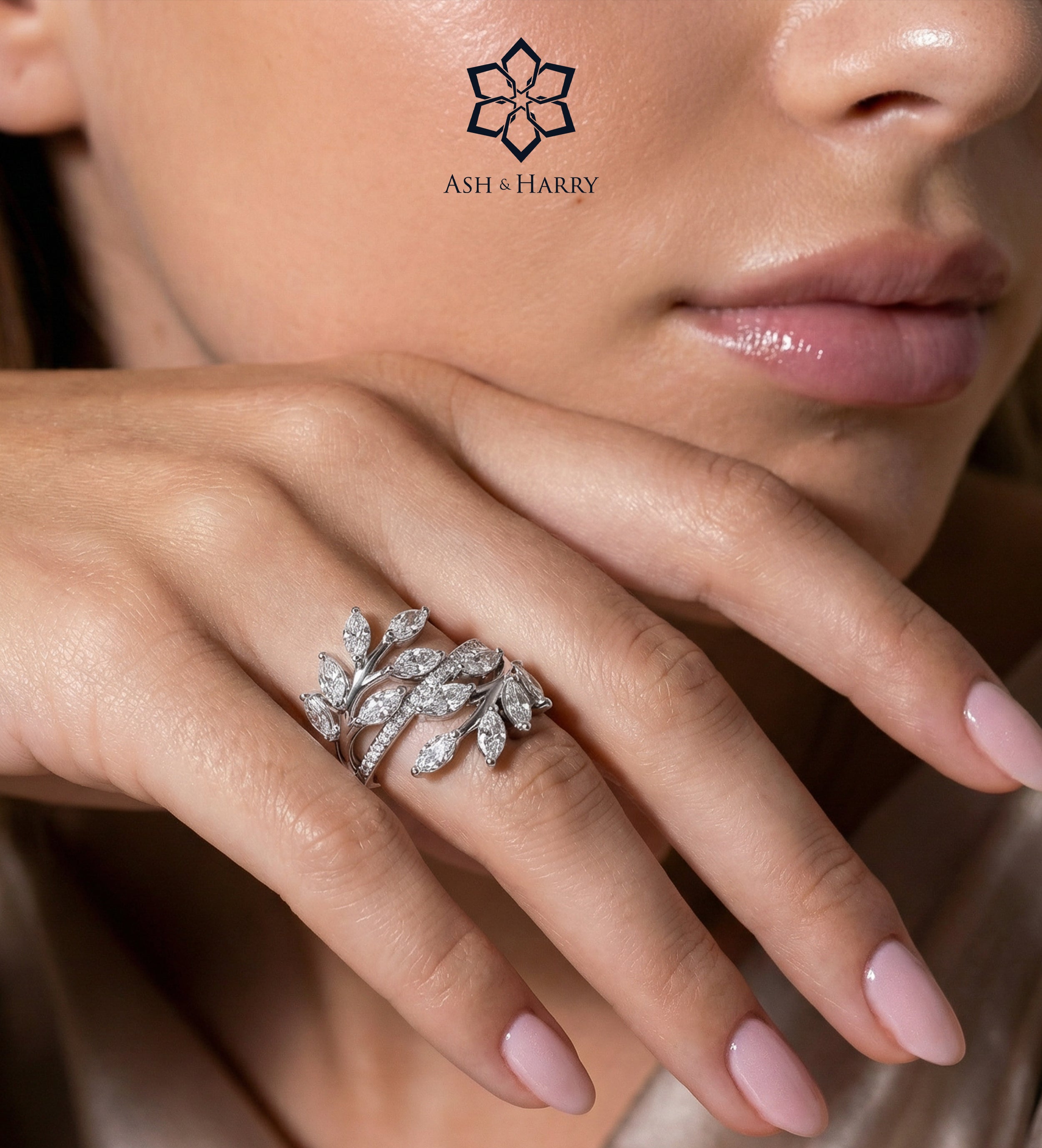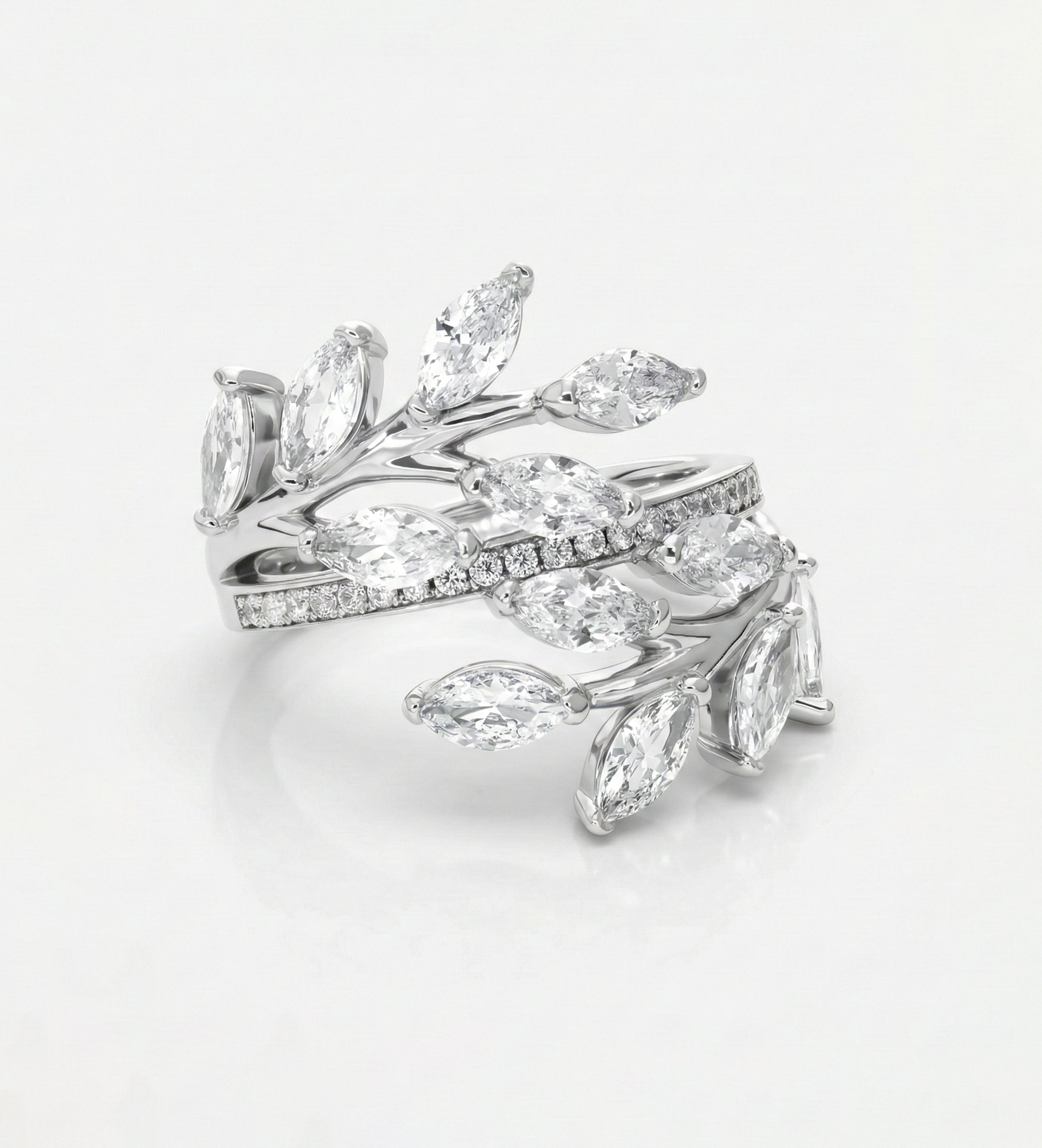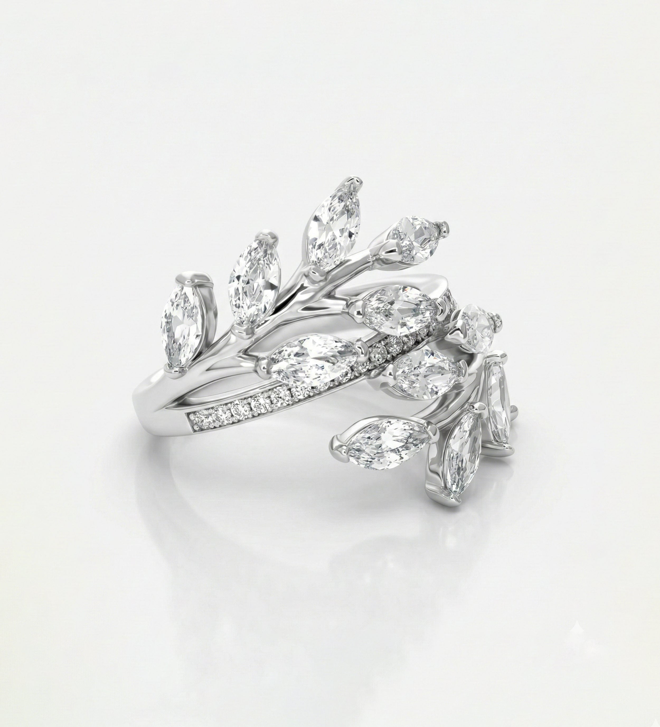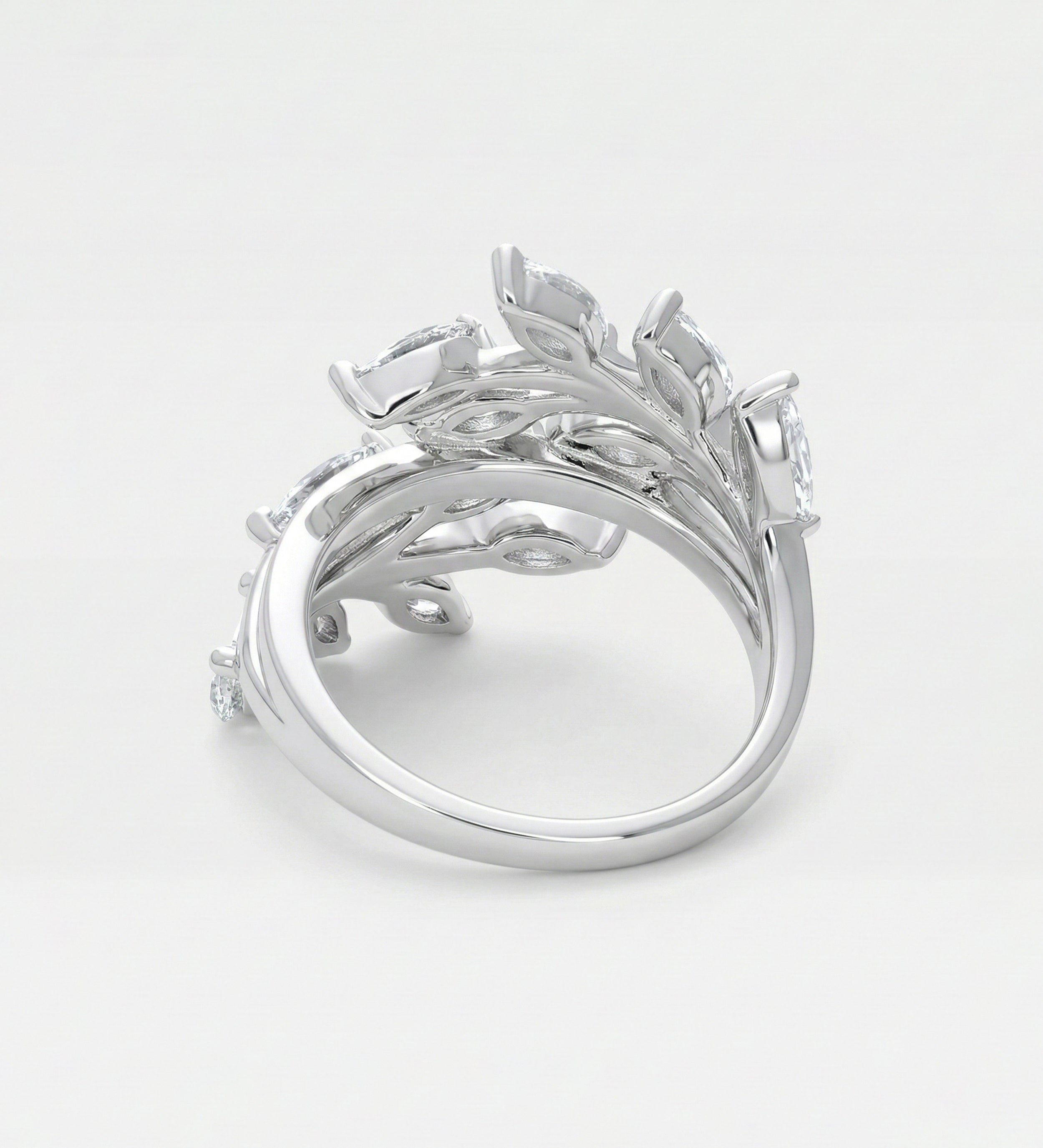 Marquise Laurel Wrap Ring in 925 Silver with High-Quality White Simulated Diamonds