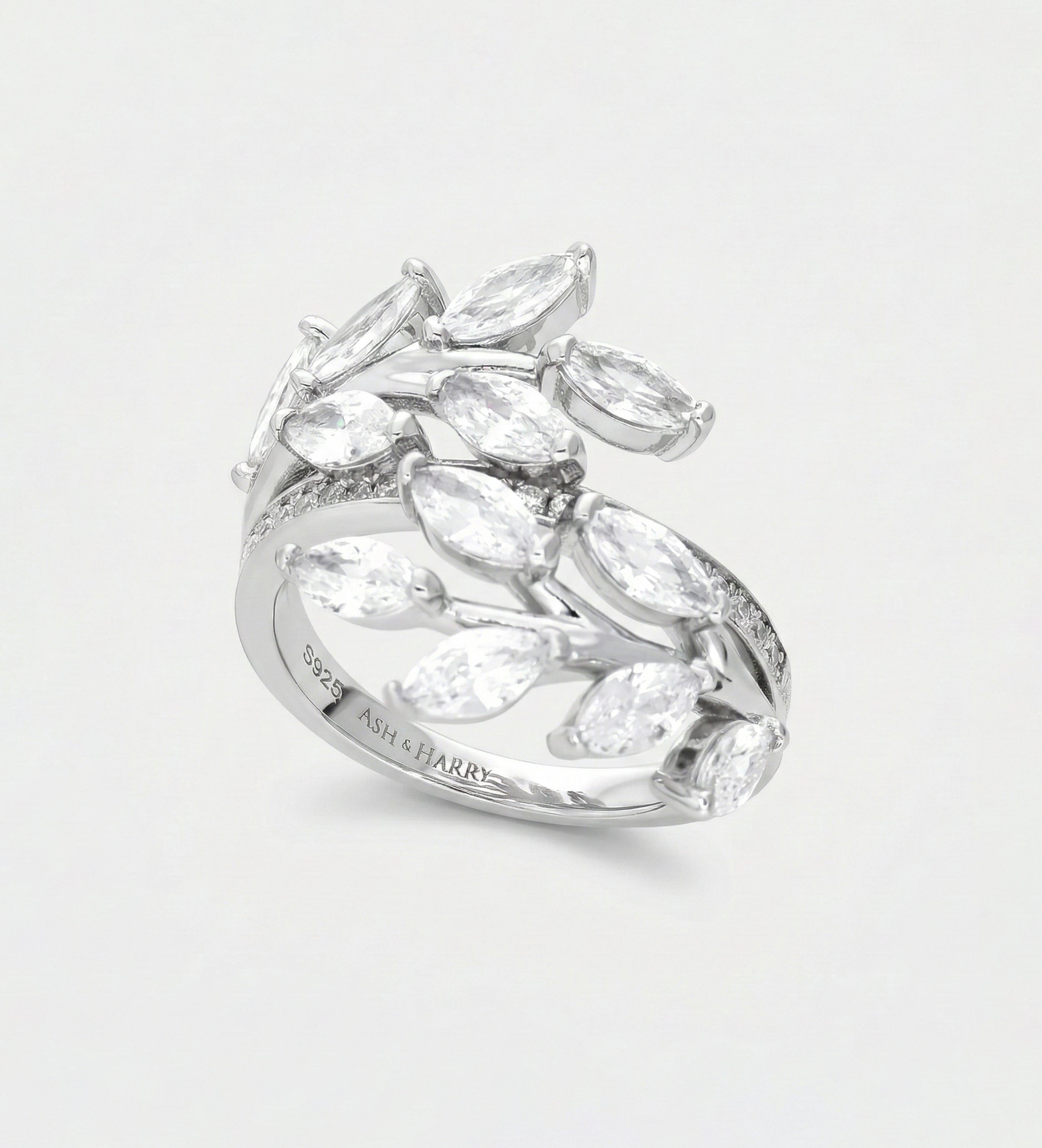 INSCRIPTION GUIDE - Marquise Laurel Wrap Ring in 925 Silver with High-Quality White Simulated Diamonds