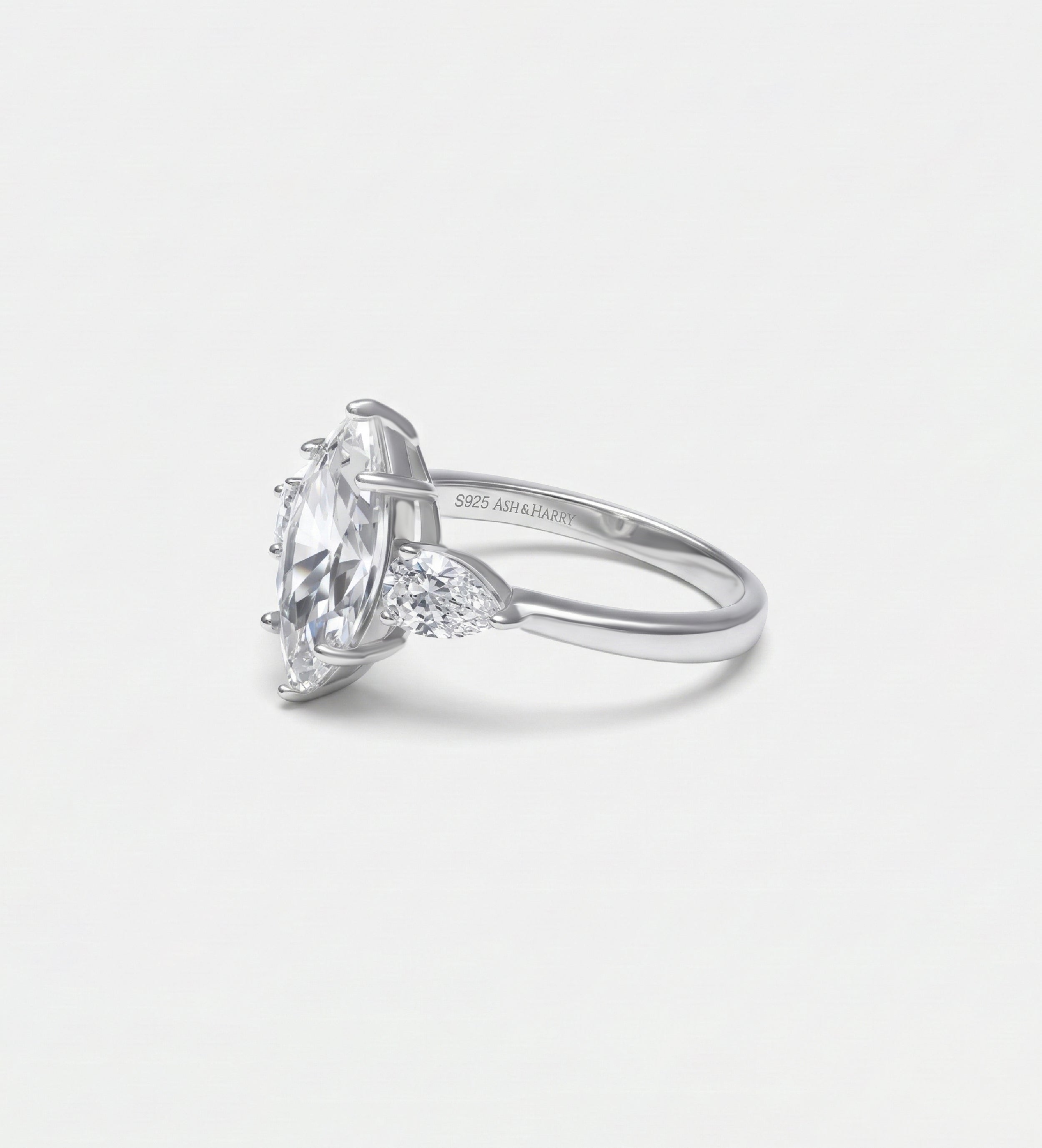 Marquise Trilogy Ring in 925 Silver with High-Quality White Simulated Diamonds