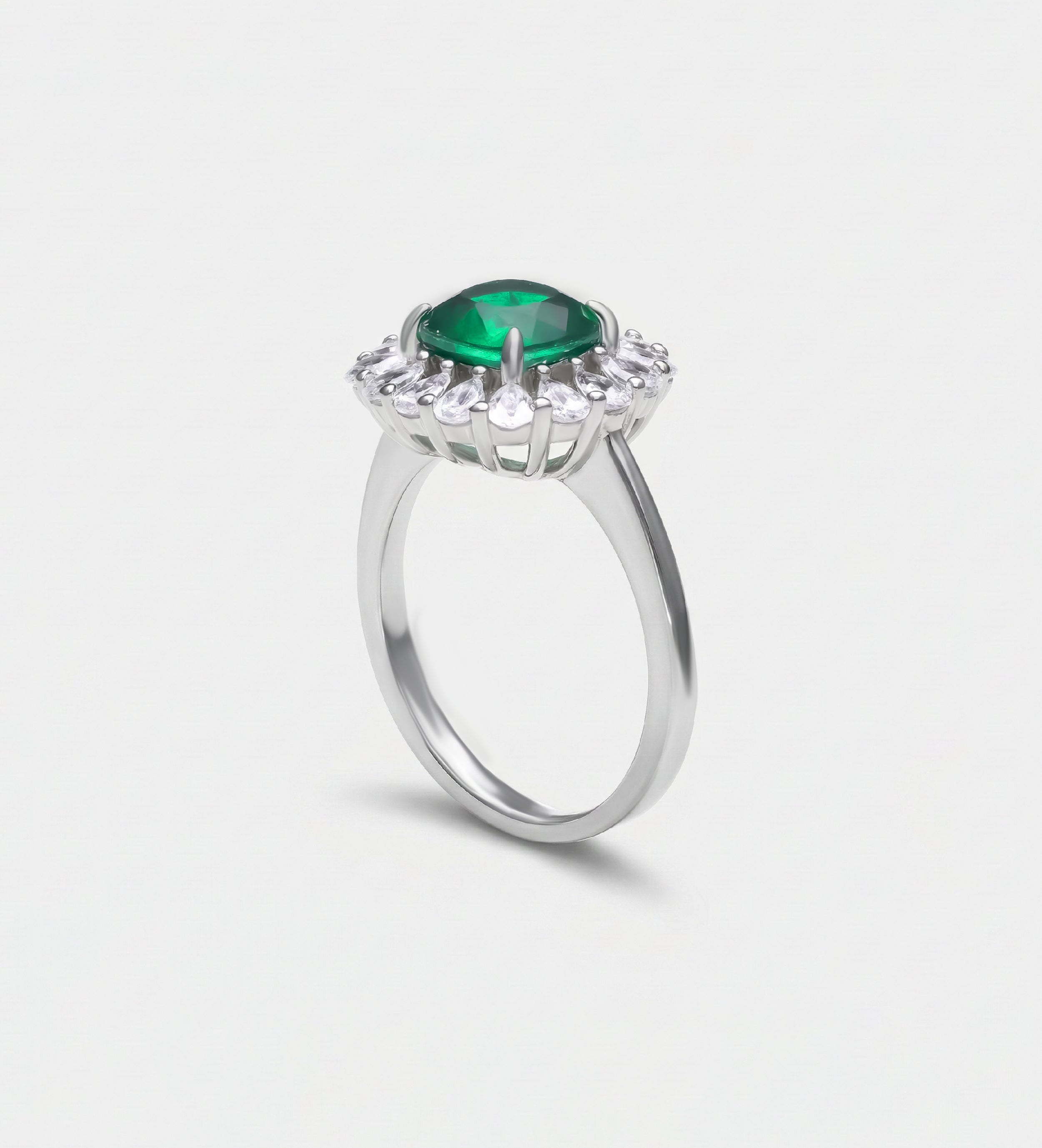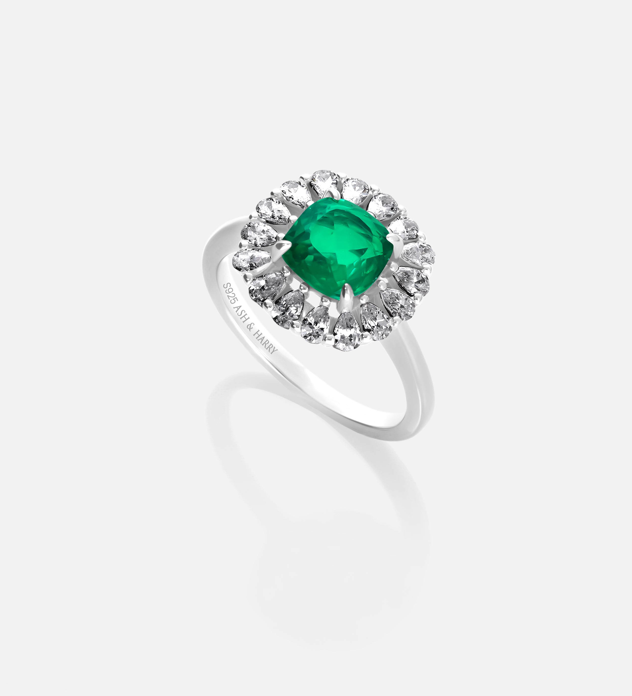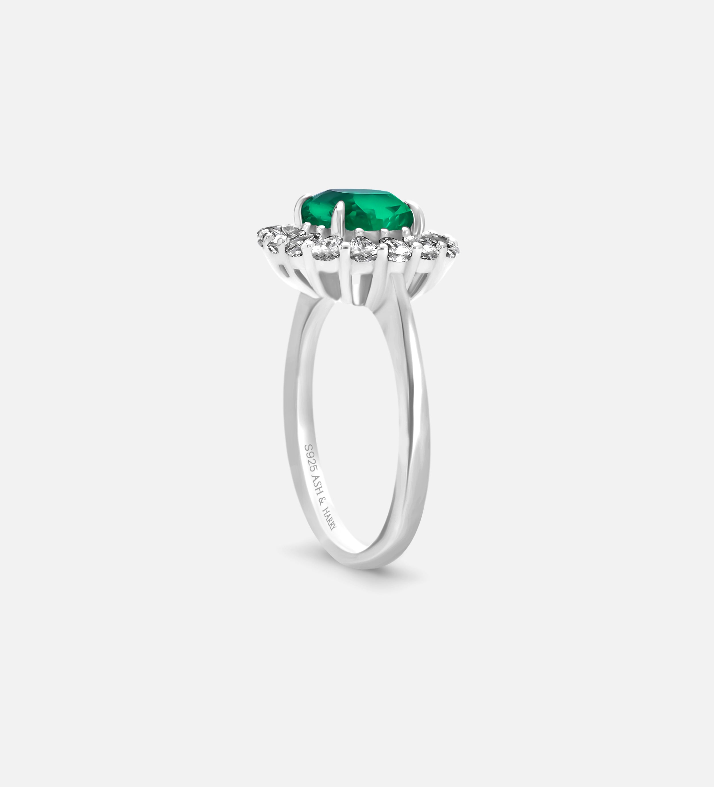Timeless Emerald Garland Ring in 925 Silver High Quality Simulated Diamonds and Crafted Emerald Stone