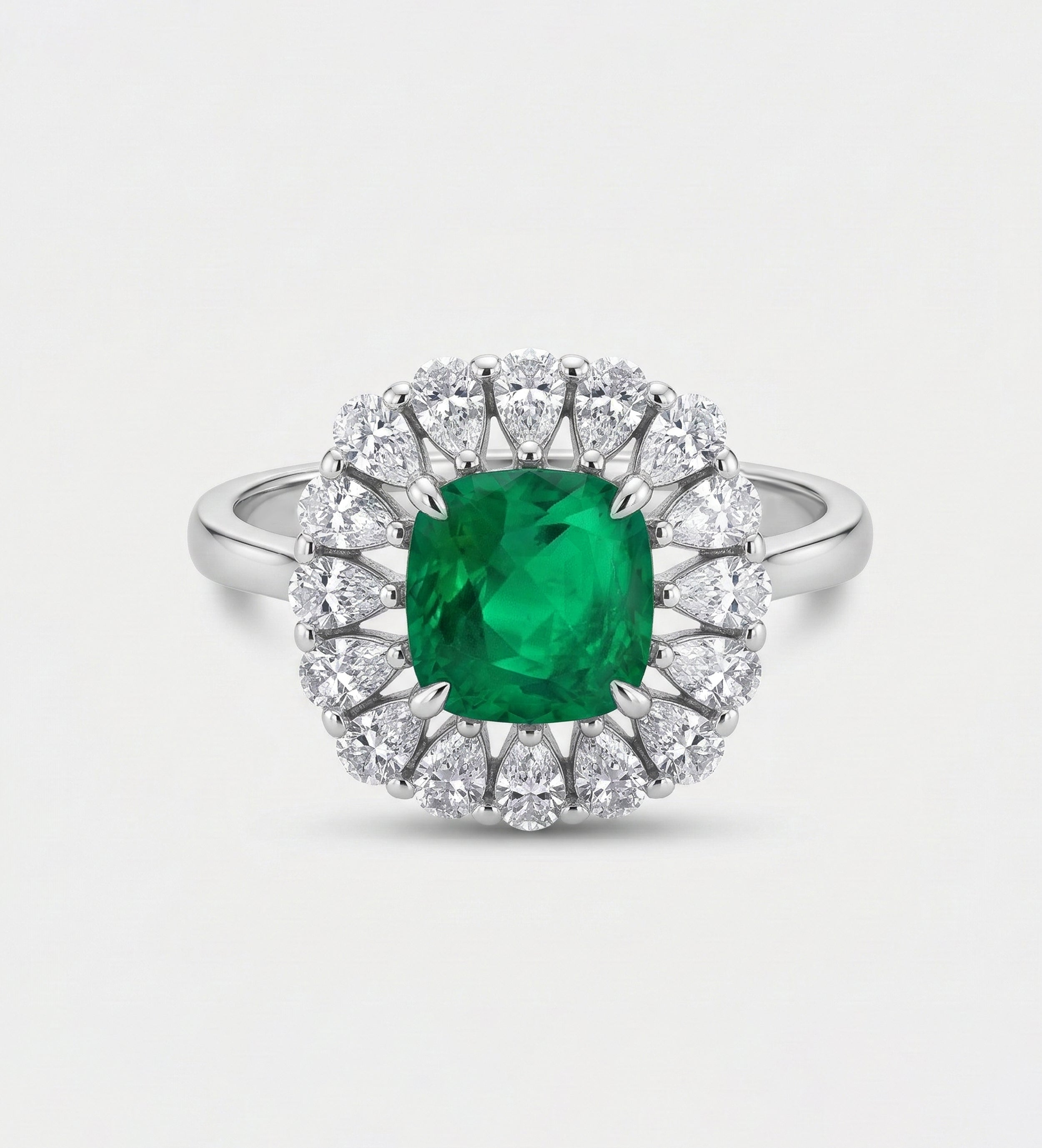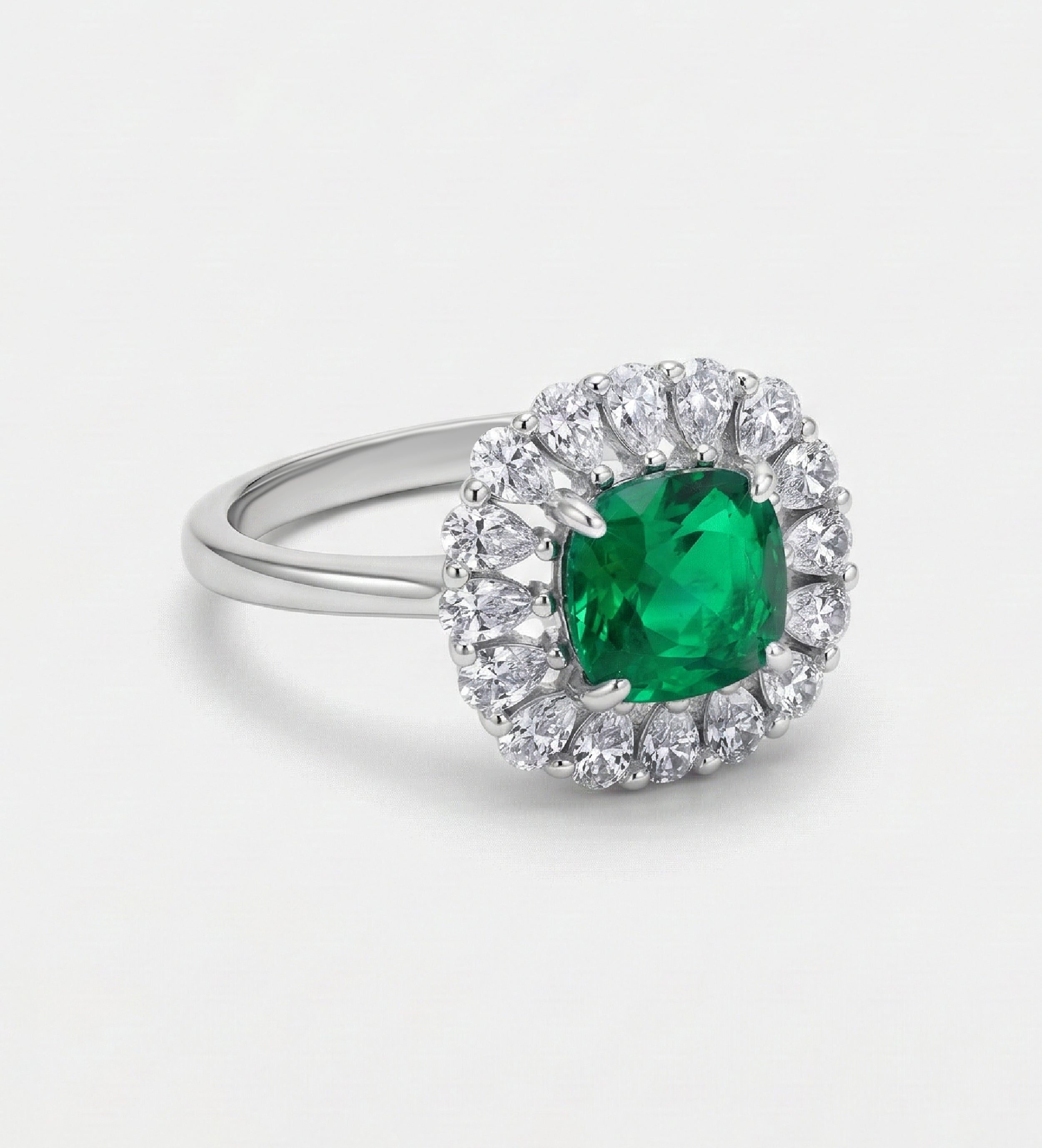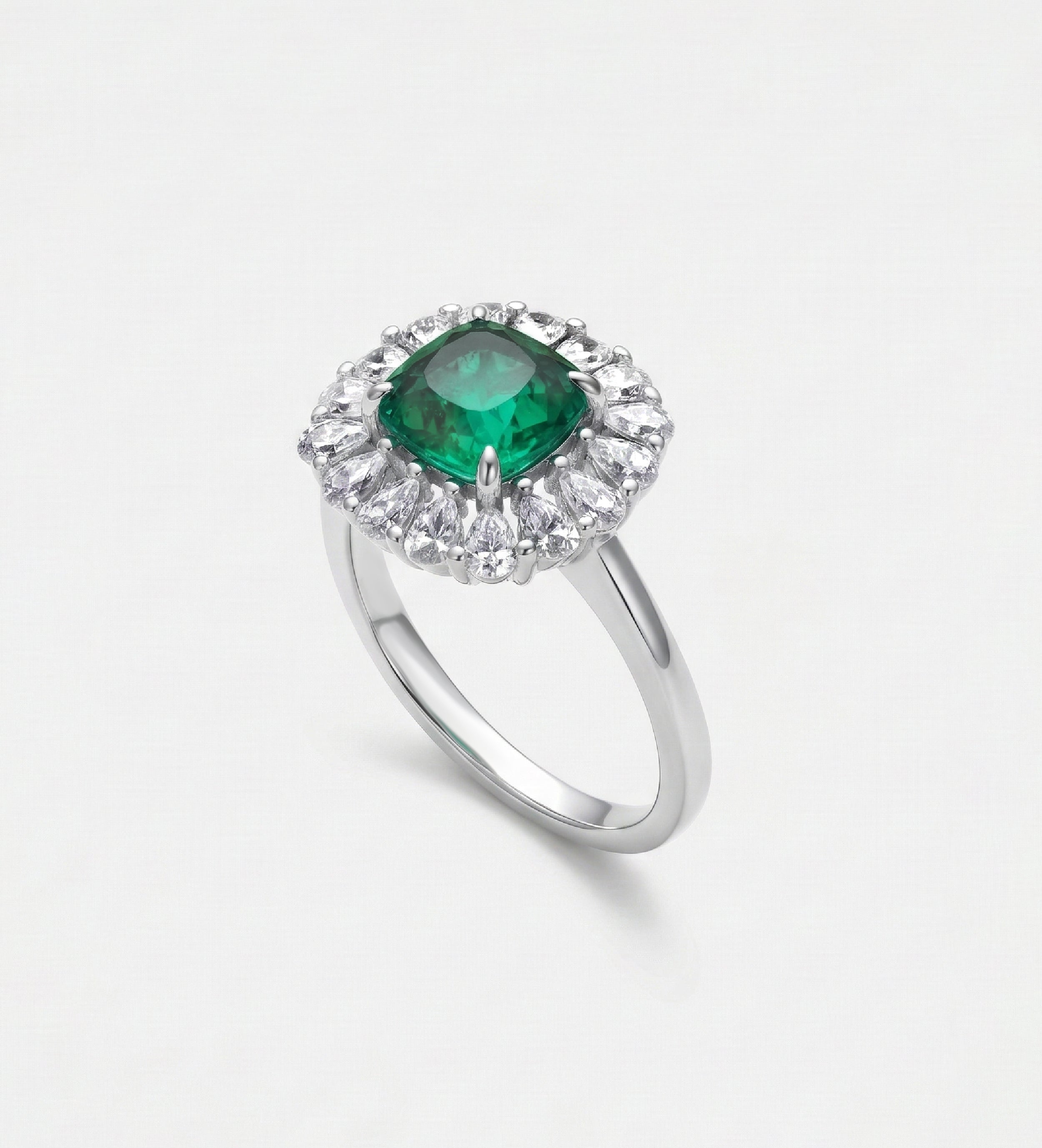 Timeless Emerald Garland Ring in 925 Silver High Quality Simulated Diamonds and Crafted Emerald Stone