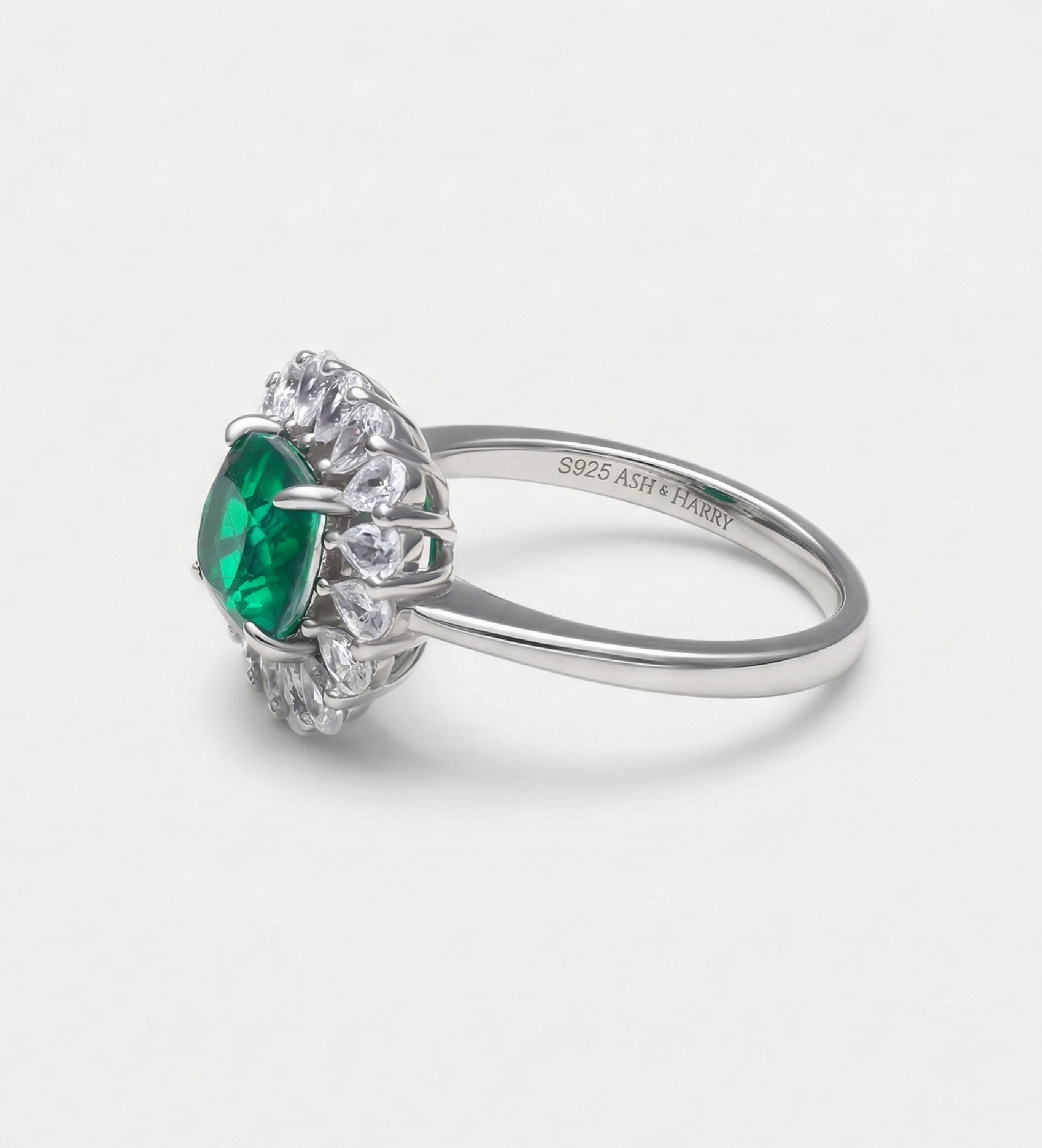 INSCRIPTION GUIDE - Timeless Emerald Garland Ring in 925 Silver High Quality Simulated Diamonds and Crafted Emerald Stone