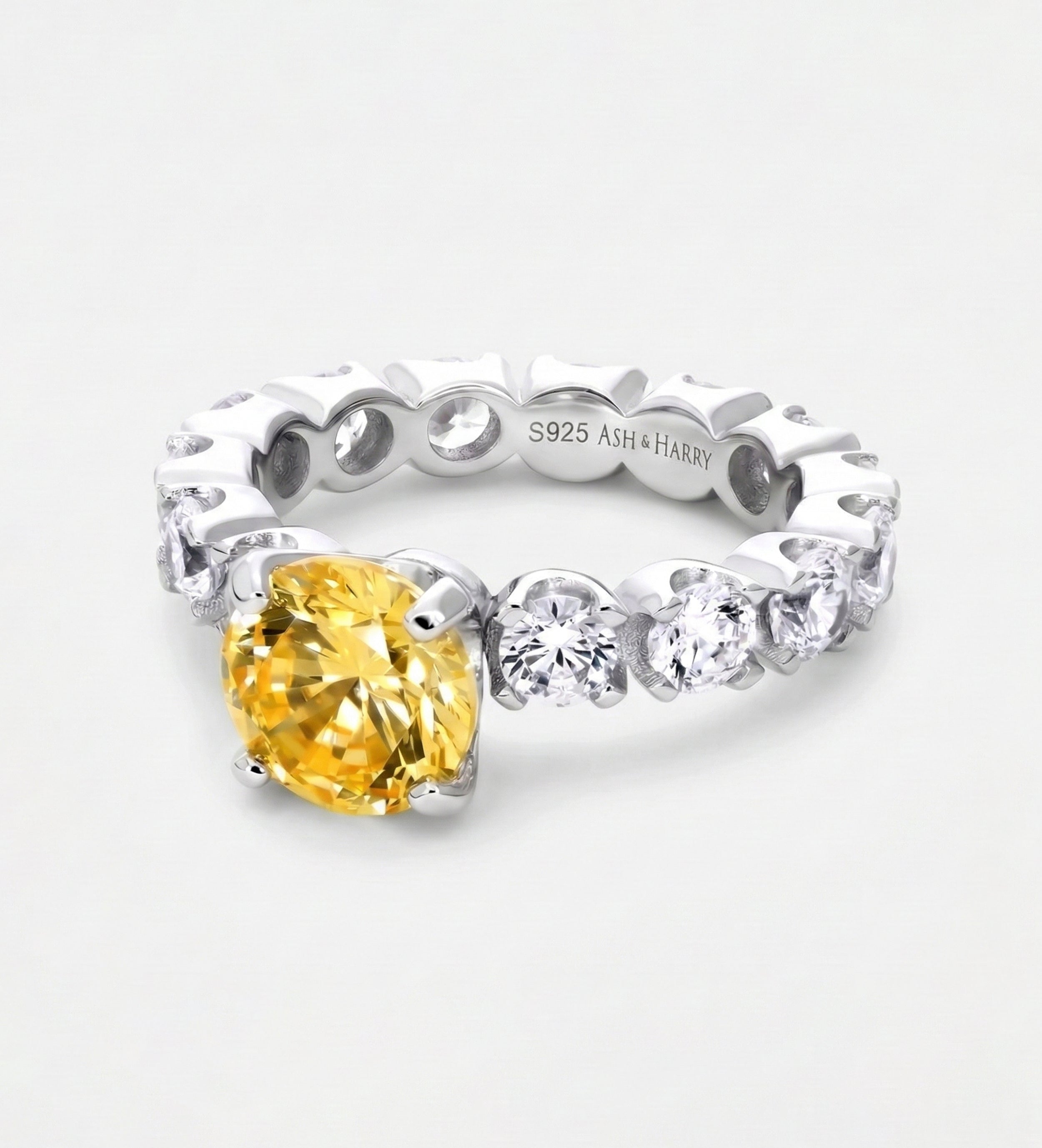Eternal Sunshine Solitaire Ring with High Quality Simulated White and Canary Diamonds in 925 Silver