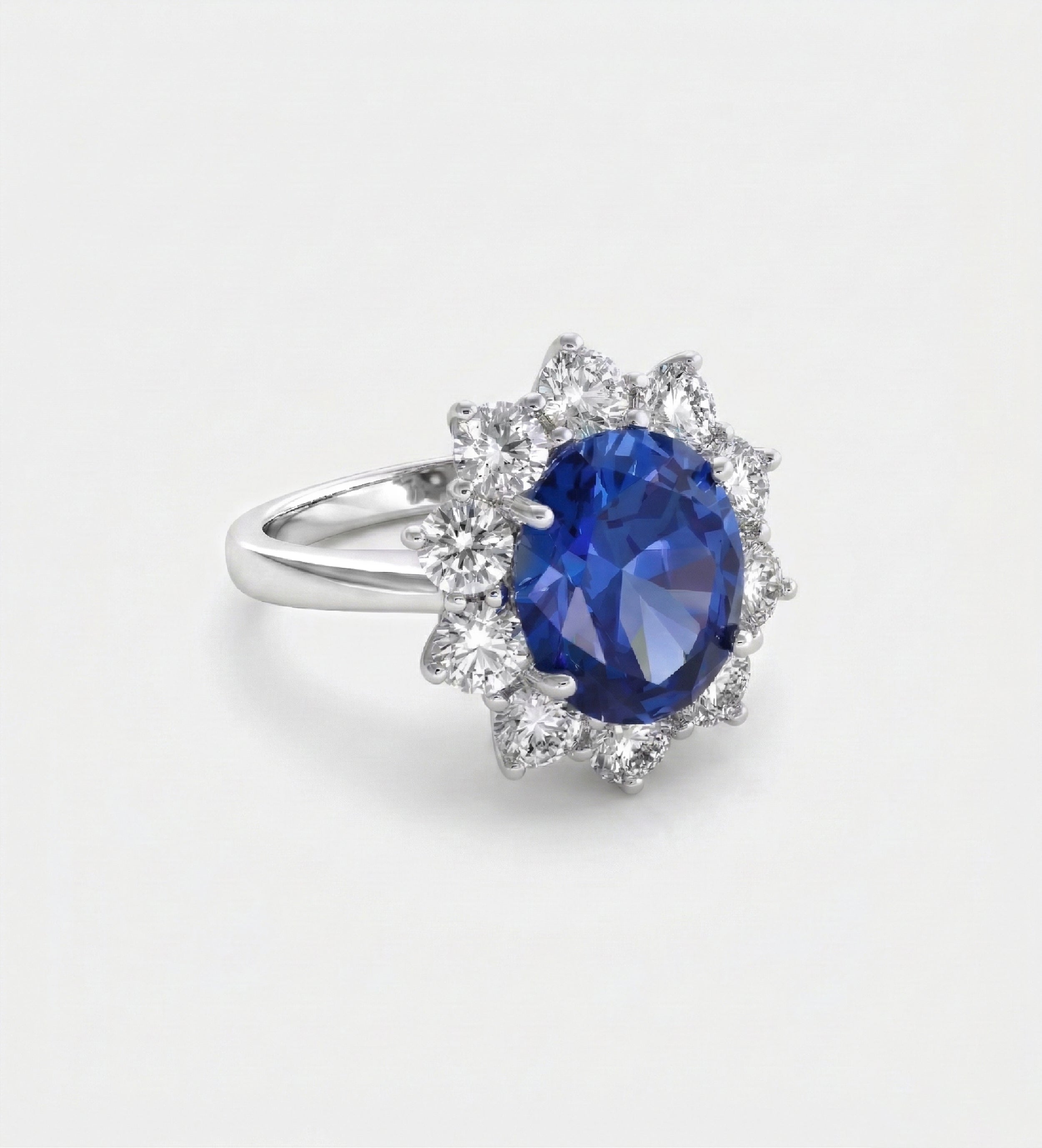Majestic Sapphire Ring in 925 Silver High Quality Simulated Diamonds and Sapphire Stone