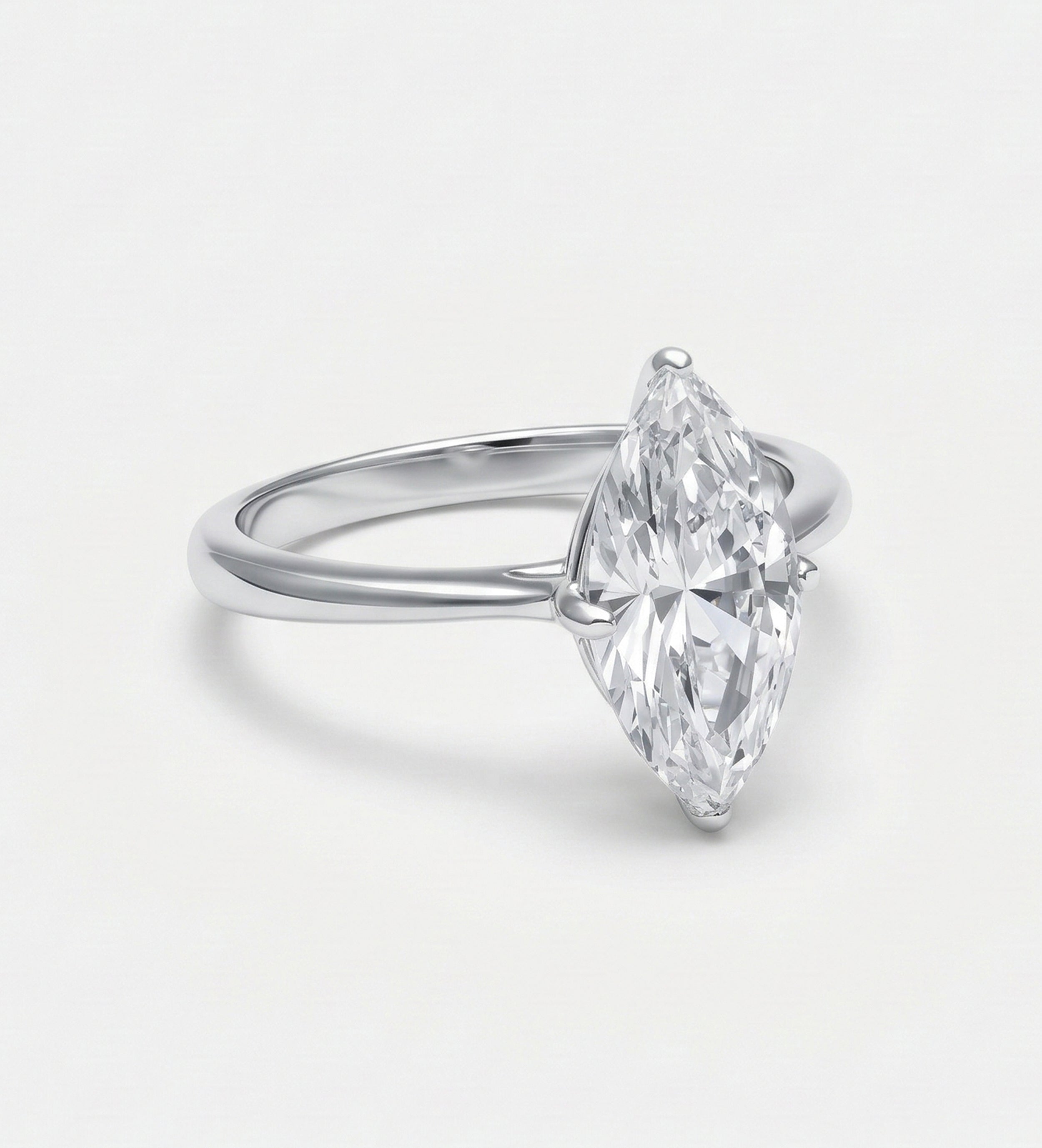 Marquise Solitaire Ring in 925 Silver with High-Quality White Simulated Diamond