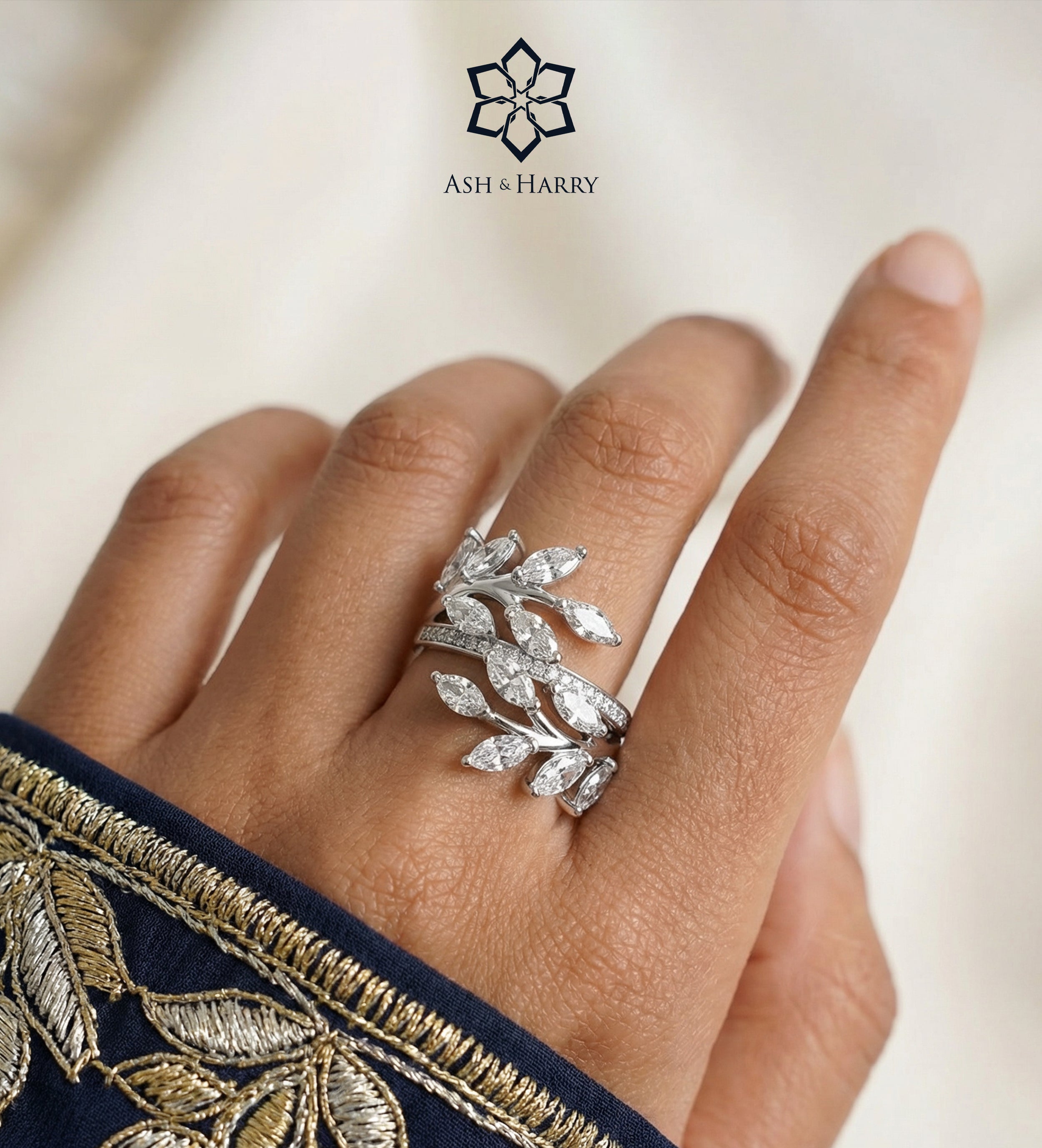 Marquise Laurel Wrap Ring in 925 Silver with High-Quality White Simulated Diamonds
