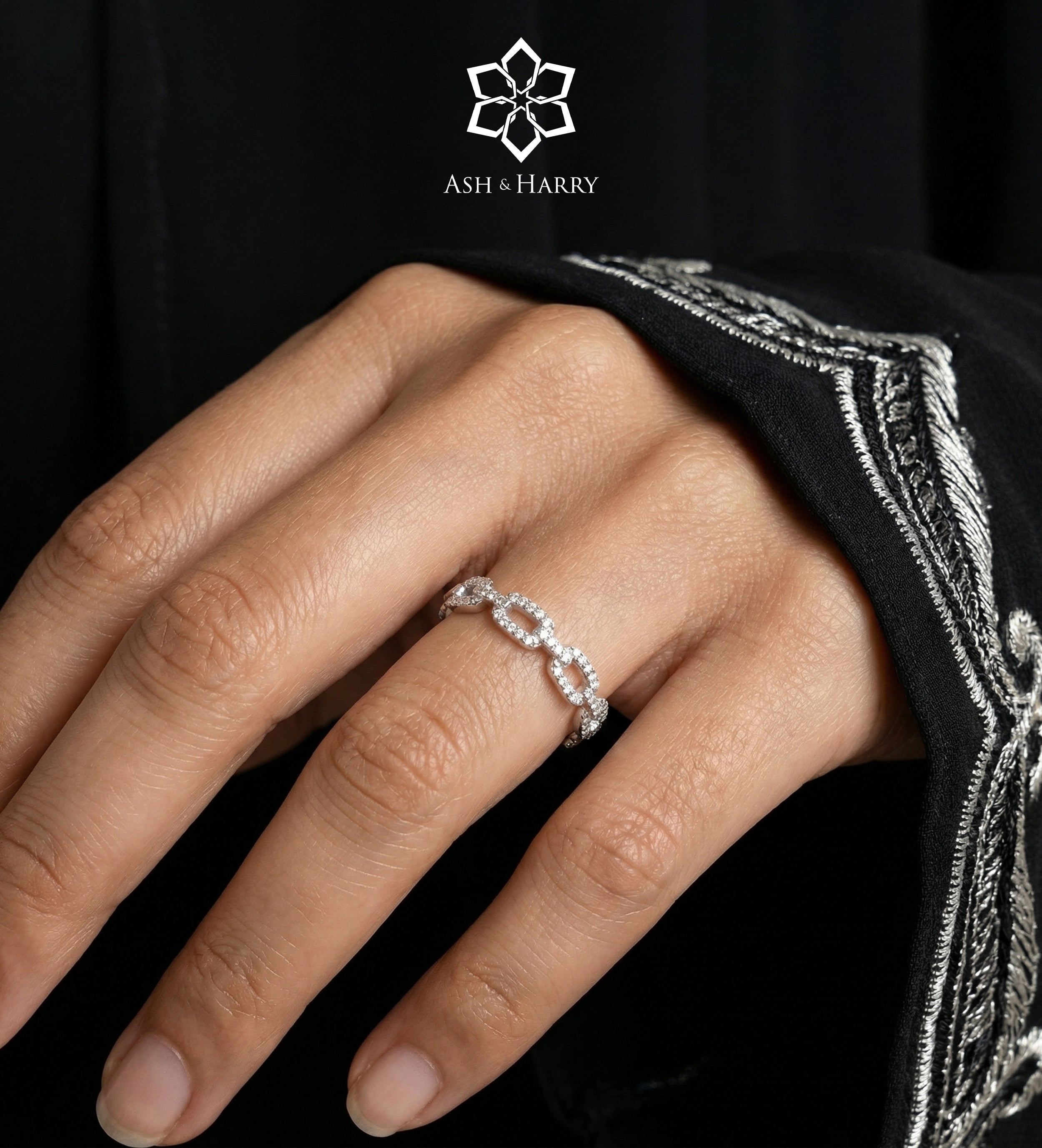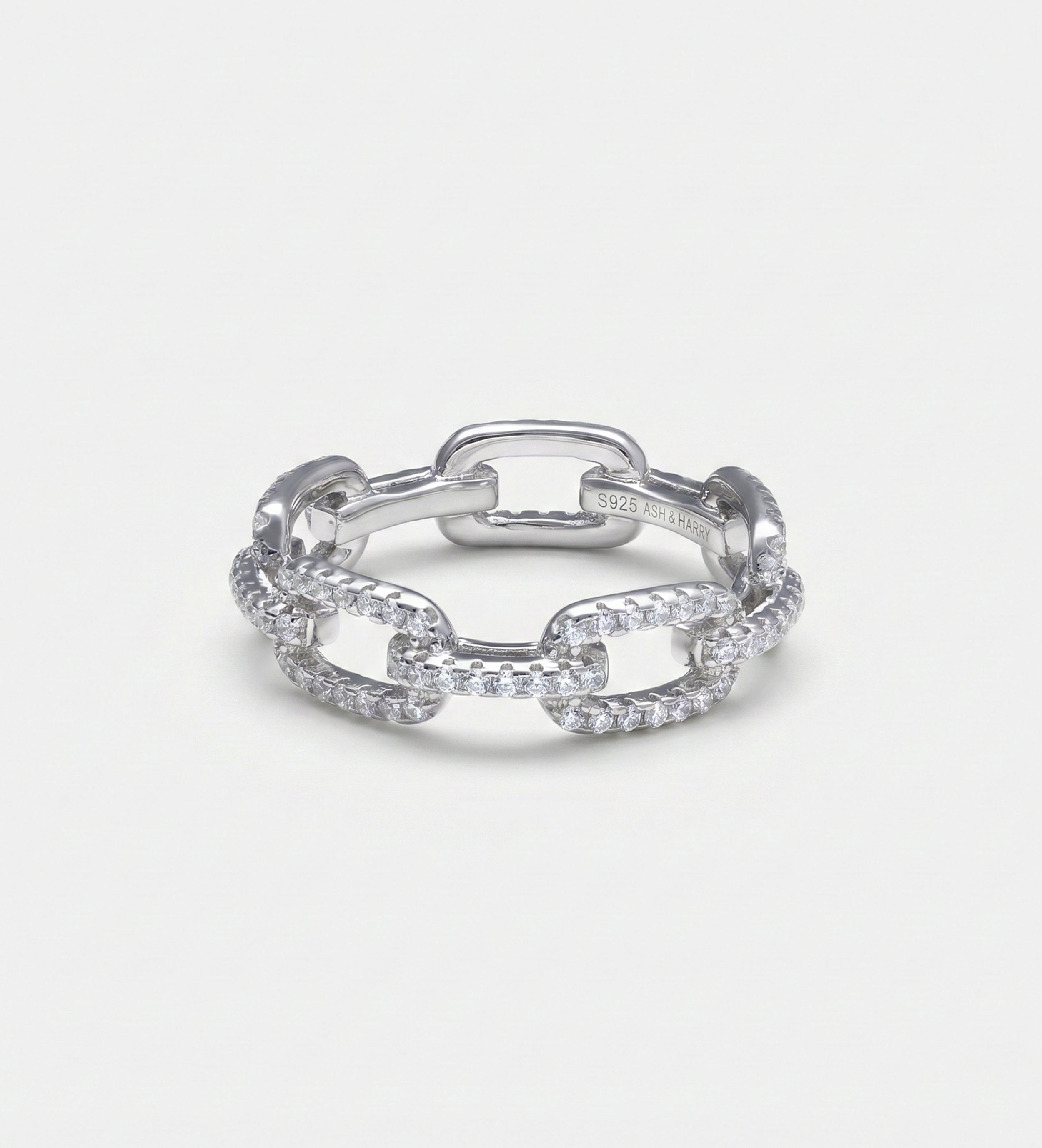 Pavé Link Ring in 925 Silver with High Quality Simulated Diamonds